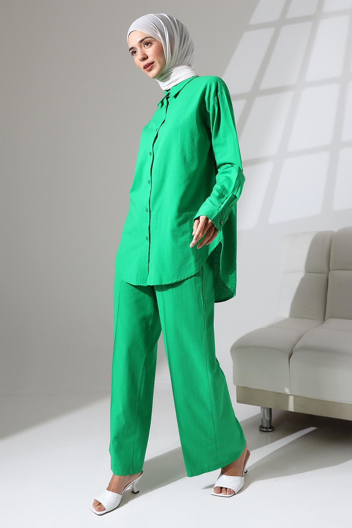 100% Pamuk Keten Günlük ve Rahat Gömlek Pantolon Yazlık Alt Üst Takım