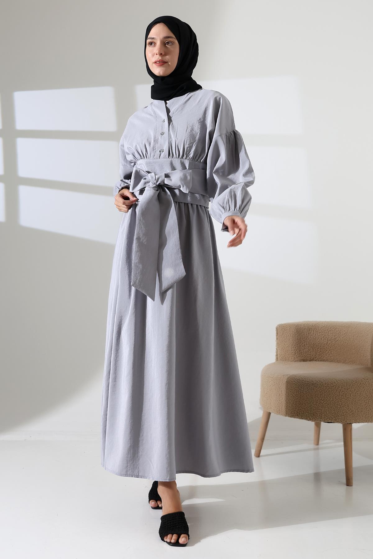 Kadın 100% Pamuk Modal Gri Gömlek Etek Tesettür Takım