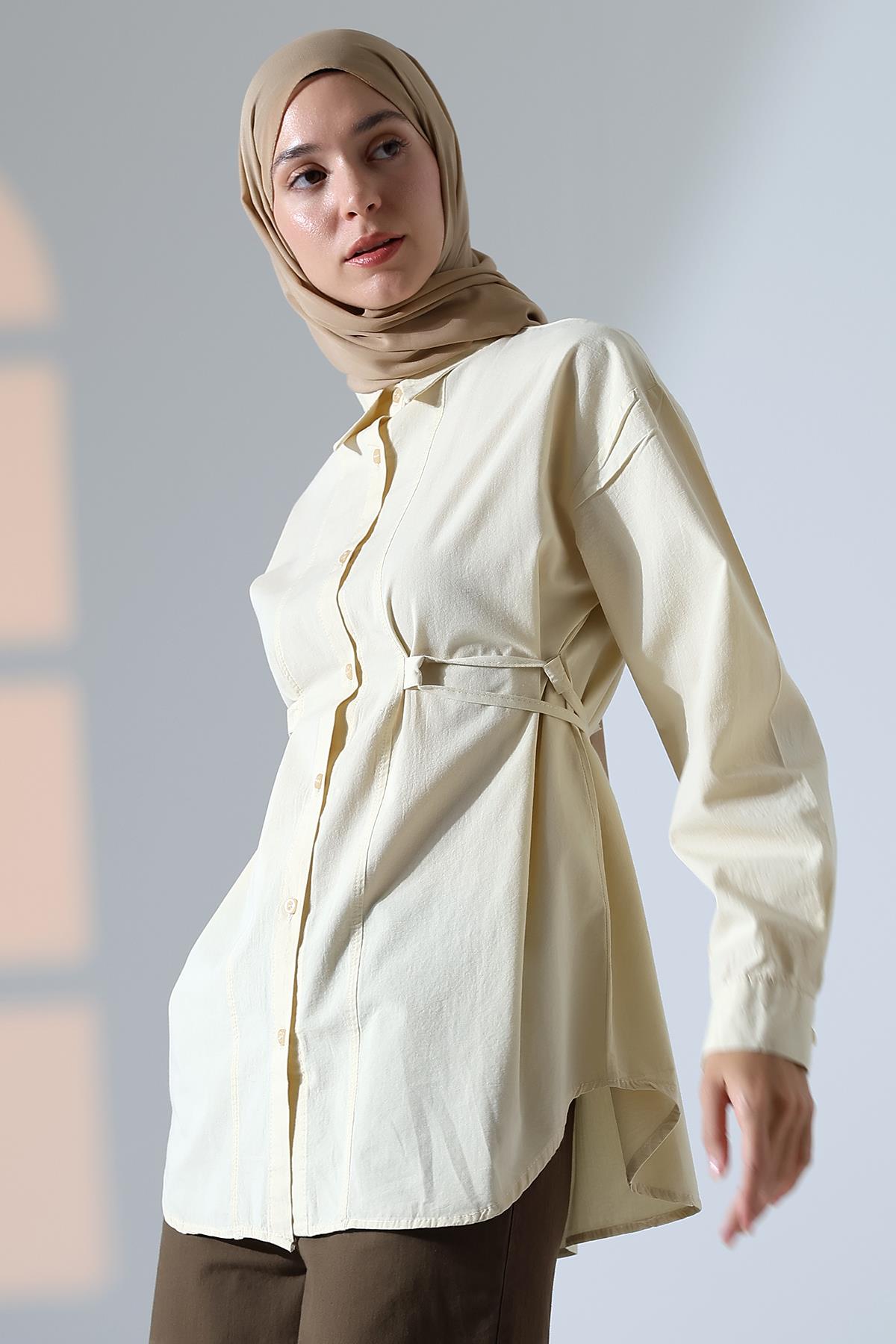 Kadın 100% Pamuk Poplin Kumaş Krem Tesettür Gömlek