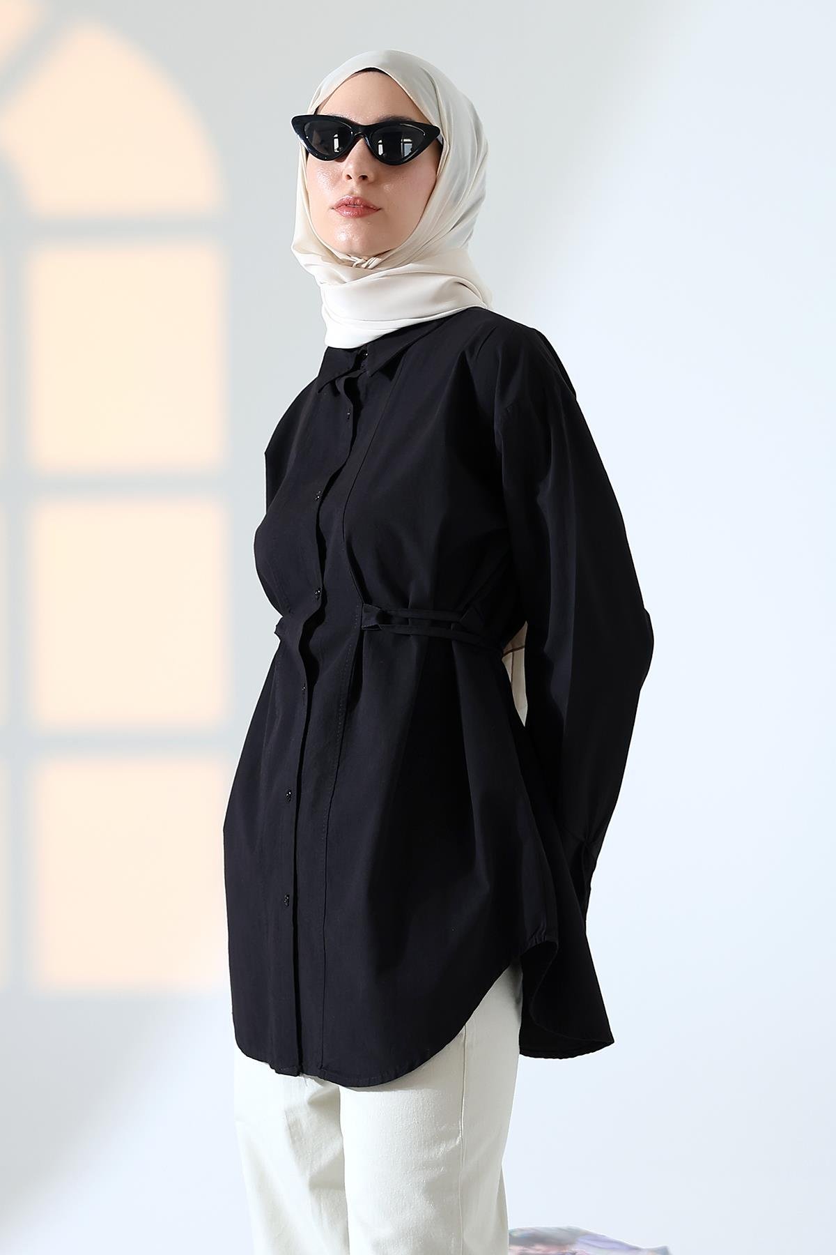 Kadın 100% Pamuk Poplin Kumaş Siyah Tesettür Gömlek