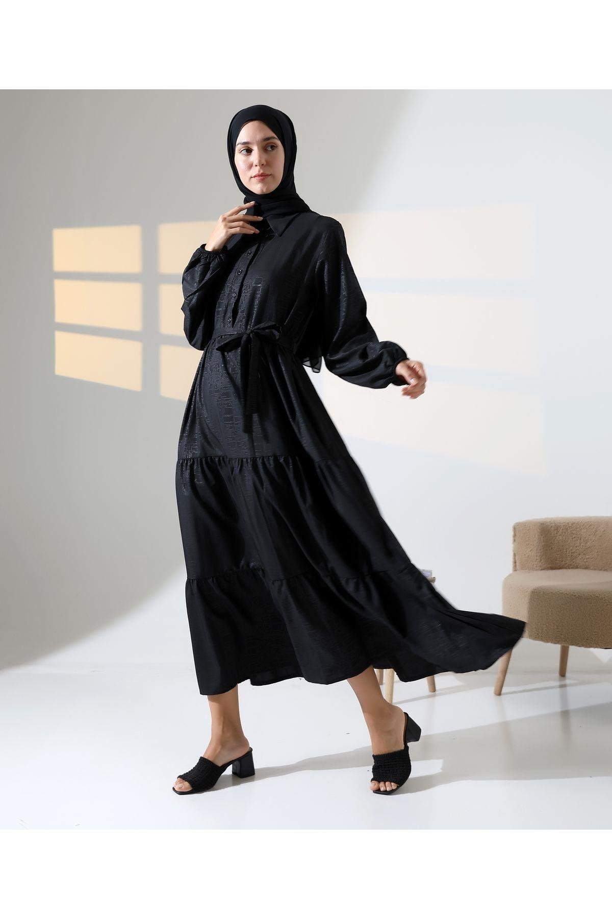 Kadın 100% Pamuk Viskon Desenli Siyah Tesettür Elbise