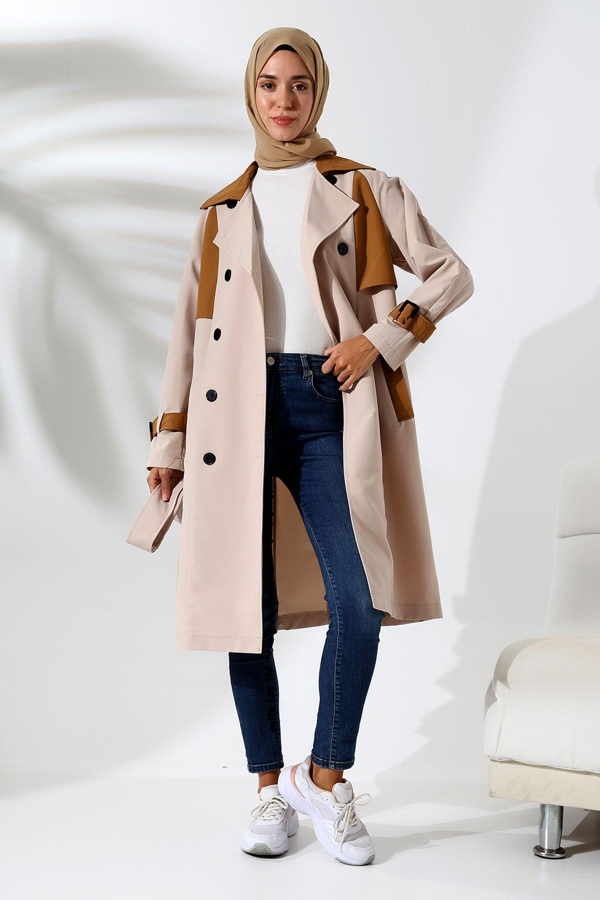 Pamuk ve polyester karışımı kumaş yapısı ile konforlu bir kullanım sunar ve uzun süreli giyimde rahatlık sağlar; Düz deseni sayesinde sade ve şık bir görünüm elde edilir, her türlü kombinle uyum sağlar; Tüm yaş gruplarına hitap eden tasarımıyla geniş bir kullanıcı yelpazesine sahiptir; Kruvaze kapama şekli ile modern ve zarif bir stil yaratırken, aynı zamanda pratik kullanım imkanı sunar; Uzun boy tasarımı ile hem şıklığı hem de koruyuculuğu bir arada sunarak mevsim geçişlerinde ideal bir tercih olur; Dokuma kumaş tipi, dayanıklılığı artırarak ürünün uzun ömürlü olmasına katkıda bulunur; 30 derecede yıkama talimatına uygun şekilde kolayca temizlenebilir; böylece hijyenik kalması kolaylaşır; Regular kalıp ile vücut hatlarını saran ancak sıkmayan rahat bir oturuş sağlar; Standart kol tipi, hareket özgürlüğünüzü kısıtlamadan konforlu bir kullanım sunar; Günlük ortamlarda rahatlıkla tercih edilebilecek tarzda tasar;