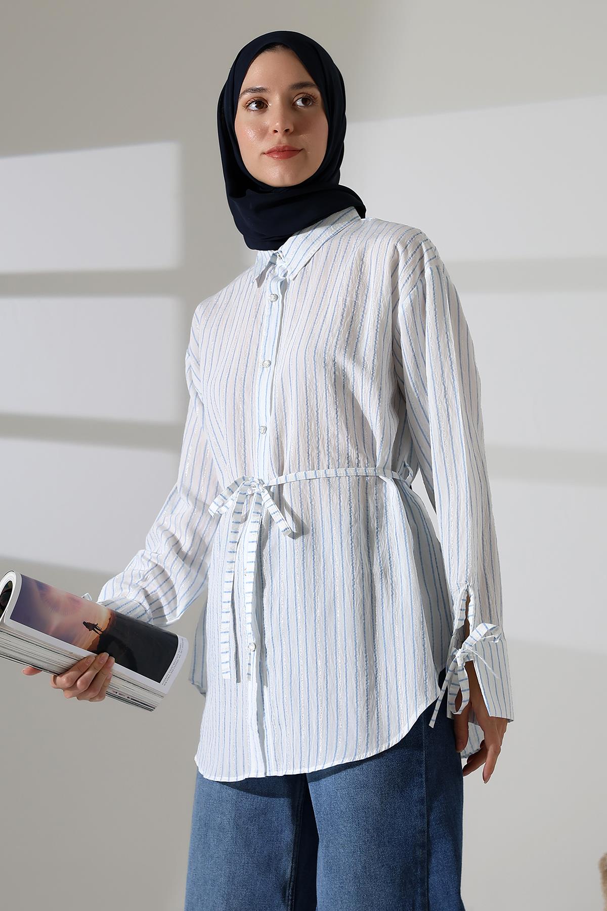 Kadın Modal Dokuma Kumaş Mavi Tesettür Gömlek