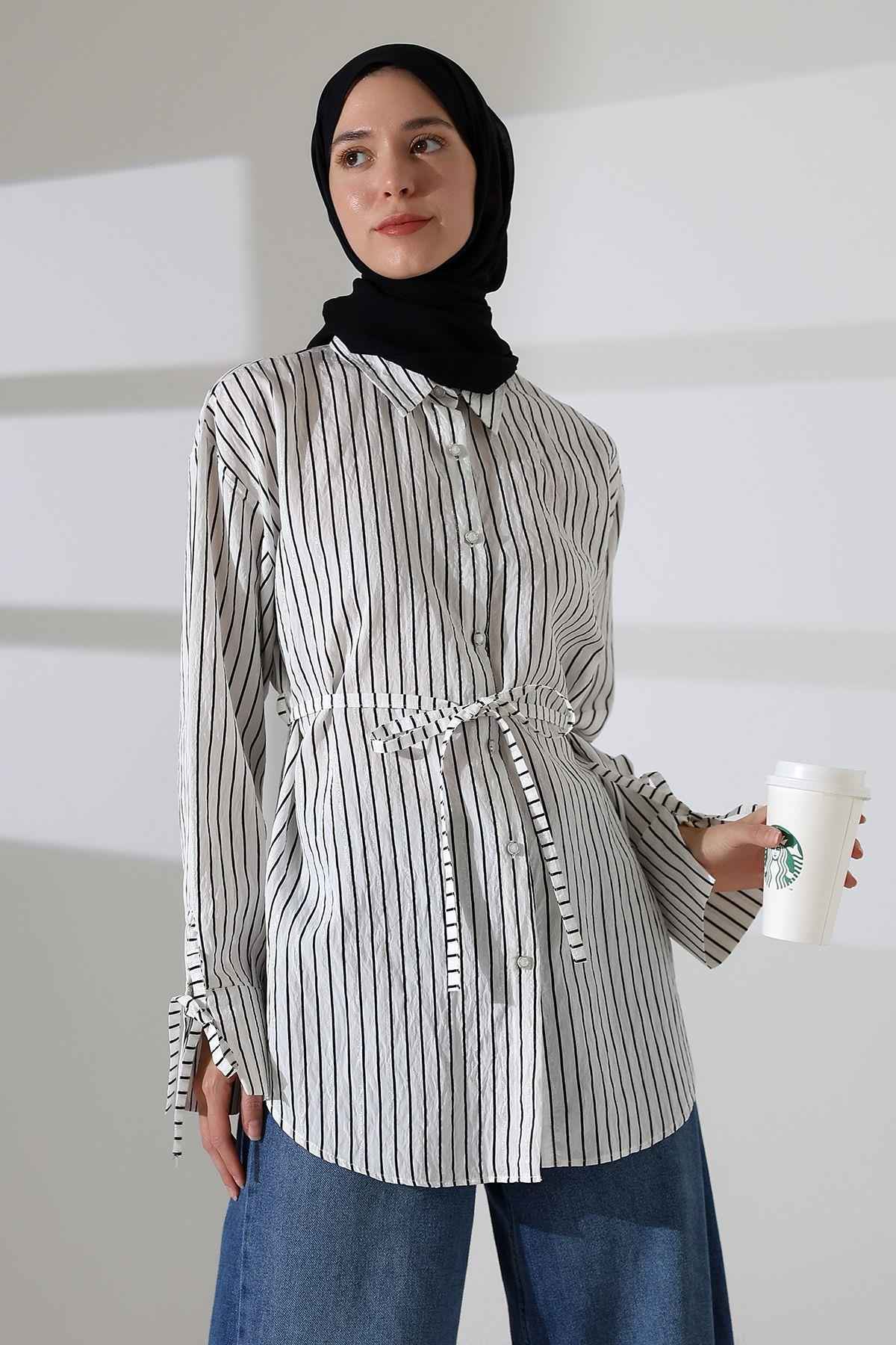 Mihran Butik’in kadın modal dokuma kumaş tesettür gömleği, 80% pamuk ve 20% polyester modal dokuma kumaşı sayesinde hafif, yumuşak ve rahat bir kullanım sunar.; İç göstermeyen özelliği, düğme kapamalı tasarımı klasik bir şıklık sağlarken, bel ayarlamalı kordon detayı sayesinde vücuda tam oturan ve istenilen formda kullanılabilen bir modeldir.; Regular fit rahat kalıbı sayesinde gün boyu konfor sunan bu gömlek, dört mevsim giyilebilecek yapısıyla her döneme uygundur.; S-M ve L-XL beden seçenekleriyle sunulan ürün, S-M beden için 82 cm, L-XL beden için 84 cm uzunluğa sahiptir ve S-M beden 55-70 kg, L-XL beden ise 71-90 kg aralığındaki kullanıcılar için idealdir.; Mavi, kahverengi, lacivert, pembe ve siyah renk seçenekleriyle her tarza hitap eden bu gömlek, günlük ve şık kombinler için mükemmel bir tamamlayıcıdır.; Fotoğraftaki manken 175 cm boyunda olup, 84 cm göğüs, 63 cm bel ve 90 cm basen ölçülerine sahiptir ve S-M beden giymektedir.; Şıklığı ve konforu bir araya getiren bu tesettür gömlek, gardırobunuzda vazgeçilmez bir parça olmaya adaydır.