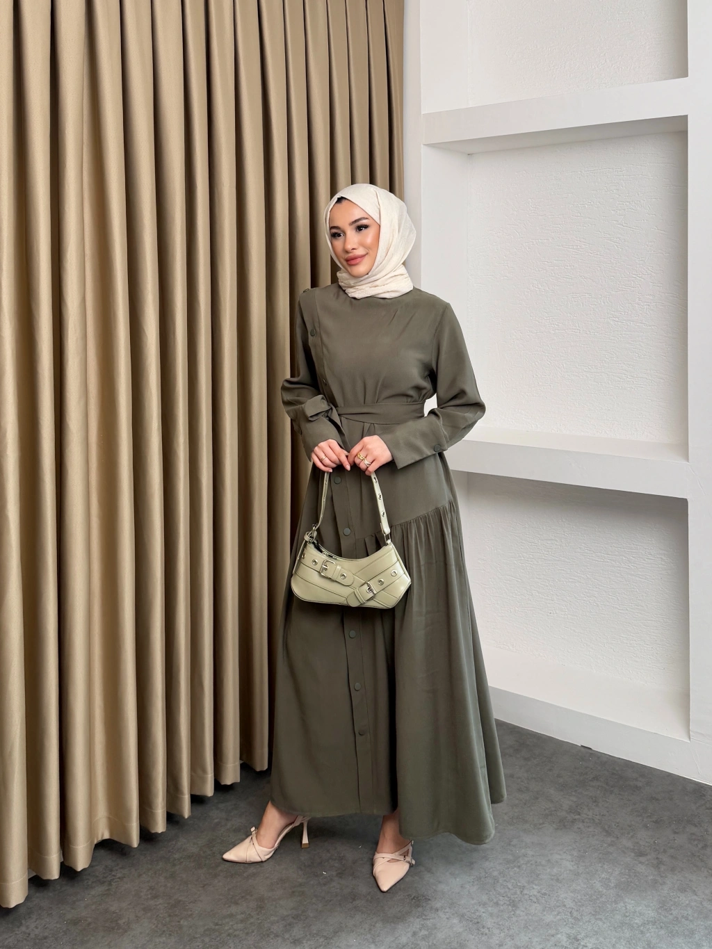 Alesta Model Coupra Kumaş Detaylı Kadın Elbise Takım
