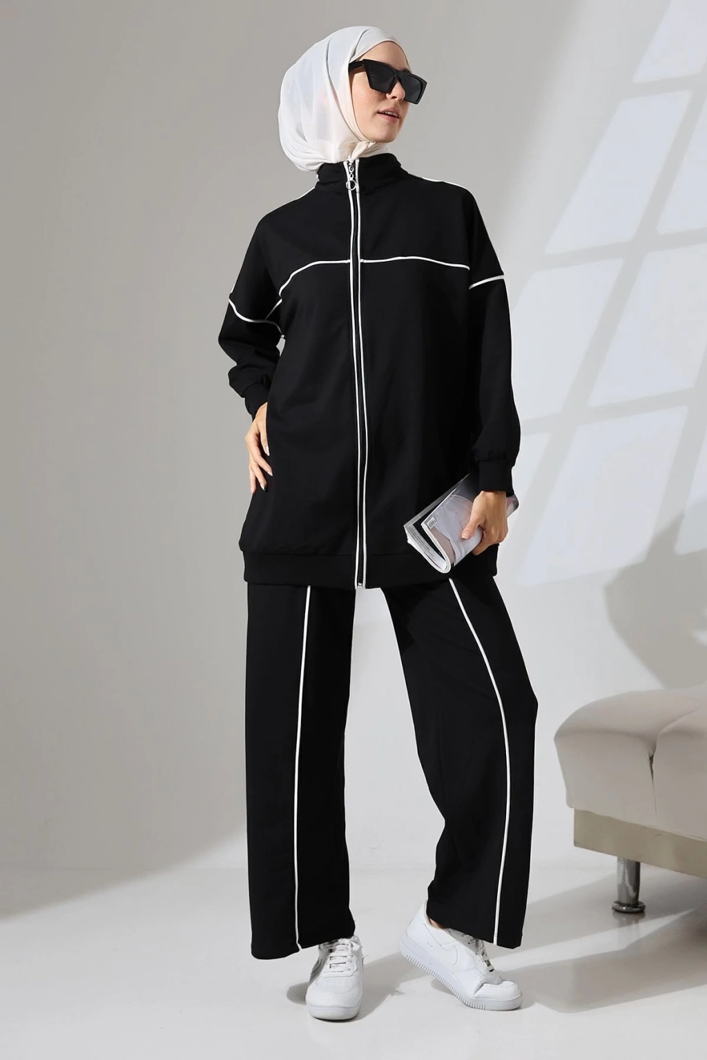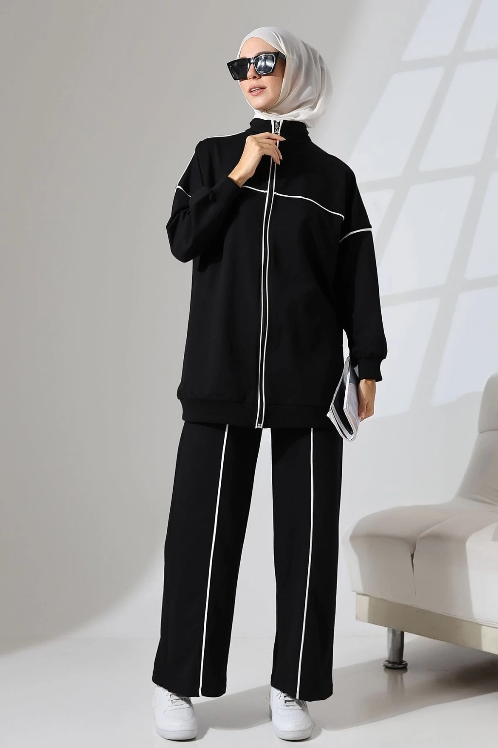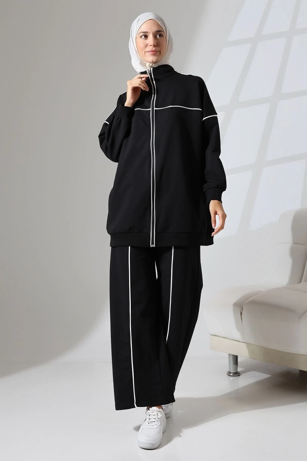 • Kadın Mevsimlik Penye Alt Üst Spor ve Rahat Tesettür Takım • Mihran Butik'in rahat ve şık 2 iplik penye kumaş takımı, günlük yaşamınıza konfor ve stil katıyor. ; %80 pamuk, %15 polyester ve %5 likra karışımından üretilen bu takım, her mevsim giyilebilir özelliğiyle gardırobunuzun vazgeçilmezi olacak. ; • Beden Önerisi: 55-62 kg S Beden, 63-70 kg M Beden, 71-80 kg L Beden, 81-90 kg XL Beden • Ürün Özellikleri: Kumaş Detayı: %80 Pamuk, %15 Polyester, %5 Likra, Beden Seçenekleri: S, M, L, XL Mevsim: 4 Mevsim giyilebilir, Kalıp: Rahat kesim, Takım Detayı: Pantolon ve üst olarak iki parçadan oluşur, Pantolon Özellikleri: Cepsiz, beli lastikli, geniş paça, Üst Özellikleri: Dik yaka, fermuarlı, Detaylar: Alt ve üst biyeli detaylar • Manken Ölçüleri: Boy: 175 cm Göğüs: 84 cm Bel: 63 cm Basen: 90 cm Mankenin Giydiği Beden: M • Renk Seçenekleri: Kahverengi, Lacivert, Siyah, Gül Kurusu, Benetton Yeşili, Turuncu, Haki, Saks Mavisi, Mint Yeşili, Siyah. ; • Teknik Bilgileri: S Beden: Göğüs: 62cm, Bel: 63cm, Boy 80cm, M Beden: Göğüs: 64cm, Bel: 65cm, Boy: 781cm, L Beden: Göğüs: 66cm, Bel: 67cm, Boy: 82cm, XL Beden: Göğüs: 68cm, Bel: 69cm, Boy: 83cm • Mihran Butik'in bu rahat ve şık takımıyla hem rahatlığınızı ön planda tutun hem de tarzınızı yansıtın. ; Geniş renk ve beden seçenekleriyle her zevke hitap eden bu takım, gardırobunuzda mutlaka yer almalı! • Ürününüzü daha uzun kullanabilmeniz ve ürününüze uygun bakım yapabilmeniz için lütfen ürün içerisindeki yıkama talimatlarına uyunuz. ; • Stüdyo çekimlerinde renkler ışık farklılığından dolayı değişiklik gösterebilir.;