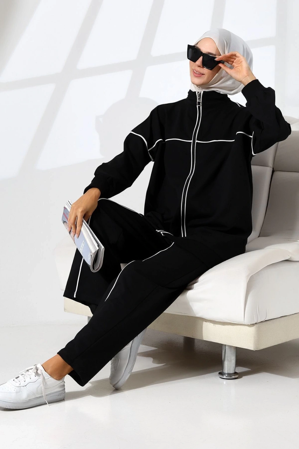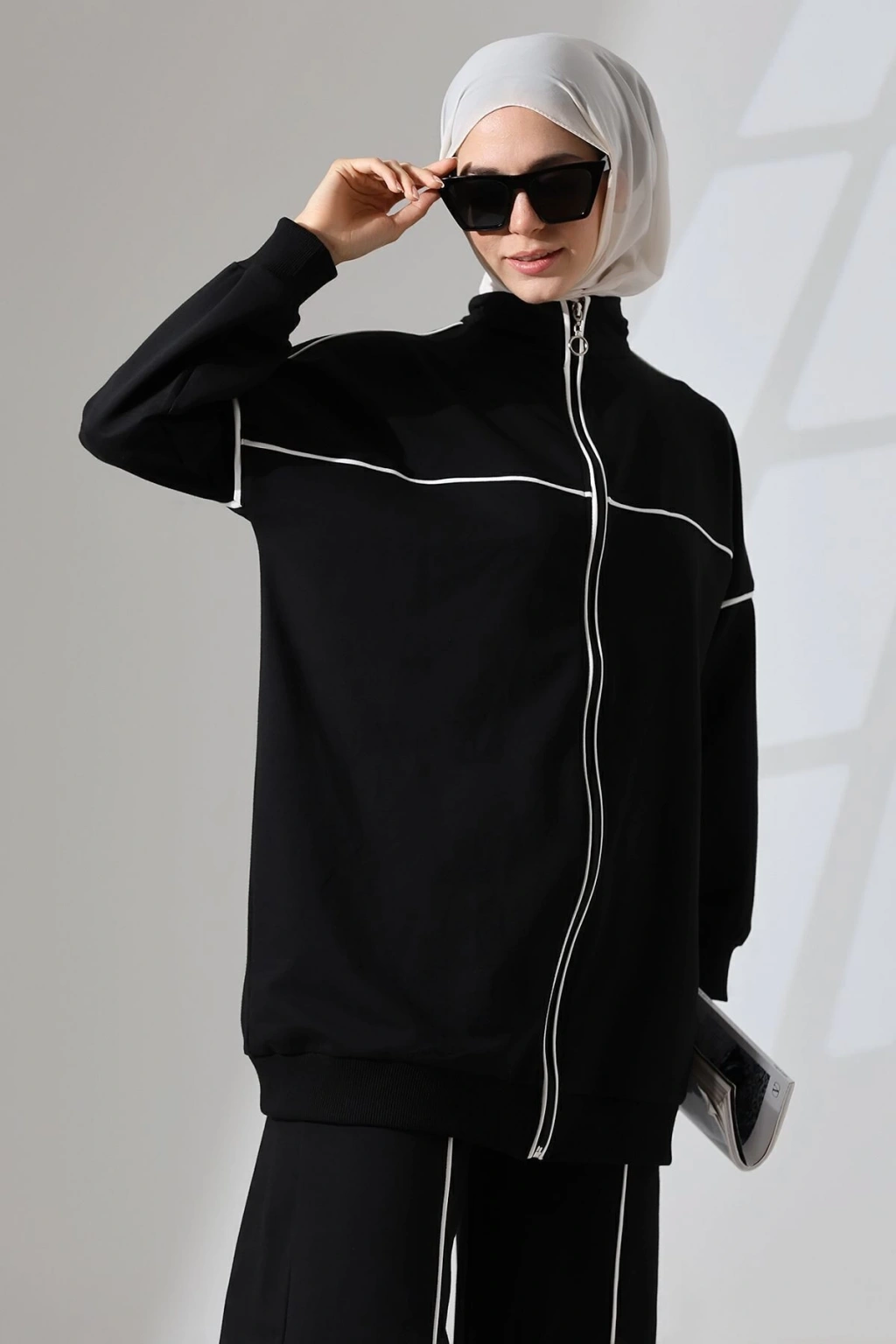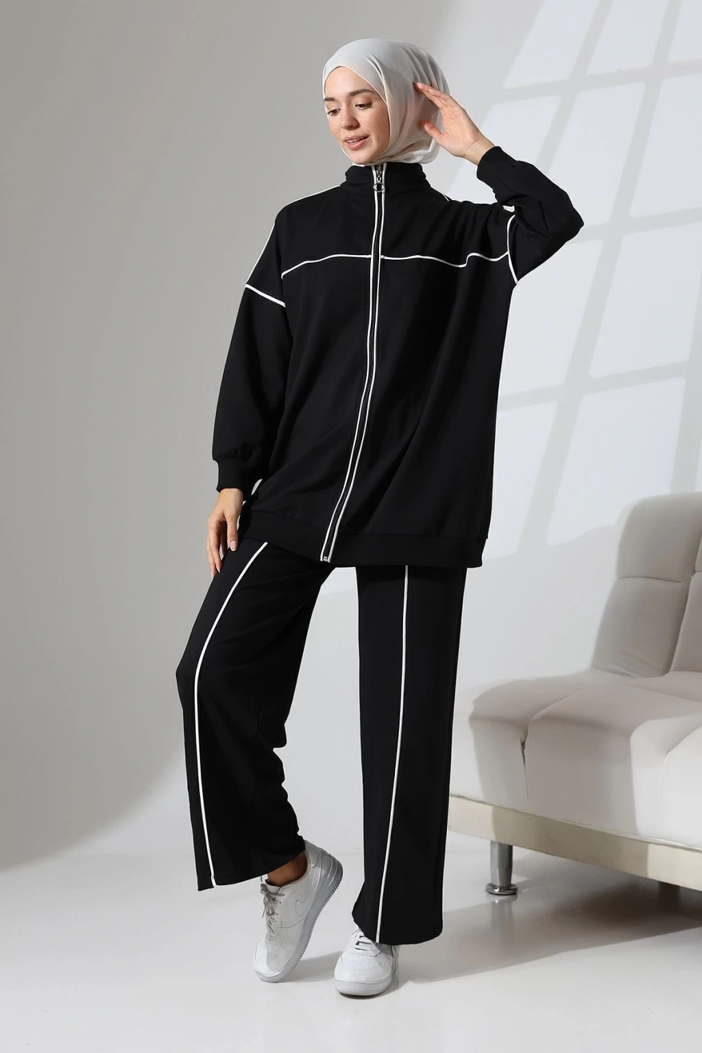 • Kadın Mevsimlik Penye Alt Üst Spor ve Rahat Tesettür Takım • Mihran Butik'in rahat ve şık 2 iplik penye kumaş takımı, günlük yaşamınıza konfor ve stil katıyor. ; %80 pamuk, %15 polyester ve %5 likra karışımından üretilen bu takım, her mevsim giyilebilir özelliğiyle gardırobunuzun vazgeçilmezi olacak. ; • Beden Önerisi: 55-62 kg S Beden, 63-70 kg M Beden, 71-80 kg L Beden, 81-90 kg XL Beden • Ürün Özellikleri: Kumaş Detayı: %80 Pamuk, %15 Polyester, %5 Likra, Beden Seçenekleri: S, M, L, XL Mevsim: 4 Mevsim giyilebilir, Kalıp: Rahat kesim, Takım Detayı: Pantolon ve üst olarak iki parçadan oluşur, Pantolon Özellikleri: Cepsiz, beli lastikli, geniş paça, Üst Özellikleri: Dik yaka, fermuarlı, Detaylar: Alt ve üst biyeli detaylar • Manken Ölçüleri: Boy: 175 cm Göğüs: 84 cm Bel: 63 cm Basen: 90 cm Mankenin Giydiği Beden: M • Renk Seçenekleri: Kahverengi, Lacivert, Siyah, Gül Kurusu, Benetton Yeşili, Turuncu, Haki, Saks Mavisi, Mint Yeşili, Siyah. ; • Teknik Bilgileri: S Beden: Göğüs: 62cm, Bel: 63cm, Boy 80cm, M Beden: Göğüs: 64cm, Bel: 65cm, Boy: 781cm, L Beden: Göğüs: 66cm, Bel: 67cm, Boy: 82cm, XL Beden: Göğüs: 68cm, Bel: 69cm, Boy: 83cm • Mihran Butik'in bu rahat ve şık takımıyla hem rahatlığınızı ön planda tutun hem de tarzınızı yansıtın. ; Geniş renk ve beden seçenekleriyle her zevke hitap eden bu takım, gardırobunuzda mutlaka yer almalı! • Ürününüzü daha uzun kullanabilmeniz ve ürününüze uygun bakım yapabilmeniz için lütfen ürün içerisindeki yıkama talimatlarına uyunuz. ; • Stüdyo çekimlerinde renkler ışık farklılığından dolayı değişiklik gösterebilir.;