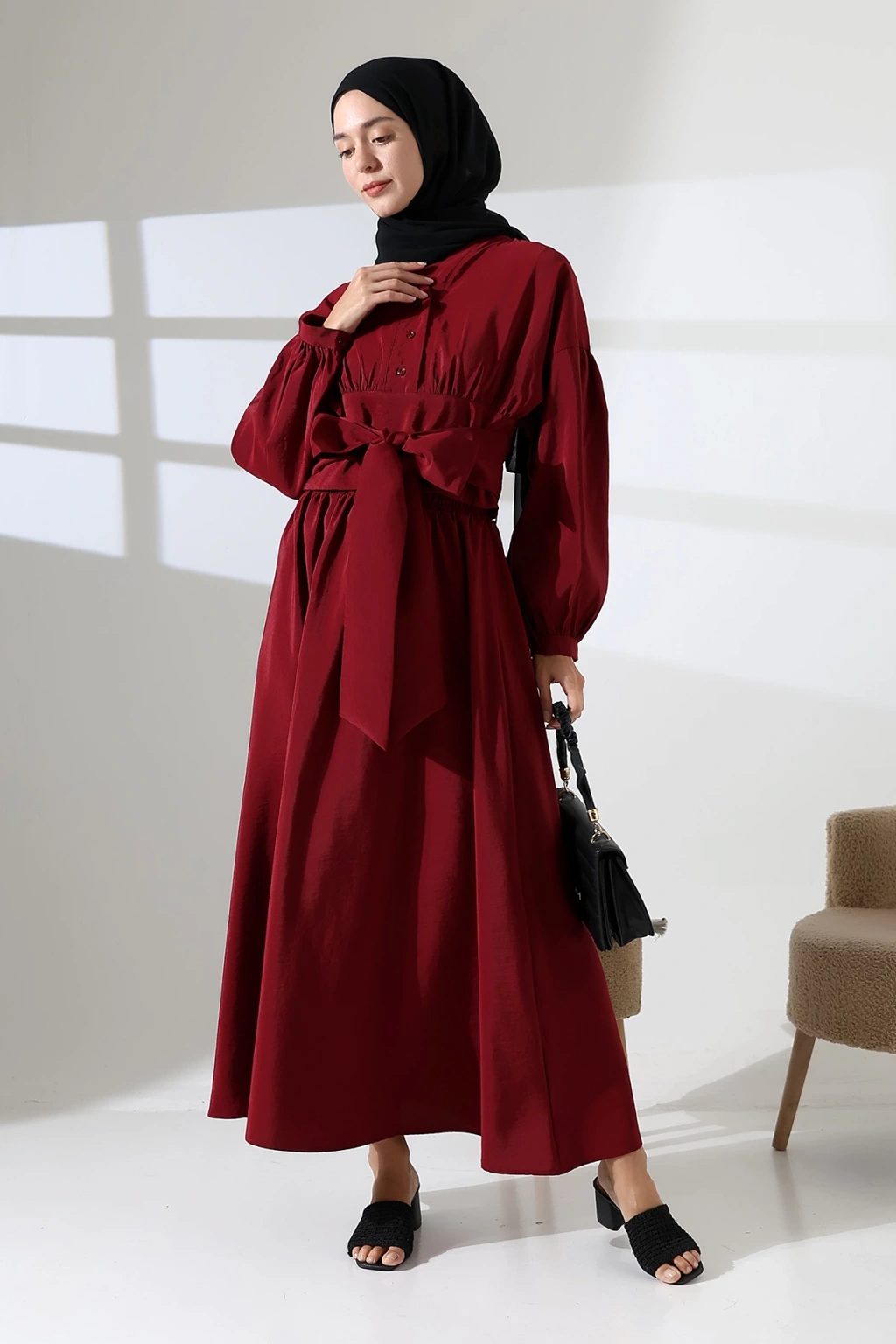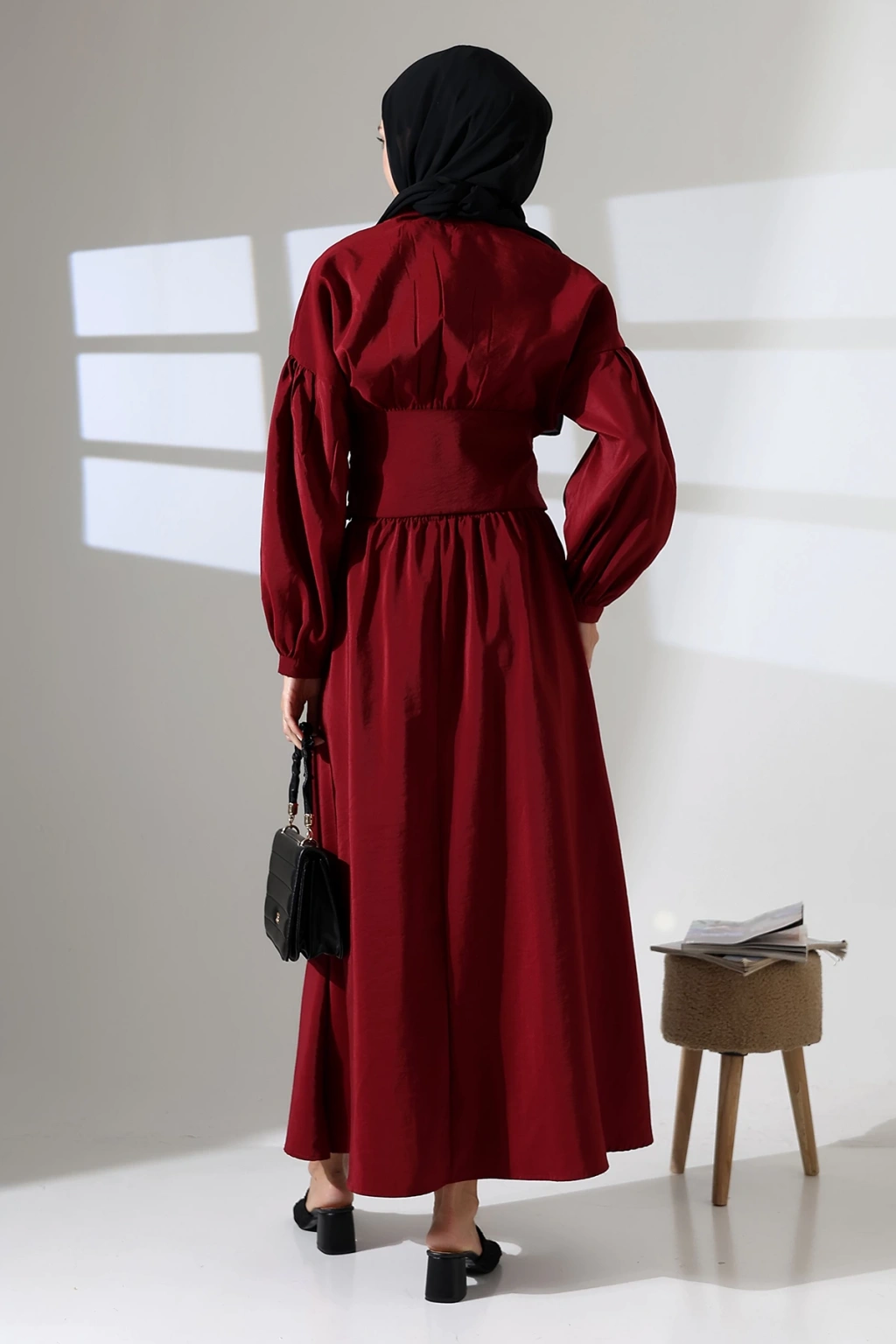 Mihran Butik’in kadın %100 pamuk modal gömlek etek tesettür takımı, modern çizgilerle zarafeti buluşturan özel tasarımıyla öne çıkıyor; %100 pamuk modal dokuma kumaştan üretilen takım, hem şıklık hem de konfor arayan kadınlar için ideal bir seçimdir; Sıfır yaka ve düğmeli detaylara sahip gömlek, balon kol kesimi ve fiyonk bağlama özelliği ile feminen bir görünüm sunarken, bel kısmında yer alan gizli fermuar sayesinde kullanım kolaylığı sağlar; Lastikli beli ile eteği, gün boyu rahat bir kullanım vaat eder; S-M ve L-XL beden seçeneklerine sahip bu takımda, S-M beden için gömlek göğüs ölçüsü 48 cm, uzunluğu 49 cm ve etek beli 40 cm iken; L-XL beden için gömlek göğüs ölçüsü 52 cm, uzunluğu 51 cm ve etek beli 44 cm’dir; Her iki beden seçeneğinde de etek uzunluğu 100 cm olarak tasarlanmıştır; Regular kalıp formu, rahat ve şık bir duruş sağlar; S-M beden 55-70 kg arası, L-XL beden ise 71-90 kg arası kullanıcılar için uygundur; Ürün görsellerinde yer alan mankenin boyu 175 cm, göğüs 84 cm, bel 63 cm ve basen ölçüsü 90 cm’dir; Mankenin üzerinde S-M beden ürün bulunmaktadır; Bordo, gri, haki, kahverengi, krem, lacivert ve siyah gibi farklı renk alternatifleriyle sunulan bu takım, stilinize uygun seçenekler sunar; Stüdyo çekimlerinde ışık farklılıklarından dolayı renklerde küçük ton değişiklikleri yaşanabilir.