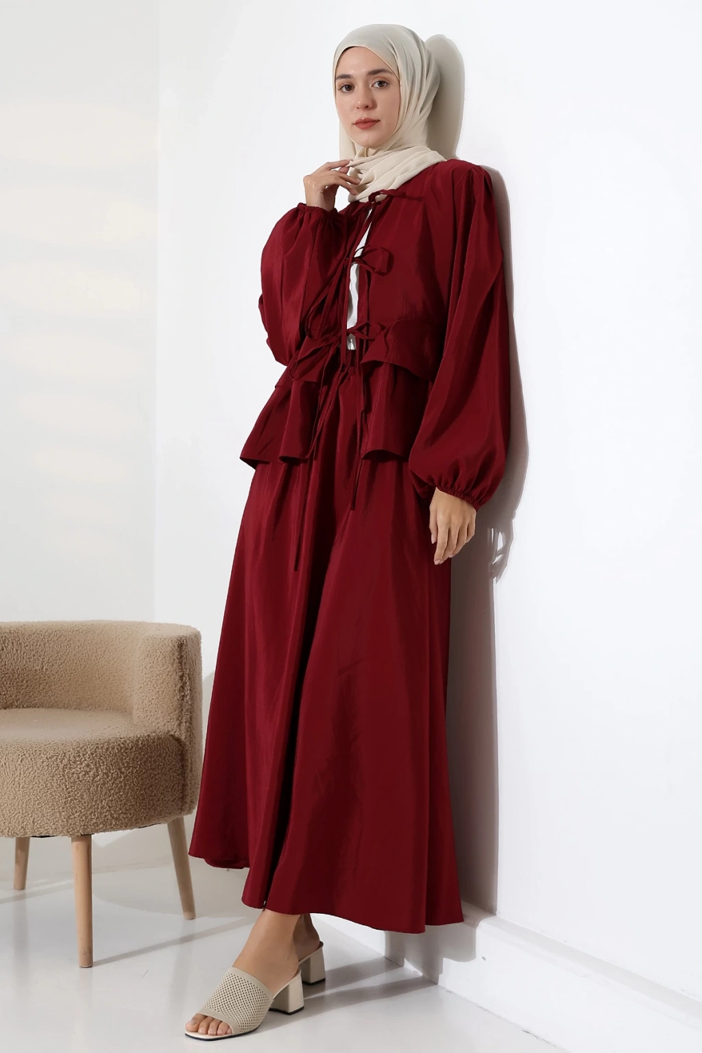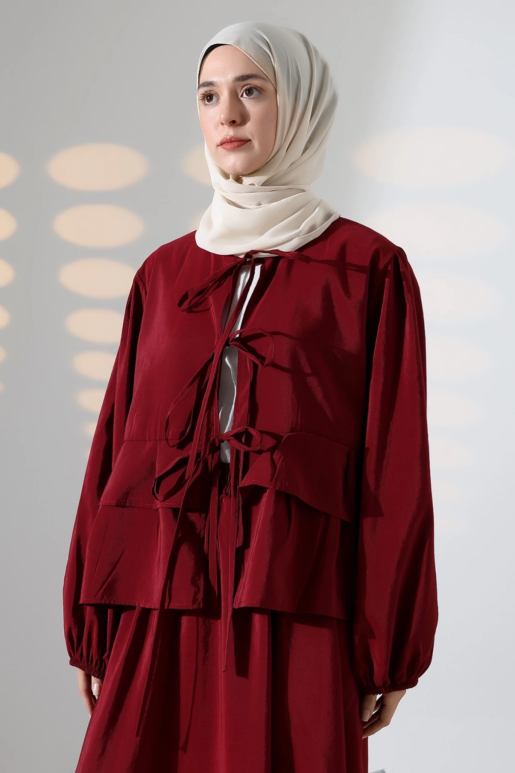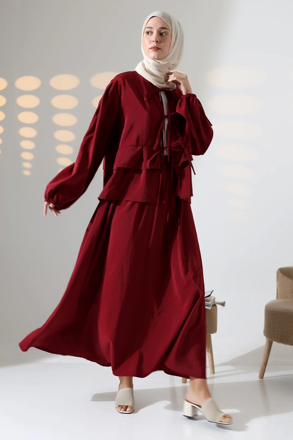 Mihran Butik’in kadın 100% pamuk modal gömlek etek tesettür takımı, zarif tasarımı ve doğal kumaş dokusuyla günlük şıklığınızı tamamlıyor.; 100% pamuk modal dokuma kumaştan üretilen takım, dört mevsim kullanım için uygundur.; Gömlek balon kol tasarımı, fiyonk bağlama detayı ve bileklerdeki lastik yapısıyla şıklığı ve konforu bir arada sunar.; Eteğin beli lastikli olarak tasarlanmış olup, rahat hareket etmenizi sağlar.; S-M ve L-XL beden seçenekleriyle sunulan takımda, S-M beden için gömlek göğüs ölçüsü 55 cm ve uzunluğu 62 cm; L-XL beden için göğüs ölçüsü 59 cm ve uzunluğu 63 cm’dir.; Her iki beden için eteğin uzunluğu 100 cm’dir.; Beden önerisi olarak, S-M beden 55-70 kg; L-XL beden 71-90 kg arasındaki kullanıcılar için uygundur.; Regular kalıp yapısıyla vücuda rahat bir oturuş sunan bu takım, beyaz, bordo, gri, haki, kahverengi ve krem renk seçenekleriyle satışa sunulmaktadır.; Fotoğraftaki mankenin boyu 175 cm, göğüs 84 cm, bel 63 cm, basen ölçüsü 90 cm olup, üzerindeki ürün S-M bedendir.; Stüdyo çekimlerinde ışık farkından dolayı renklerde ton farklılıkları oluşabilir.