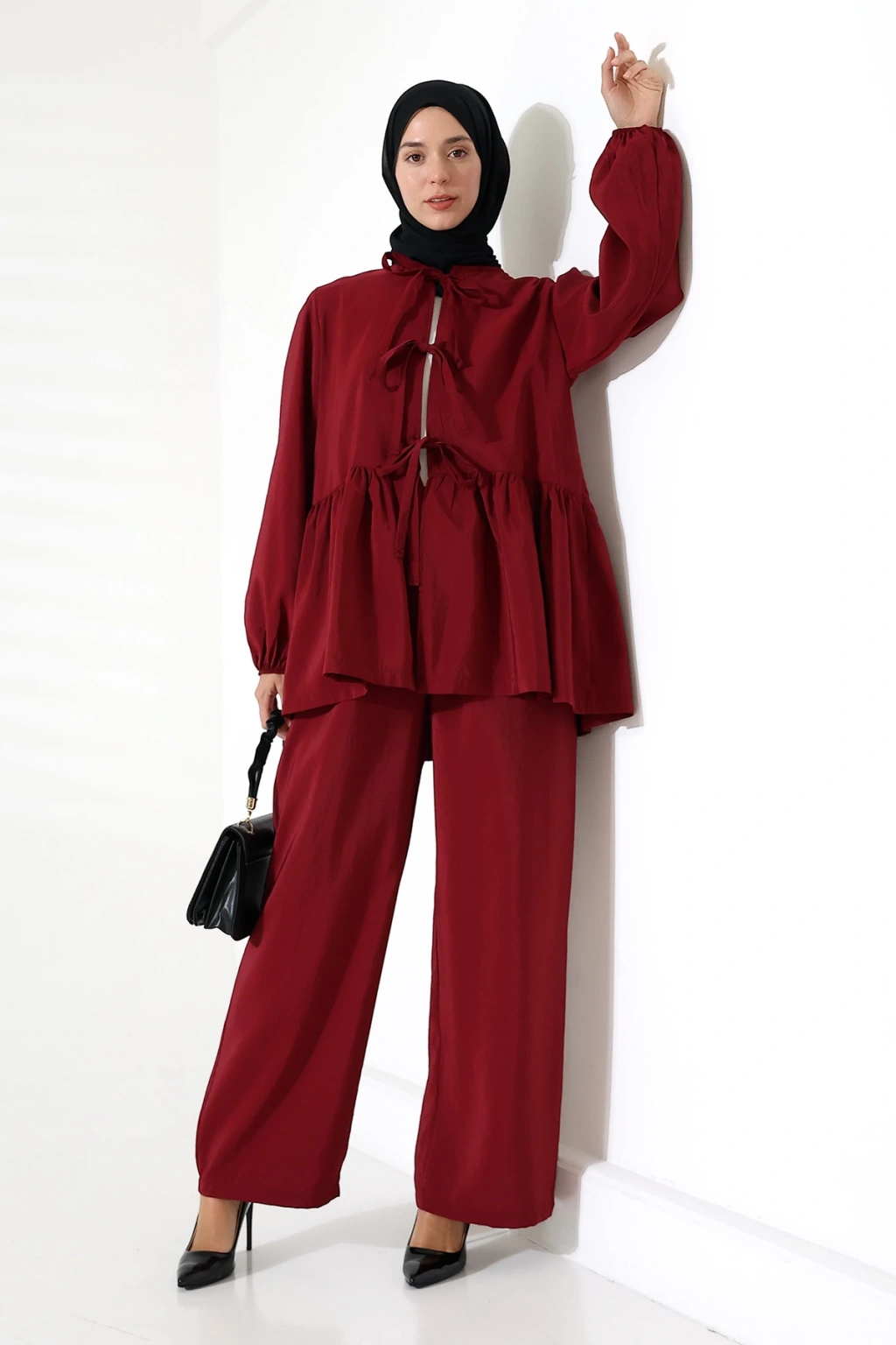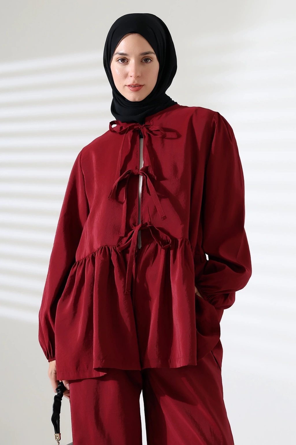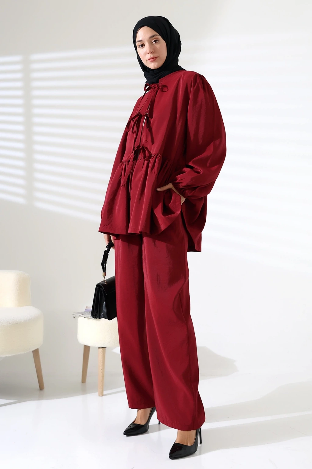 Kadın 100% Pamuk Modal Bordo Gömlek Pantolon Tesettür Takım