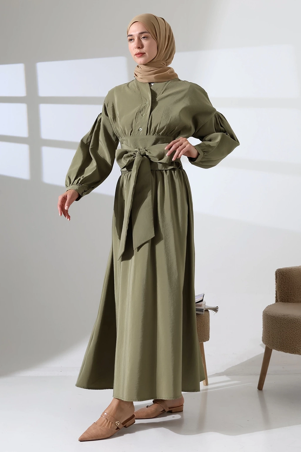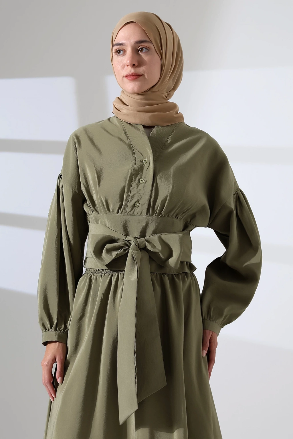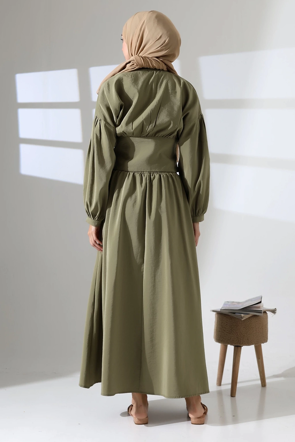 Kadın 100% Pamuk Modal Haki Gömlek Etek Tesettür Takım
