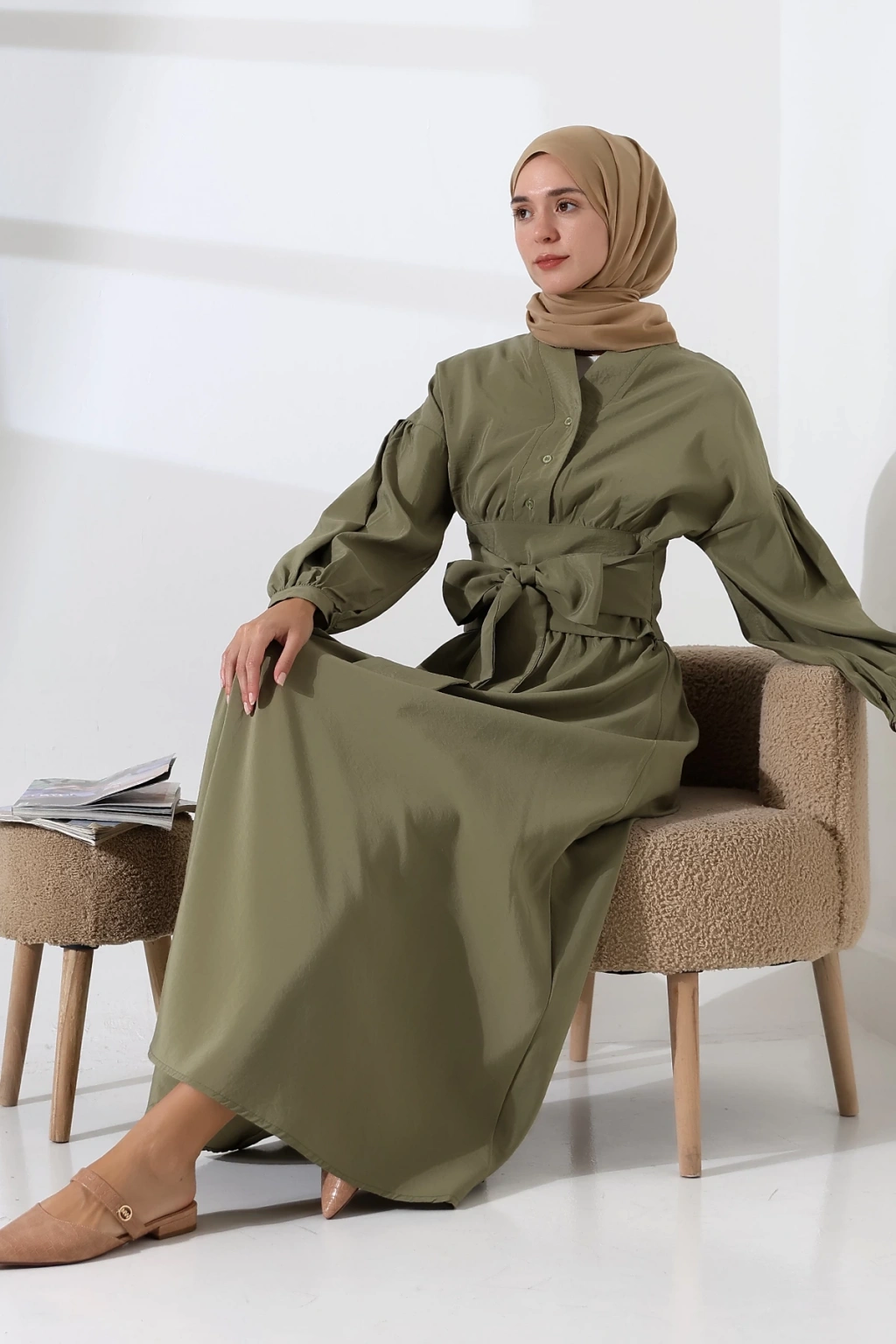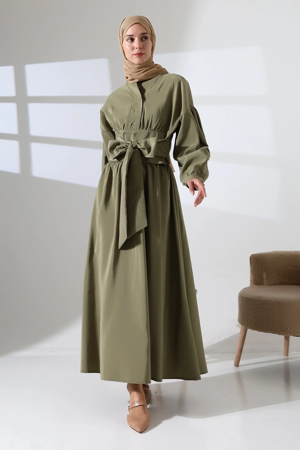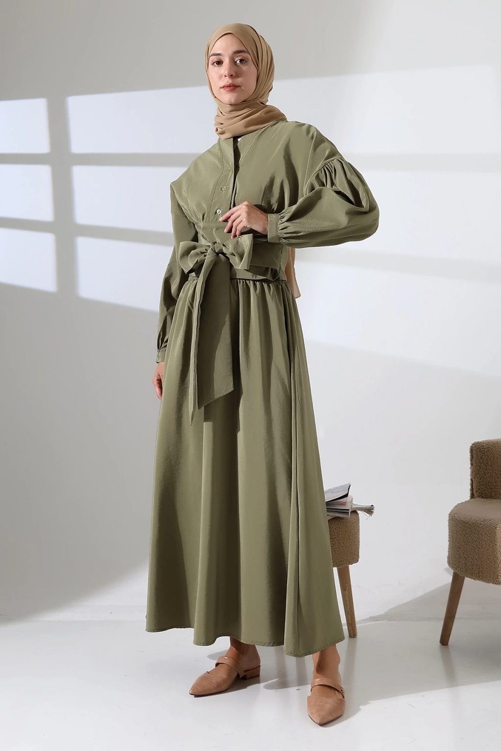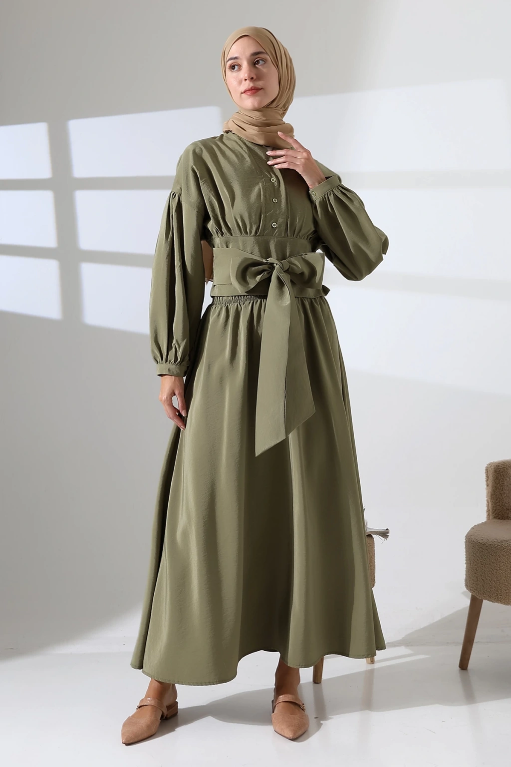 Kadın 100% Pamuk Modal Haki Gömlek Etek Tesettür Takım