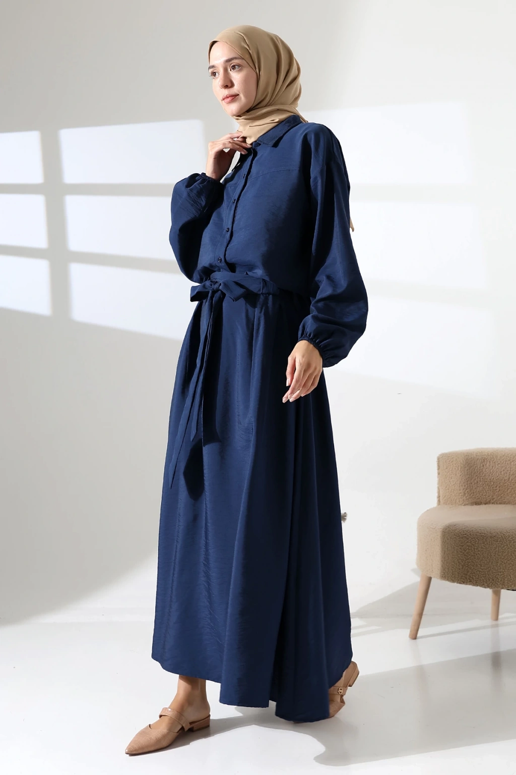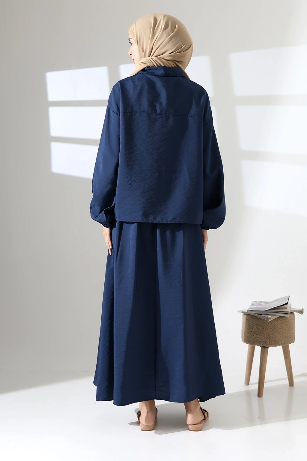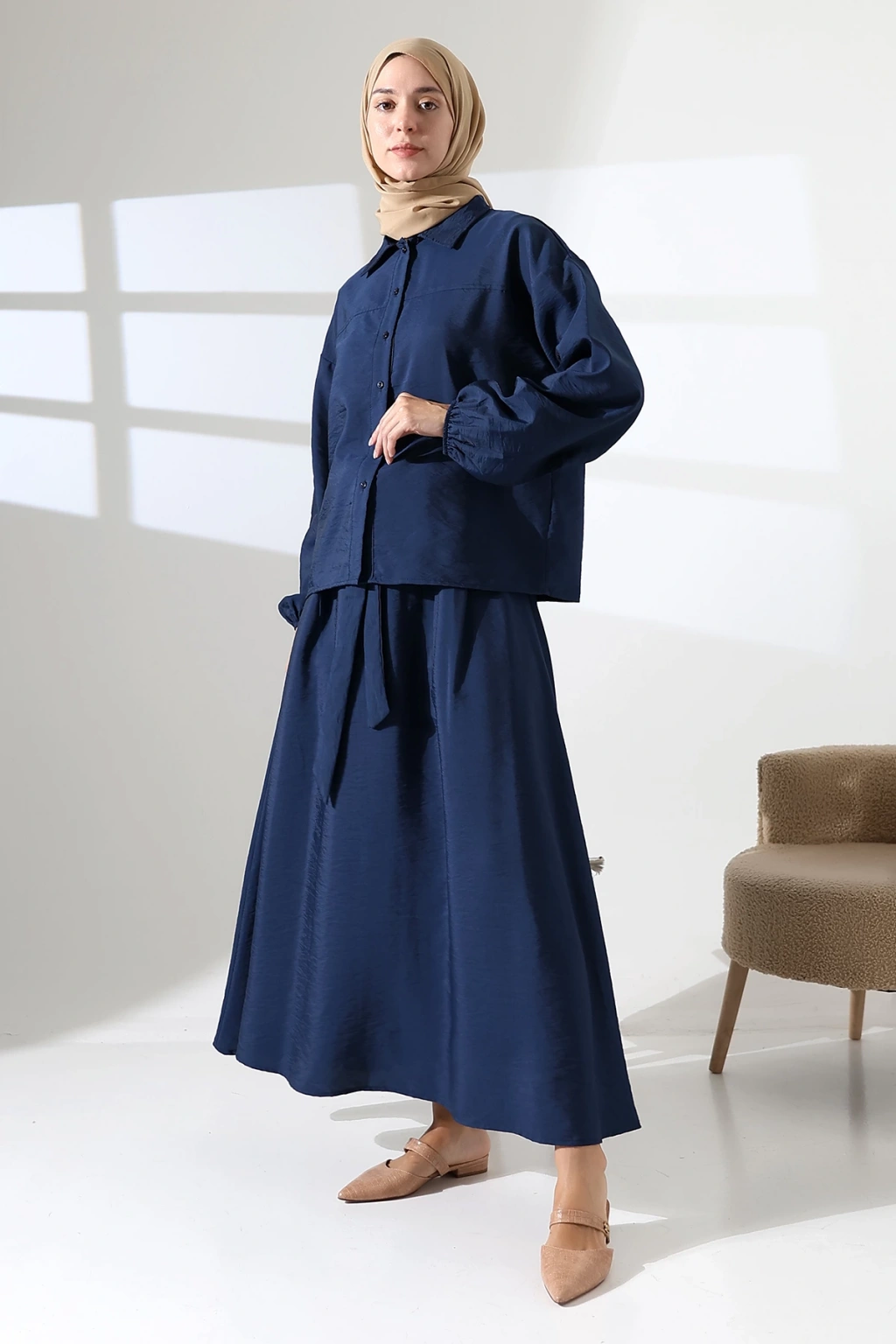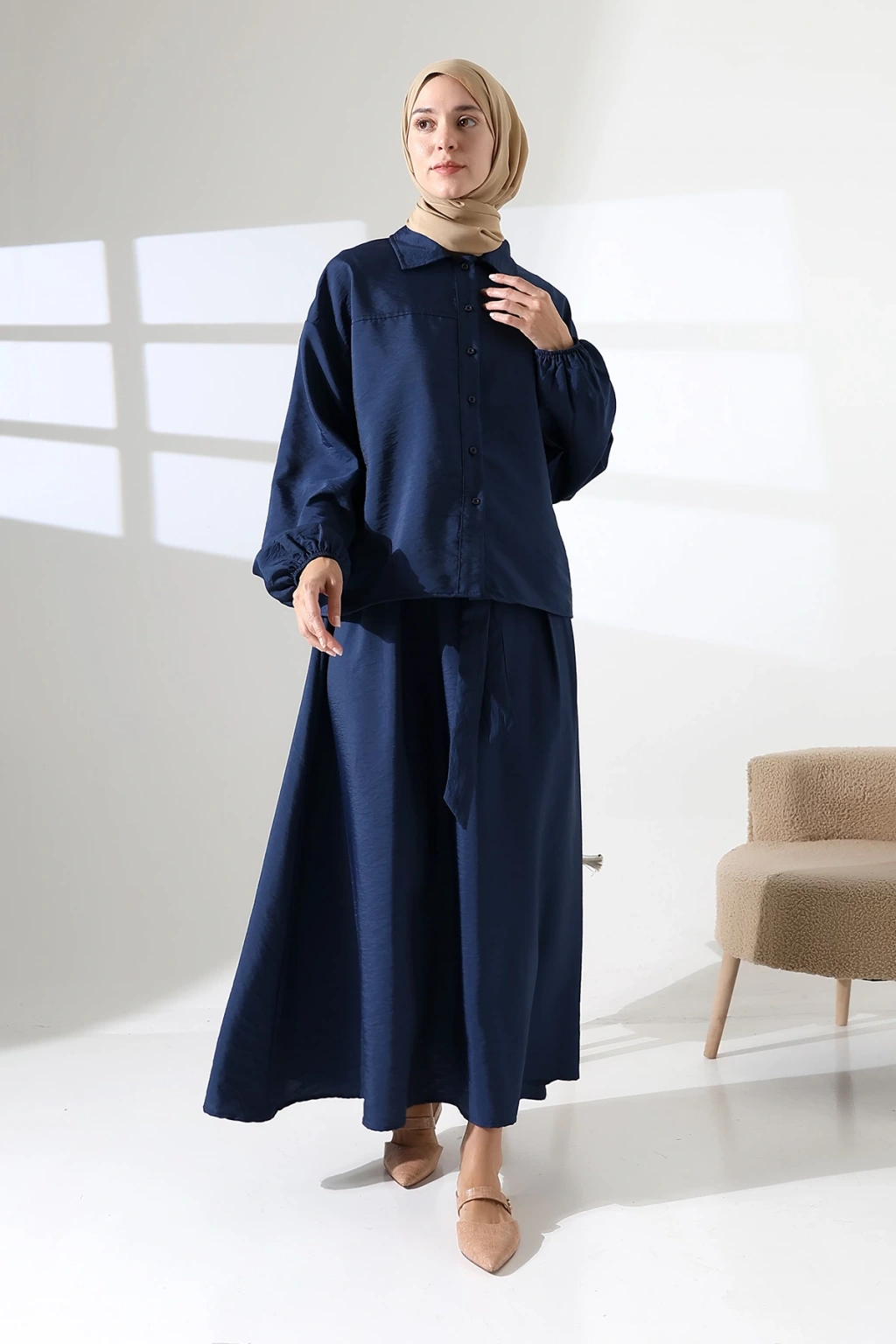 Mihran Butik’in kadın %100 pamuk modal gömlek etek tesettür takımı, doğal dokusu ve modern tasarımıyla günlük şıklığı konforla buluşturur; %100 pamuk modal dokuma kumaştan üretilen takım, nefes alabilen yapısı sayesinde cilt dostudur; Gömlek yakalı, düğmeli ve balon kollu üst parçası feminen detaylarla öne çıkar; Eteğin lastikli beli ve kuşak detayı ise hem kullanım kolaylığı hem de zarif bir siluet sunar; S-M beden seçeneğinde gömlek göğüs ölçüsü 52 cm, uzunluğu 62 cm iken; L-XL bedende göğüs 62 cm, uzunluk ise 64 cm'dir; Her iki beden seçeneğinde de eteğin uzunluğu 100 cm olarak tasarlanmıştır; Ürün, regular kalıbı sayesinde farklı vücut tiplerine uyum sağlar; Beden önerisi olarak S-M beden 55-70 kg arası, L-XL beden ise 71-90 kg arası kullanıcılar için idealdir; Ürün görsellerinde yer alan mankenin boyu 175 cm, göğüs 84 cm, bel 63 cm ve basen ölçüsü 90 cm’dir; Manken S-M beden ürün giymektedir; Bordo, camel, gri, krem, lacivert ve siyah olmak üzere geniş renk seçenekleriyle sunulan bu tesettür takım, gardırobunuzda zamansız bir parça olmaya adaydır; Stüdyo çekimlerinde ışık farkından kaynaklı olarak ürün renklerinde ton farklılıkları görülebilir.
