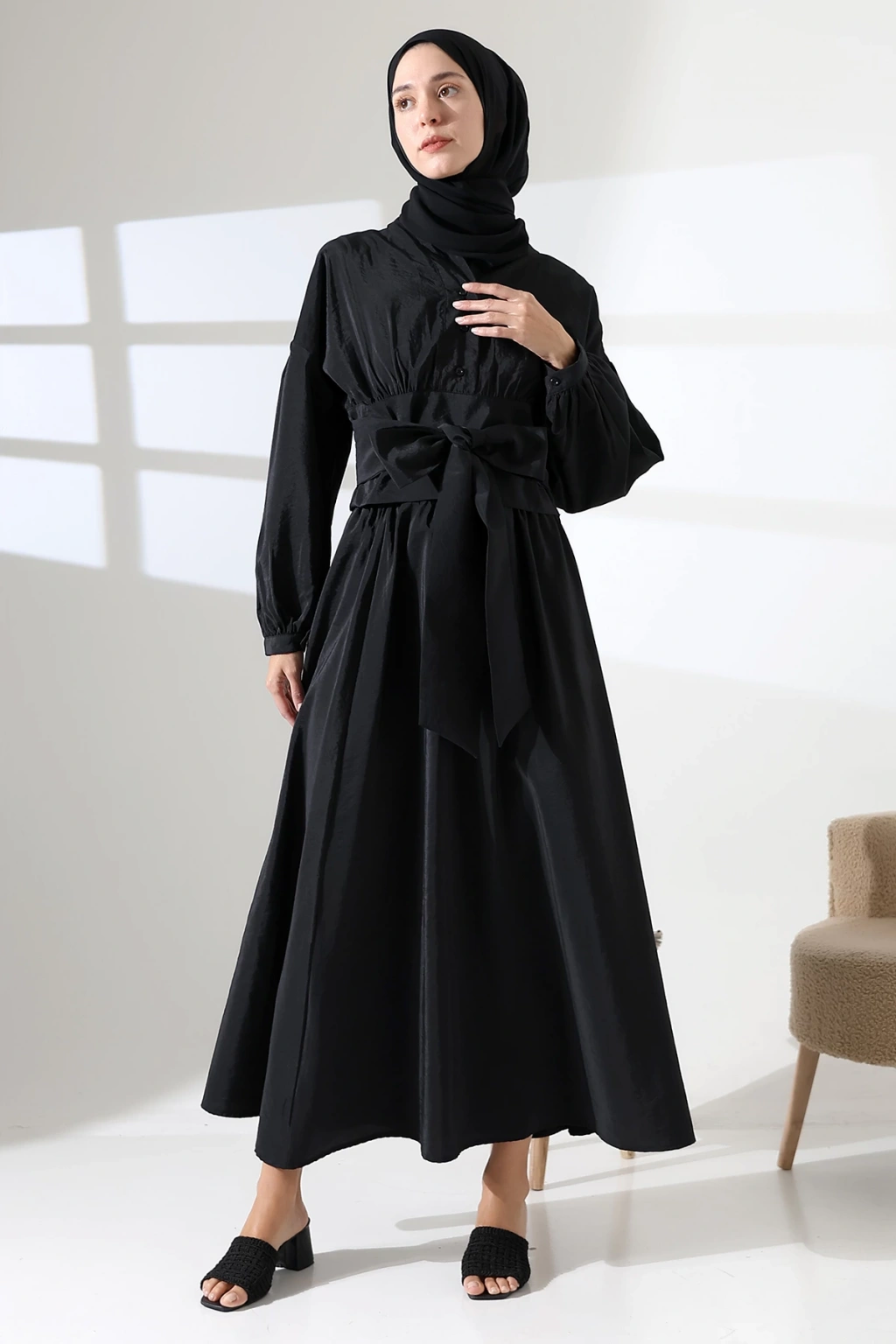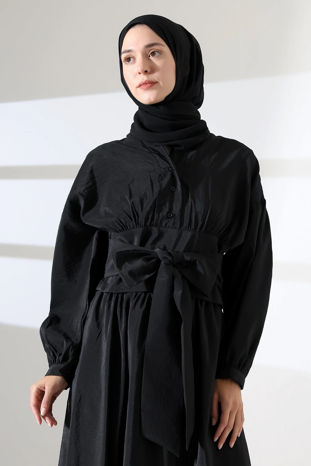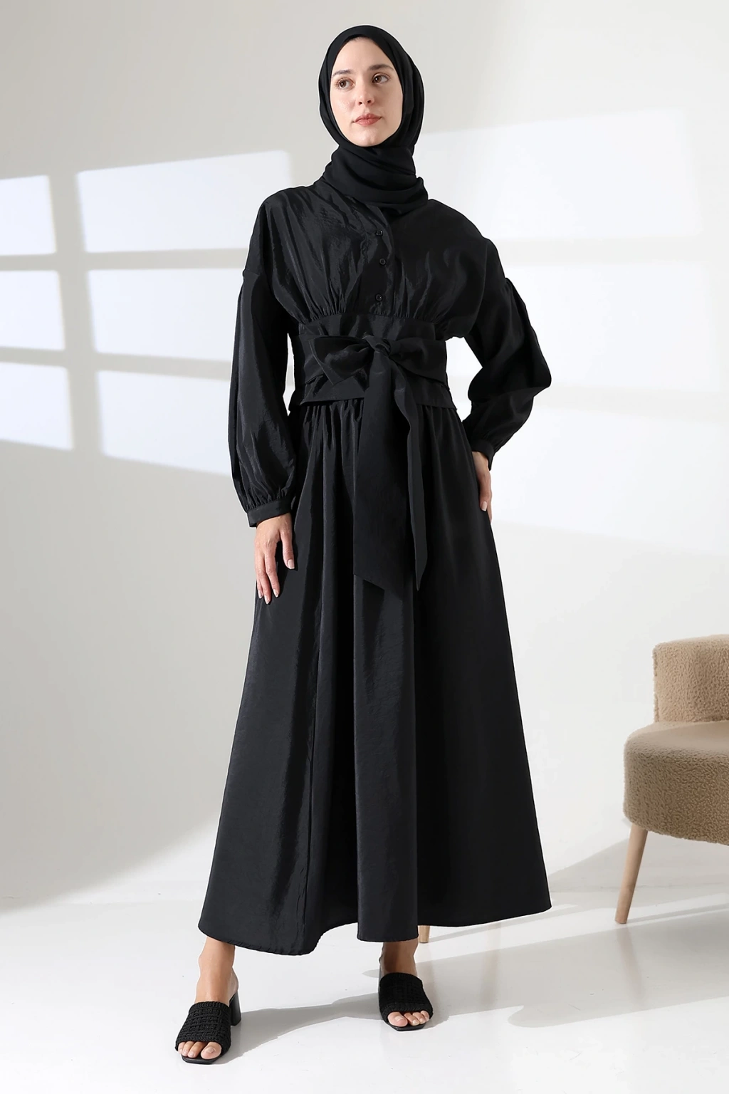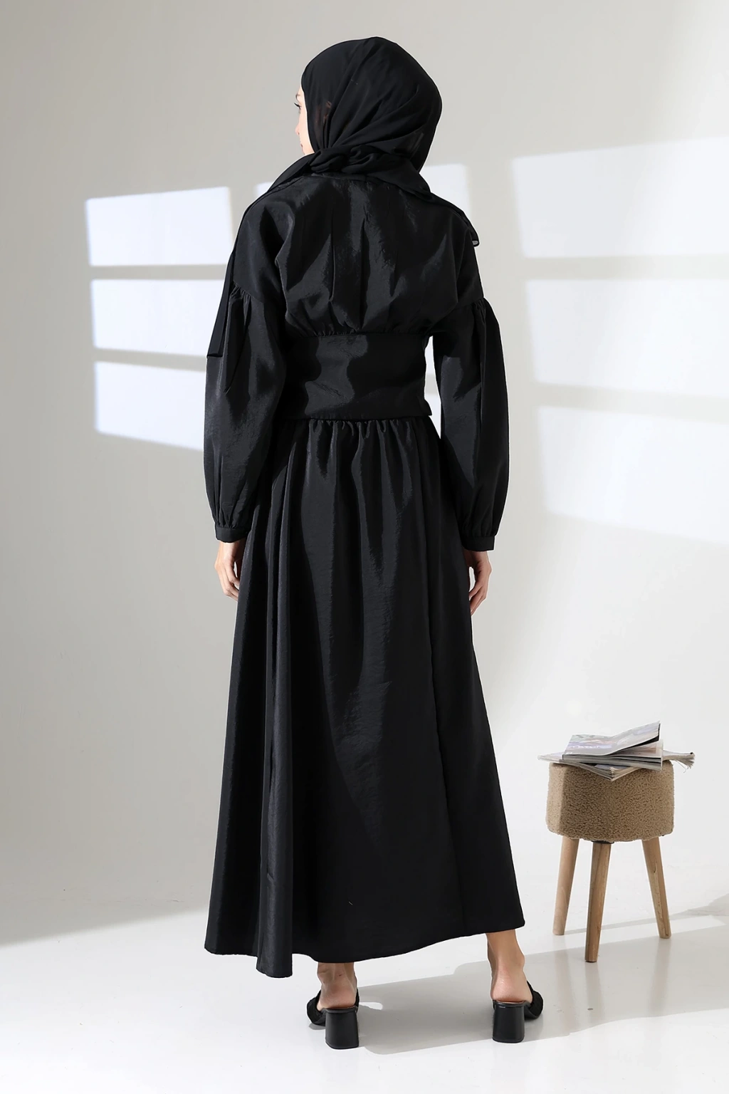 Kadın 100% Pamuk Modal Siyah Gömlek Etek Tesettür Takım