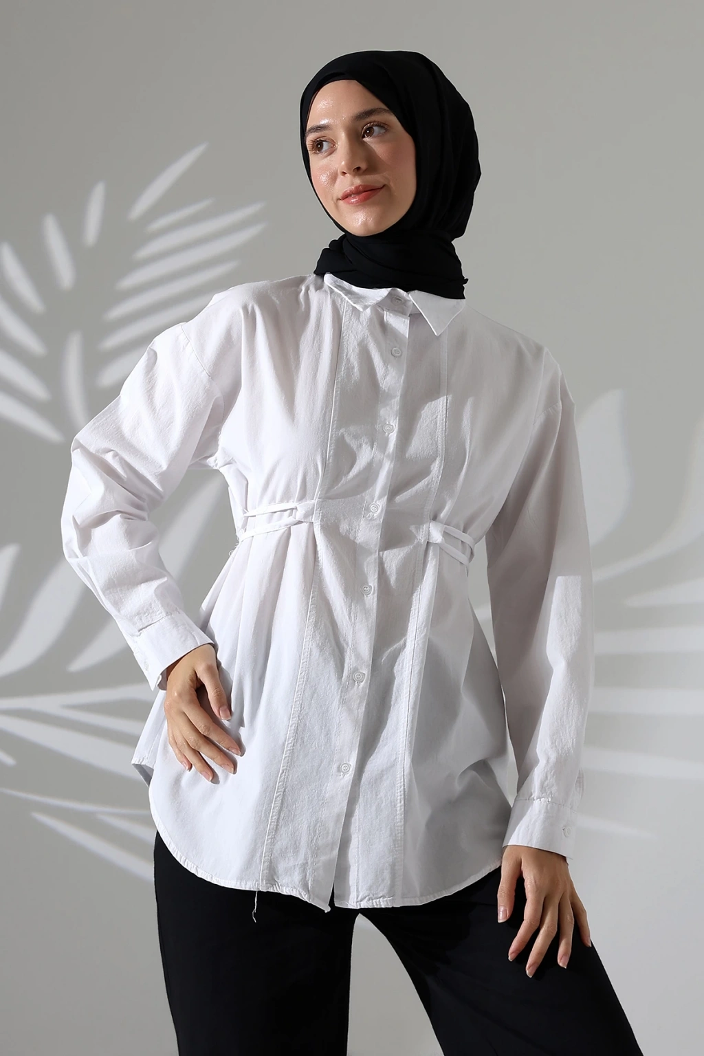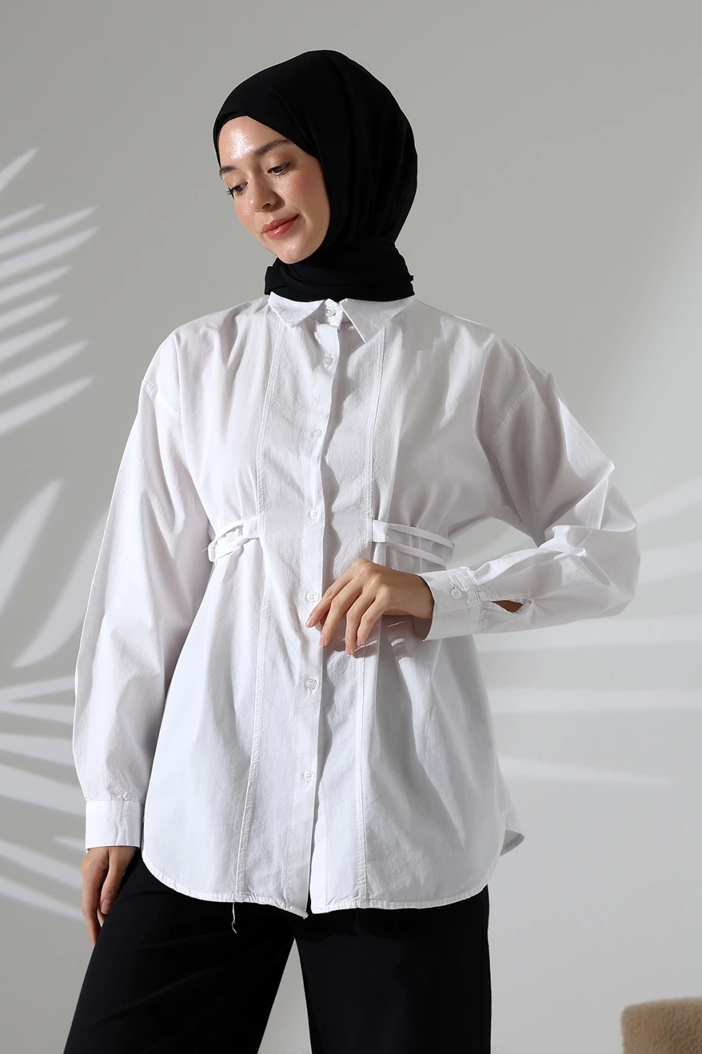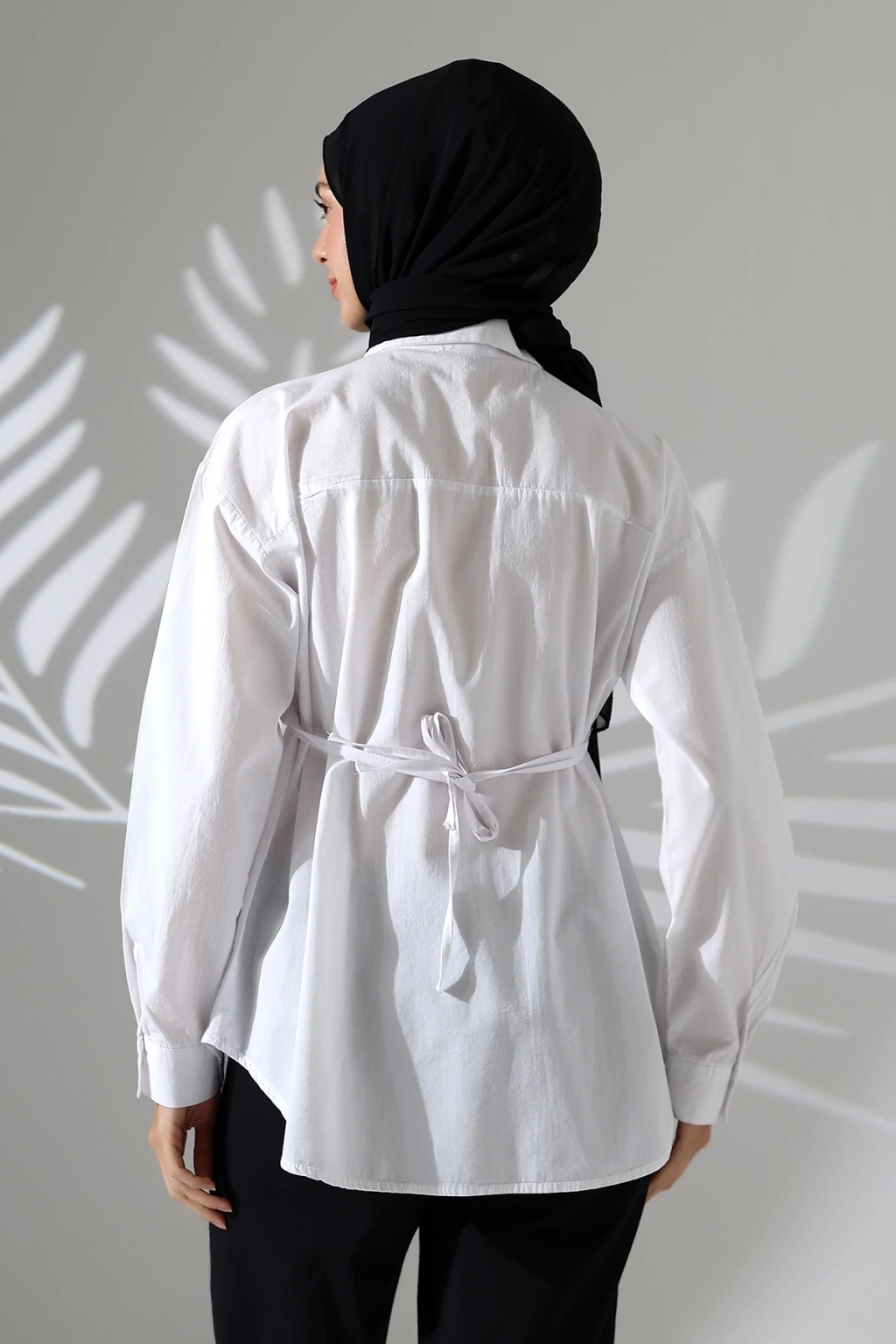 Kadın 100% Pamuk Poplin Kumaş Beyaz Tesettür Gömlek