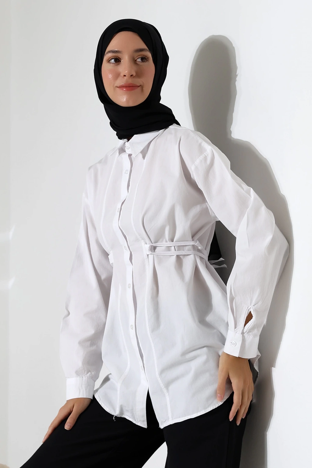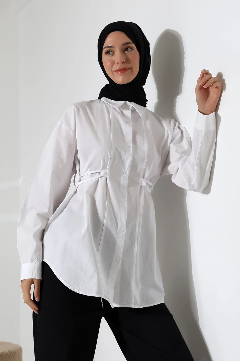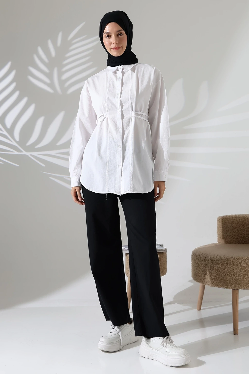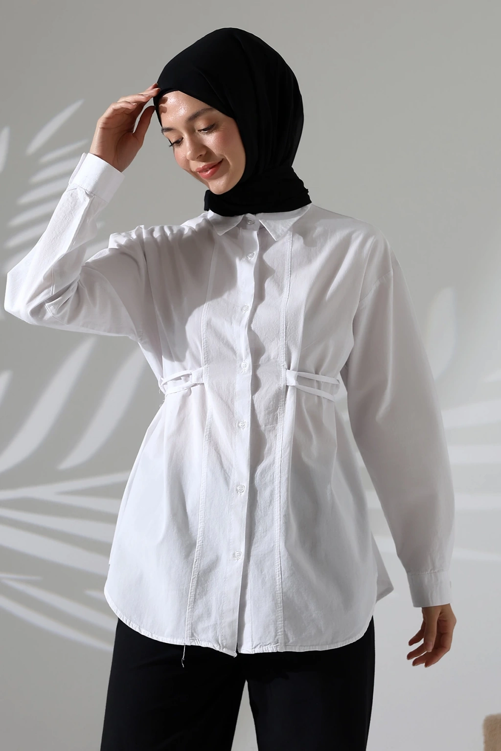 Kadın 100% Pamuk Poplin Kumaş Beyaz Tesettür Gömlek