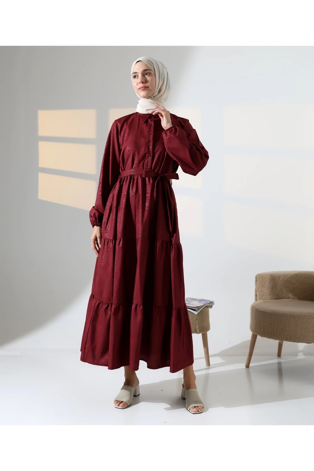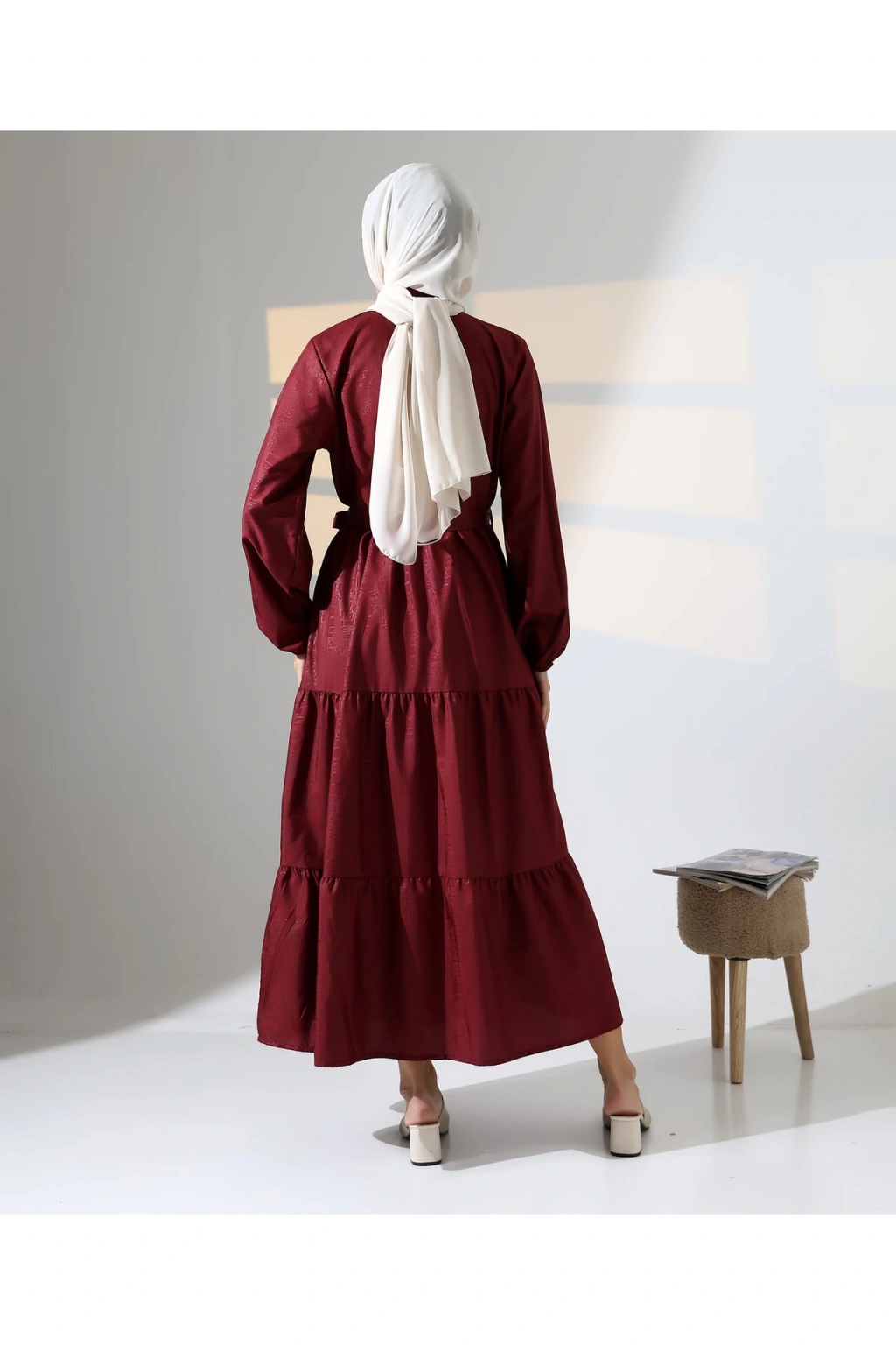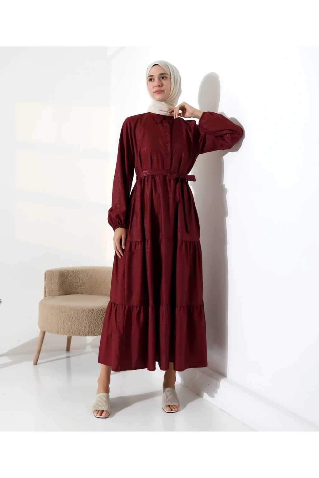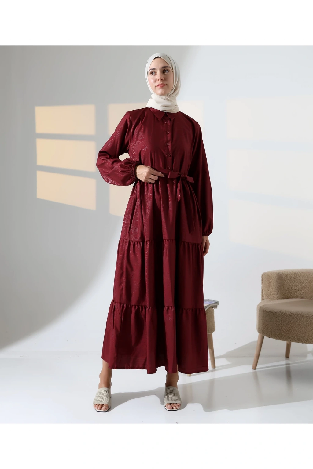 Kadın 100% Pamuk Viskon Desenli Bordo Tesettür Elbise