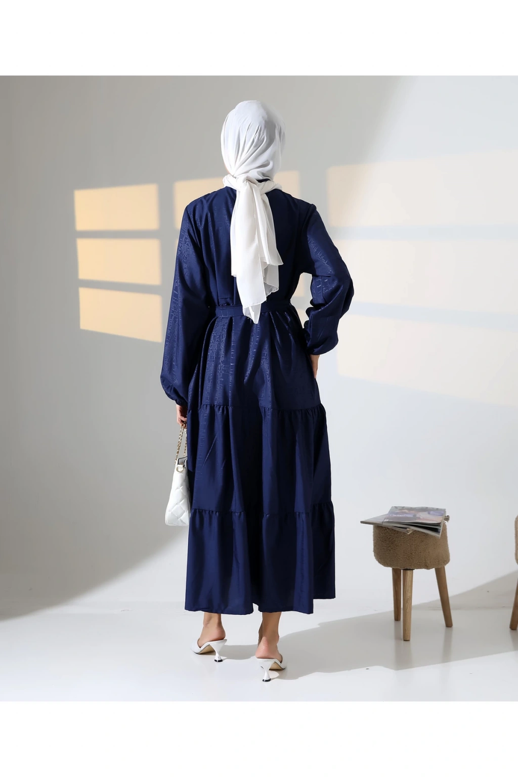 Kadın 100% Pamuk Viskon Desenli Lacivert Tesettür Elbise
