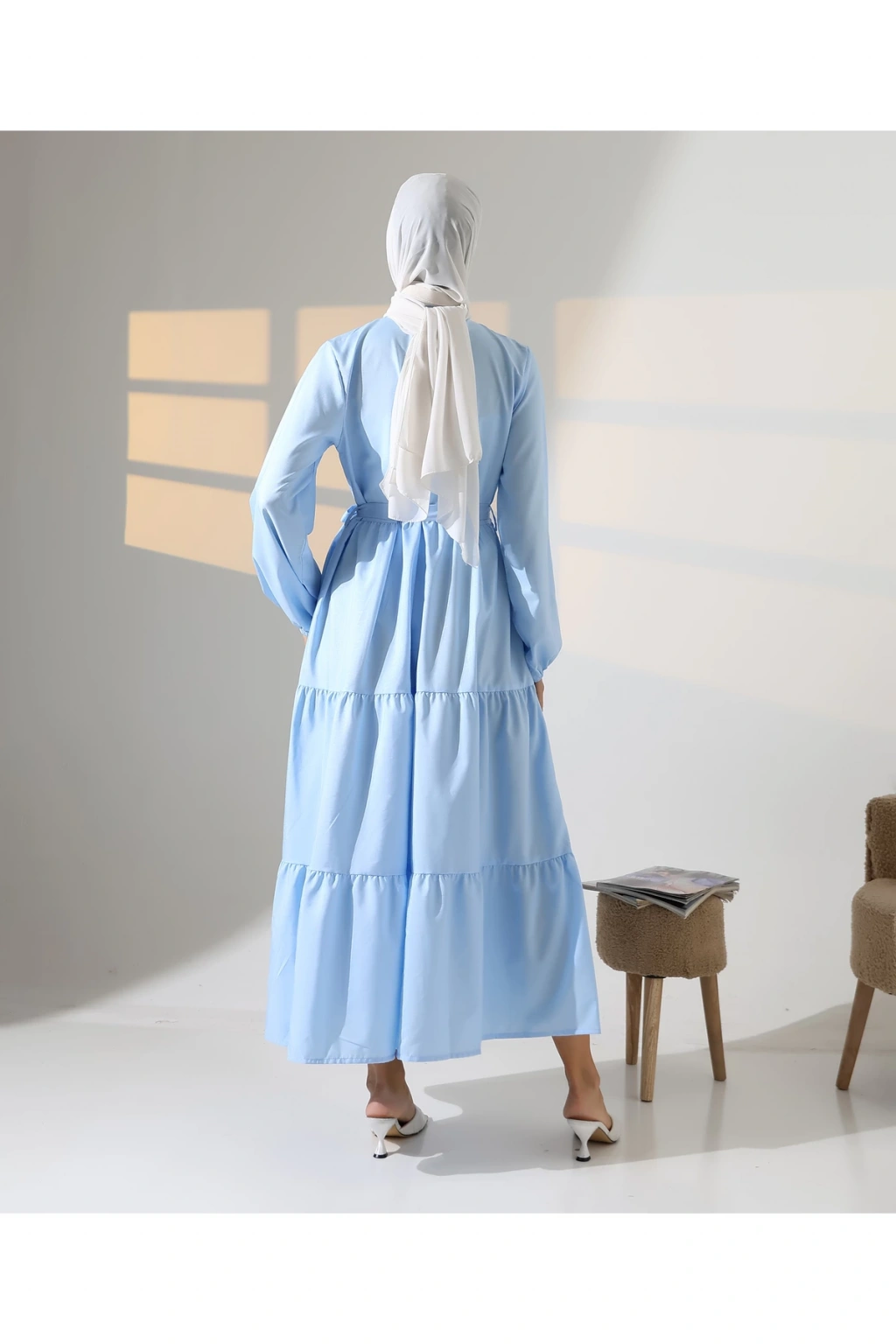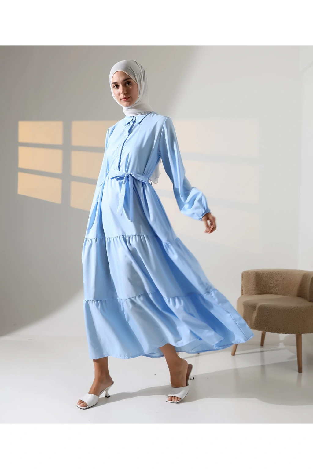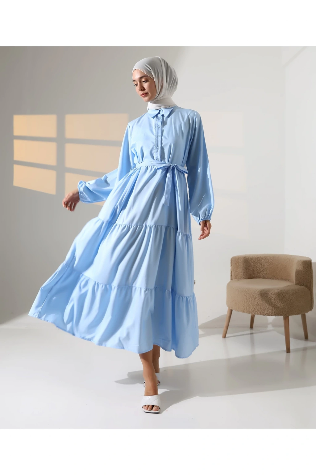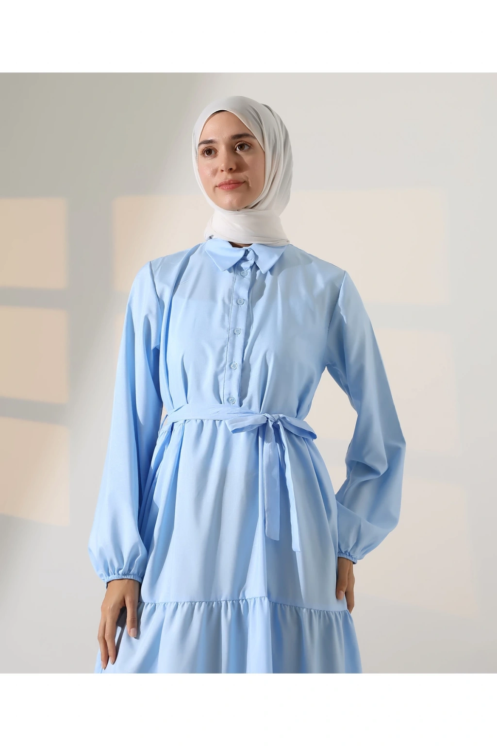 Mihran Butik’in kadın %100 pamuk viskon desenli tesettür elbisesi, doğal dokusu ve zarif görünümüyle günlük kombinlerden özel gün şıklığına kadar geniş bir kullanım alanı sunar.; Nefes alabilir pamuk viskon kumaşı sayesinde dört mevsim rahatlıkla tercih edilebilir.; Hakim yaka detayı, bilekleri lastikli yapısı ve önden düğme kapamalı tasarımıyla şıklığı fonksiyonellikle buluşturur.; Çiçek desenli yapısı elbiseye zarif bir görünüm katarken, S-M ve L-XL olmak üzere iki farklı beden seçeneği sunar.; S-M beden için göğüs ölçüsü 50 cm, uzunluk 140 cm; L-XL beden için ise göğüs ölçüsü 54 cm, uzunluk 140 cm’dir.; Beden önerisi olarak S-M beden 55-70 kg arası; L-XL beden ise 71-90 kg arası kullanıcılar için idealdir.; Regular kalıbıyla rahat ve modern bir duruş sunan elbise, mavi ve turuncu renk alternatifleriyle satışa sunulmaktadır.; Fotoğraftaki mankenin boyu 175 cm, göğüs 84 cm, bel 63 cm ve basen 90 cm olup, üzerindeki beden S-M'dir.; Stüdyo çekimlerinde renkler ışık farklılığından dolayı değişiklik gösterebilir.