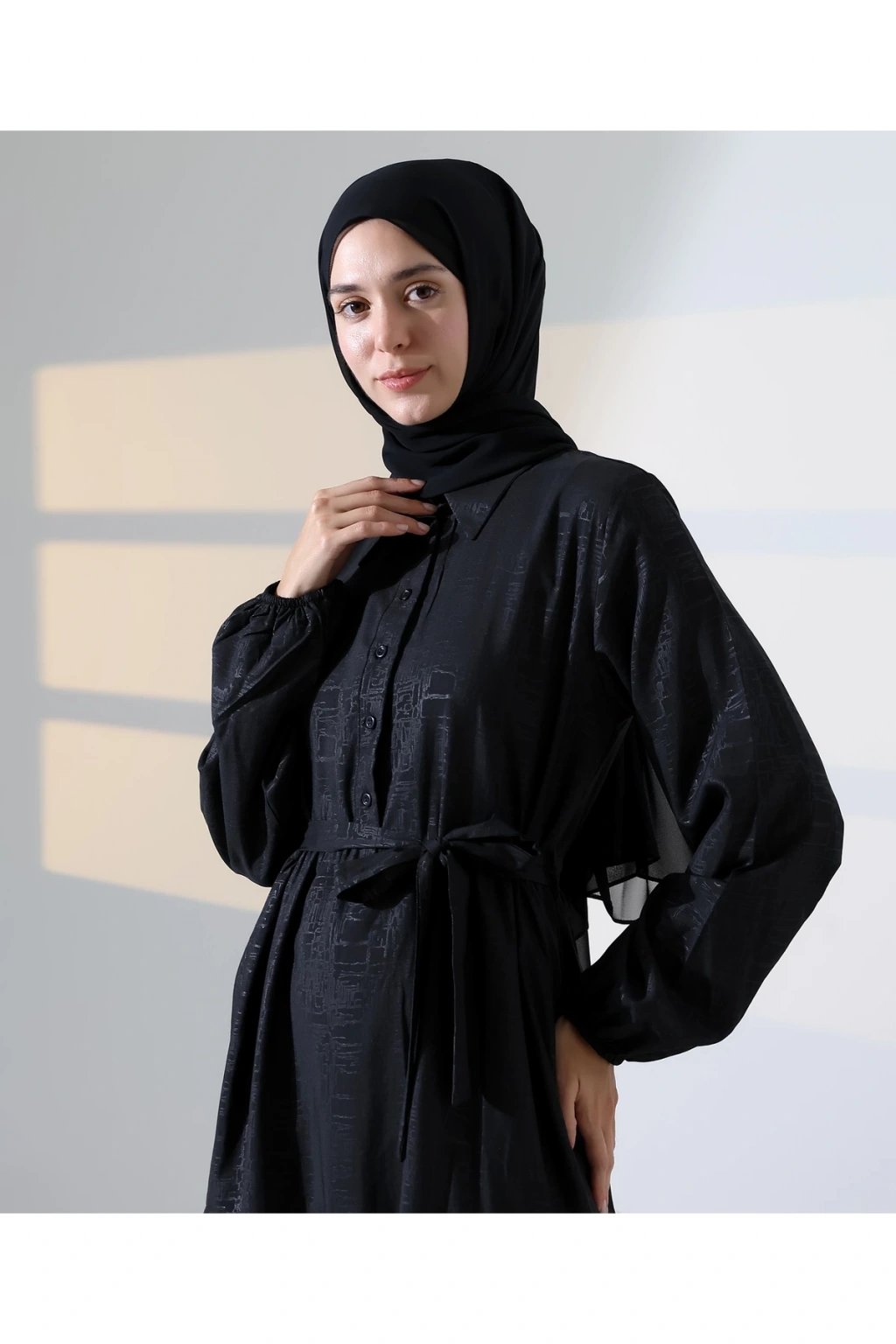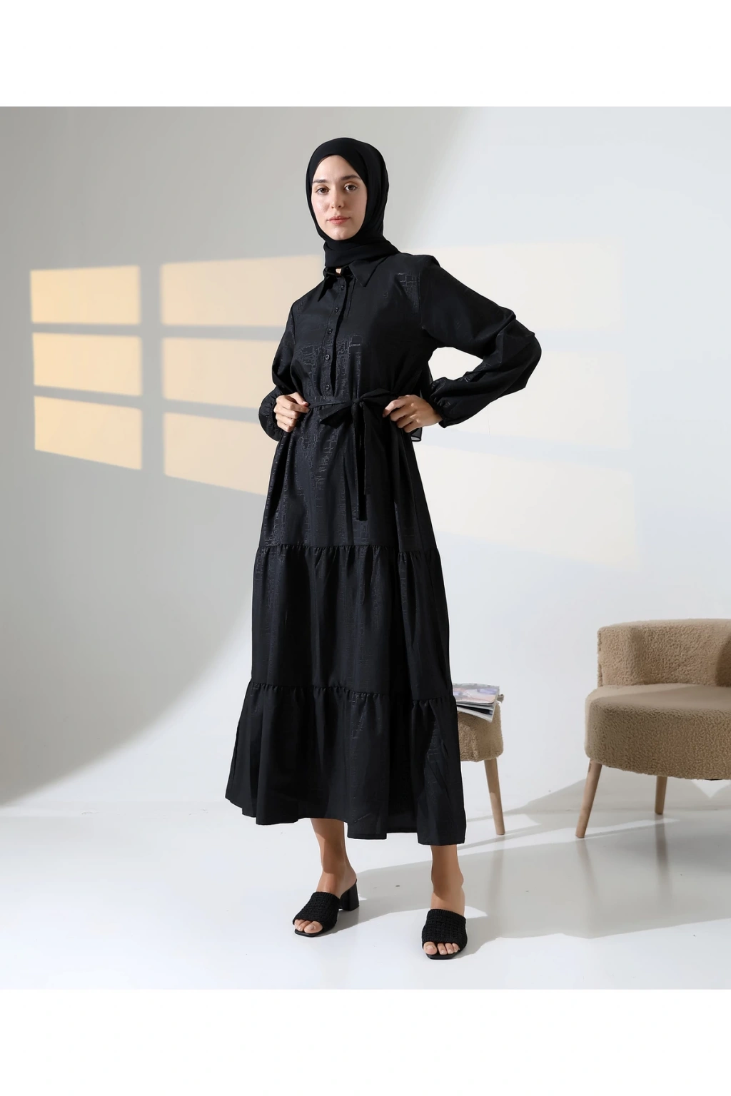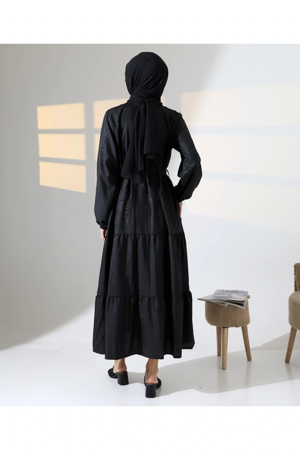 Kadın 100% Pamuk Viskon Desenli Siyah Tesettür Elbise