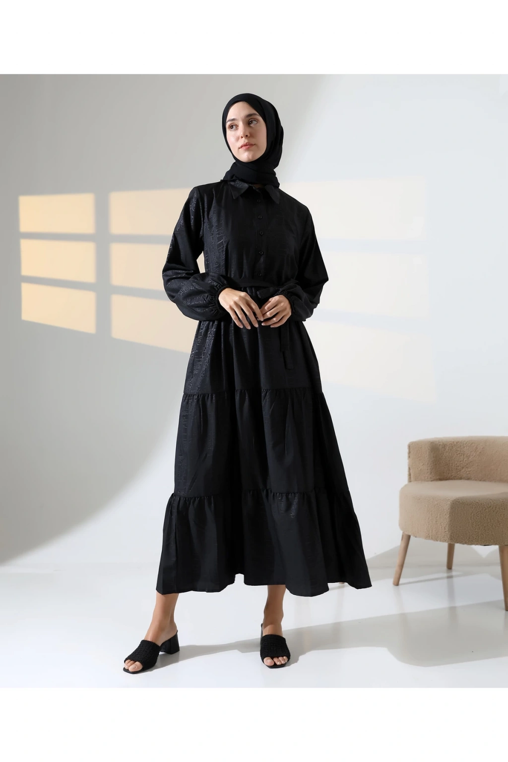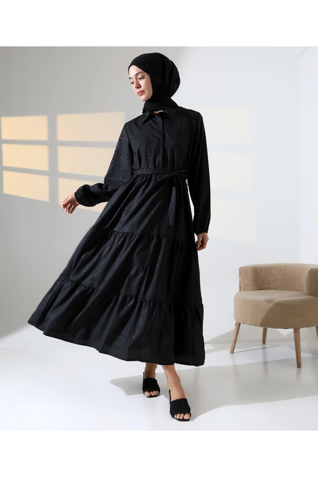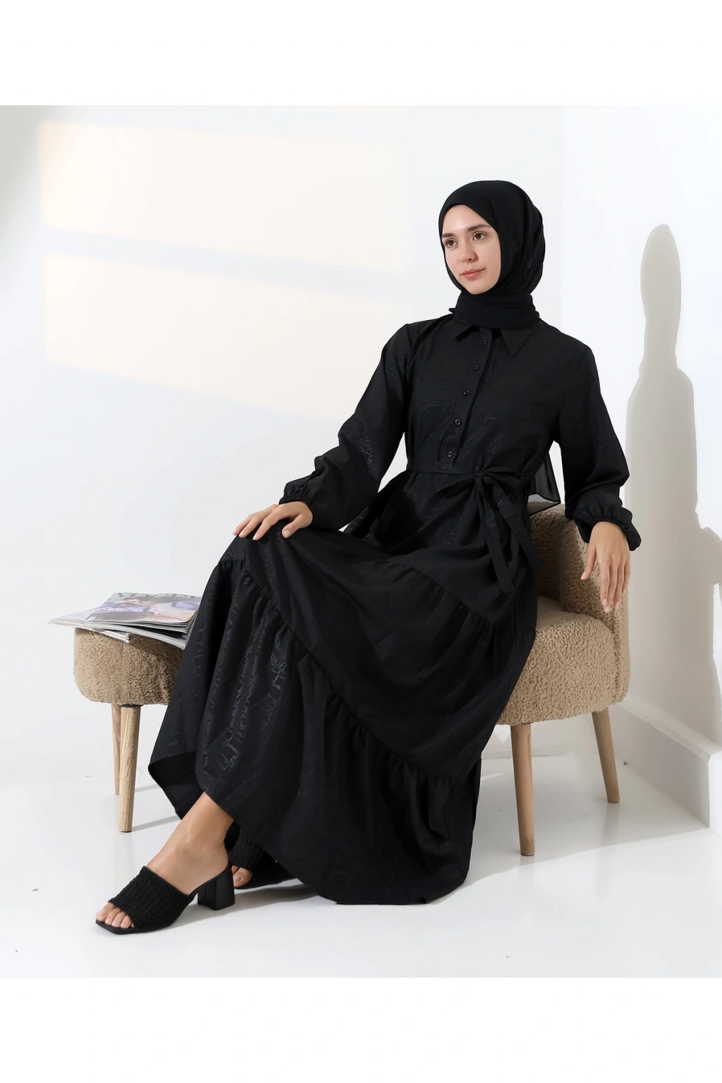 Kadın 100% Pamuk Viskon Desenli Siyah Tesettür Elbise