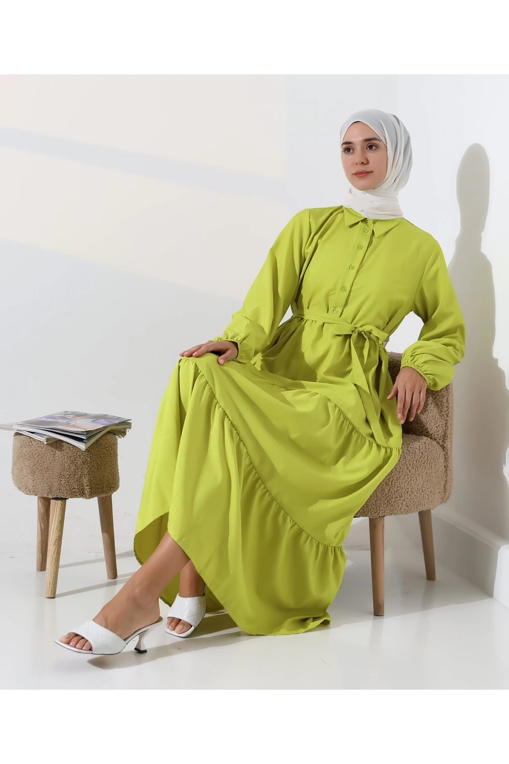 Mihran Butik’in kadın %100 pamuk viskon desenli tesettür elbisesi, doğal dokusu ve zarif görünümüyle günlük kombinlerden özel gün şıklığına kadar geniş bir kullanım alanı sunar.; Nefes alabilir pamuk viskon kumaşı sayesinde dört mevsim rahatlıkla tercih edilebilir.; Hakim yaka detayı, bilekleri lastikli yapısı ve önden düğme kapamalı tasarımıyla şıklığı fonksiyonellikle buluşturur.; Çiçek desenli yapısı elbiseye zarif bir görünüm katarken, S-M ve L-XL olmak üzere iki farklı beden seçeneği sunar.; S-M beden için göğüs ölçüsü 50 cm, uzunluk 140 cm; L-XL beden için ise göğüs ölçüsü 54 cm, uzunluk 140 cm’dir.; Beden önerisi olarak S-M beden 55-70 kg arası; L-XL beden ise 71-90 kg arası kullanıcılar için idealdir.; Regular kalıbıyla rahat ve modern bir duruş sunan elbise, mavi ve turuncu renk alternatifleriyle satışa sunulmaktadır.; Fotoğraftaki mankenin boyu 175 cm, göğüs 84 cm, bel 63 cm ve basen 90 cm olup, üzerindeki beden S-M'dir.; Stüdyo çekimlerinde renkler ışık farklılığından dolayı değişiklik gösterebilir.