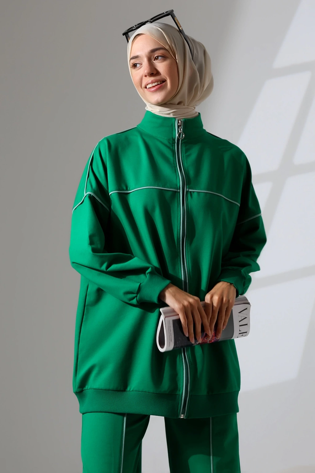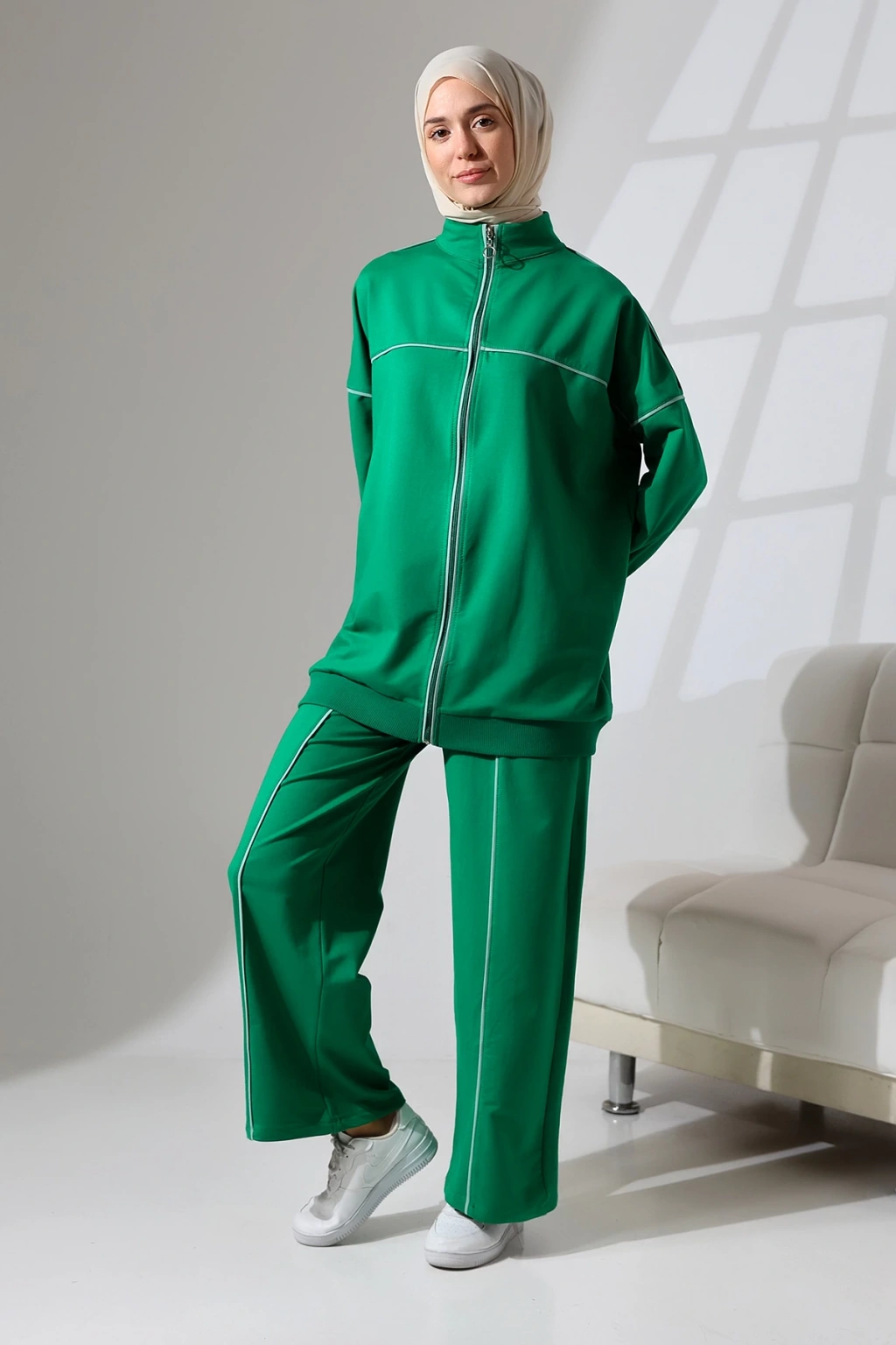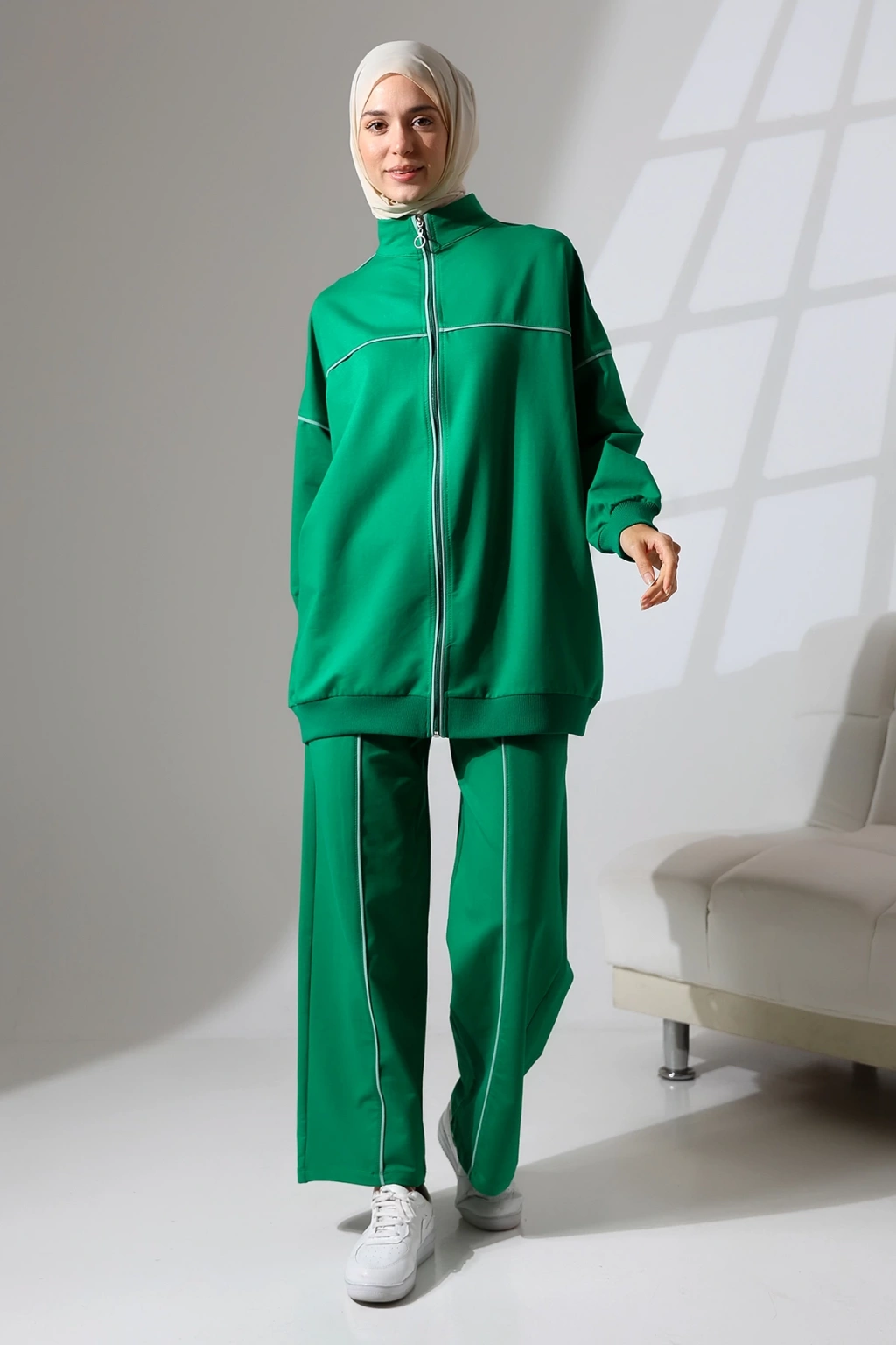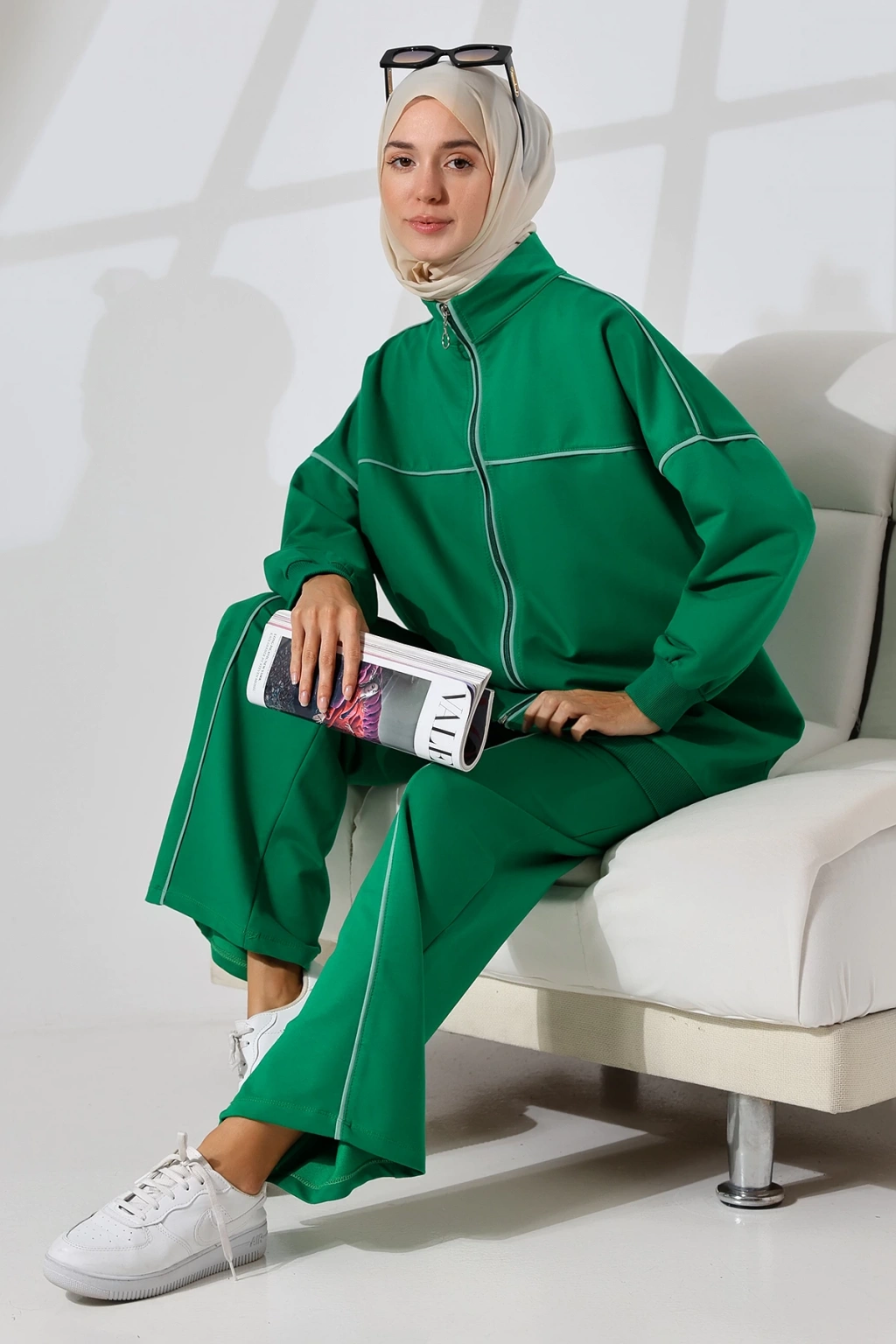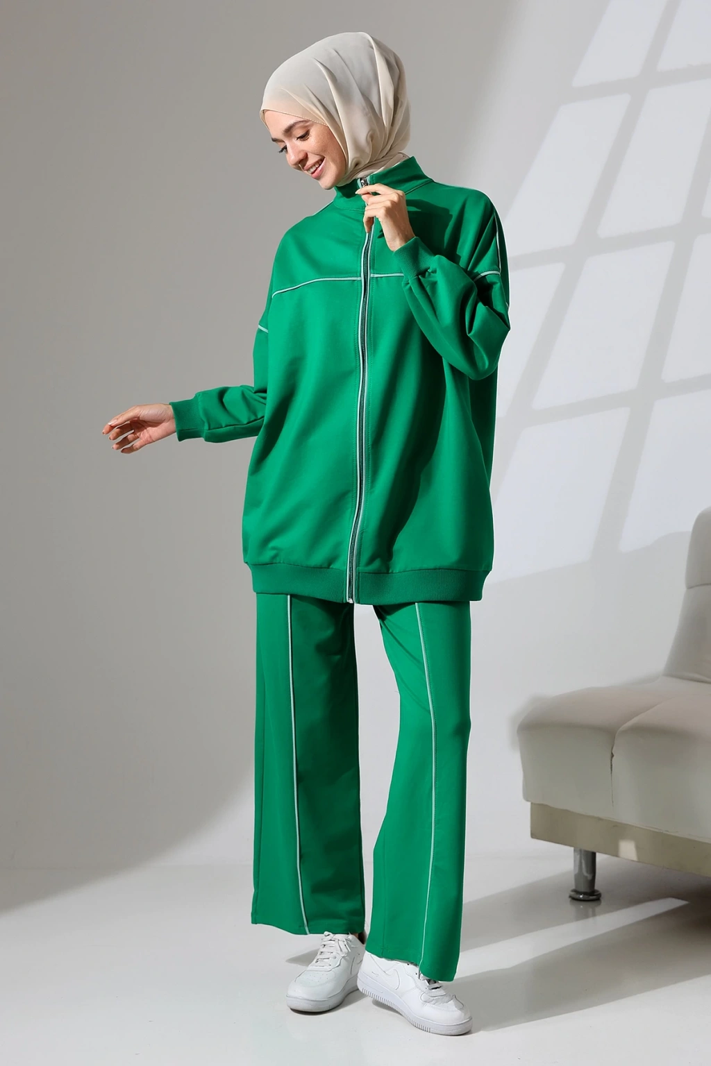 • Kadın Mevsimlik Penye Alt Üst Spor ve Rahat Tesettür Takım • Mihran Butik'in rahat ve şık 2 iplik penye kumaş takımı, günlük yaşamınıza konfor ve stil katıyor. ; %80 pamuk, %15 polyester ve %5 likra karışımından üretilen bu takım, her mevsim giyilebilir özelliğiyle gardırobunuzun vazgeçilmezi olacak. ; • Beden Önerisi: 55-62 kg S Beden, 63-70 kg M Beden, 71-80 kg L Beden, 81-90 kg XL Beden • Ürün Özellikleri: Kumaş Detayı: %80 Pamuk, %15 Polyester, %5 Likra, Beden Seçenekleri: S, M, L, XL Mevsim: 4 Mevsim giyilebilir, Kalıp: Rahat kesim, Takım Detayı: Pantolon ve üst olarak iki parçadan oluşur, Pantolon Özellikleri: Cepsiz, beli lastikli, geniş paça, Üst Özellikleri: Dik yaka, fermuarlı, Detaylar: Alt ve üst biyeli detaylar • Manken Ölçüleri: Boy: 175 cm Göğüs: 84 cm Bel: 63 cm Basen: 90 cm Mankenin Giydiği Beden: M • Renk Seçenekleri: Kahverengi, Lacivert, Siyah, Gül Kurusu, Benetton Yeşili, Turuncu, Haki, Saks Mavisi, Mint Yeşili, Siyah. ; • Teknik Bilgileri: S Beden: Göğüs: 62cm, Bel: 63cm, Boy 80cm, M Beden: Göğüs: 64cm, Bel: 65cm, Boy: 781cm, L Beden: Göğüs: 66cm, Bel: 67cm, Boy: 82cm, XL Beden: Göğüs: 68cm, Bel: 69cm, Boy: 83cm • Mihran Butik'in bu rahat ve şık takımıyla hem rahatlığınızı ön planda tutun hem de tarzınızı yansıtın. ; Geniş renk ve beden seçenekleriyle her zevke hitap eden bu takım, gardırobunuzda mutlaka yer almalı! • Ürününüzü daha uzun kullanabilmeniz ve ürününüze uygun bakım yapabilmeniz için lütfen ürün içerisindeki yıkama talimatlarına uyunuz. ; • Stüdyo çekimlerinde renkler ışık farklılığından dolayı değişiklik gösterebilir.;