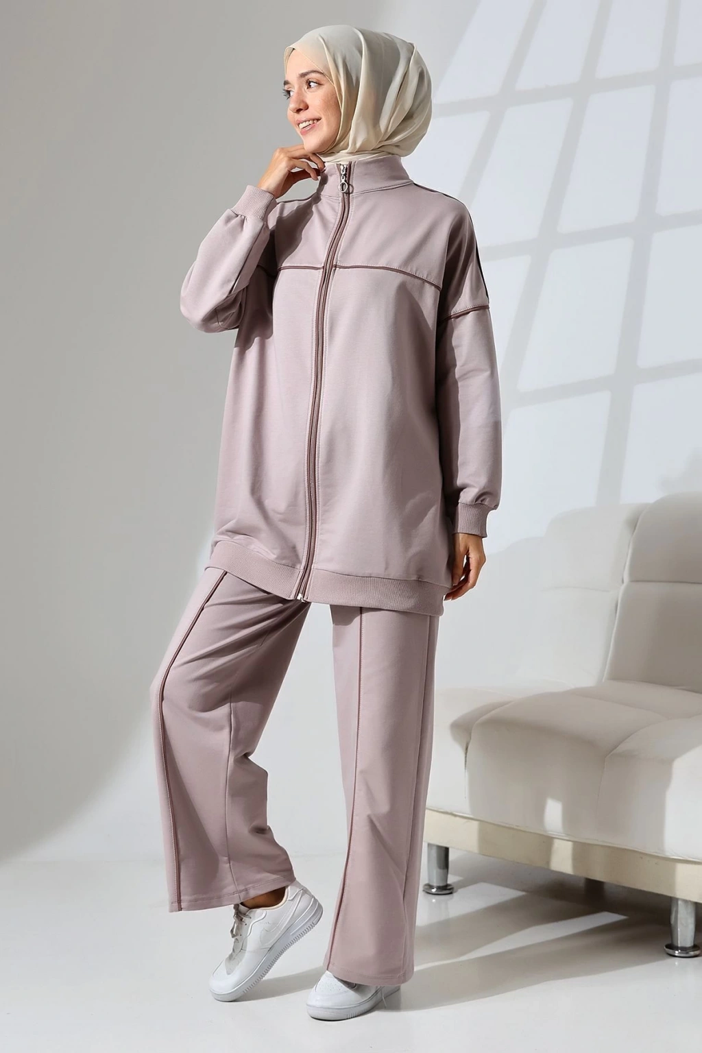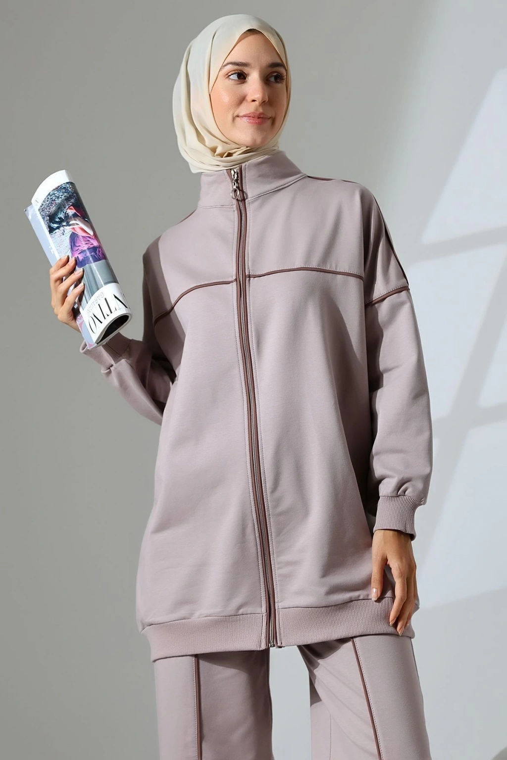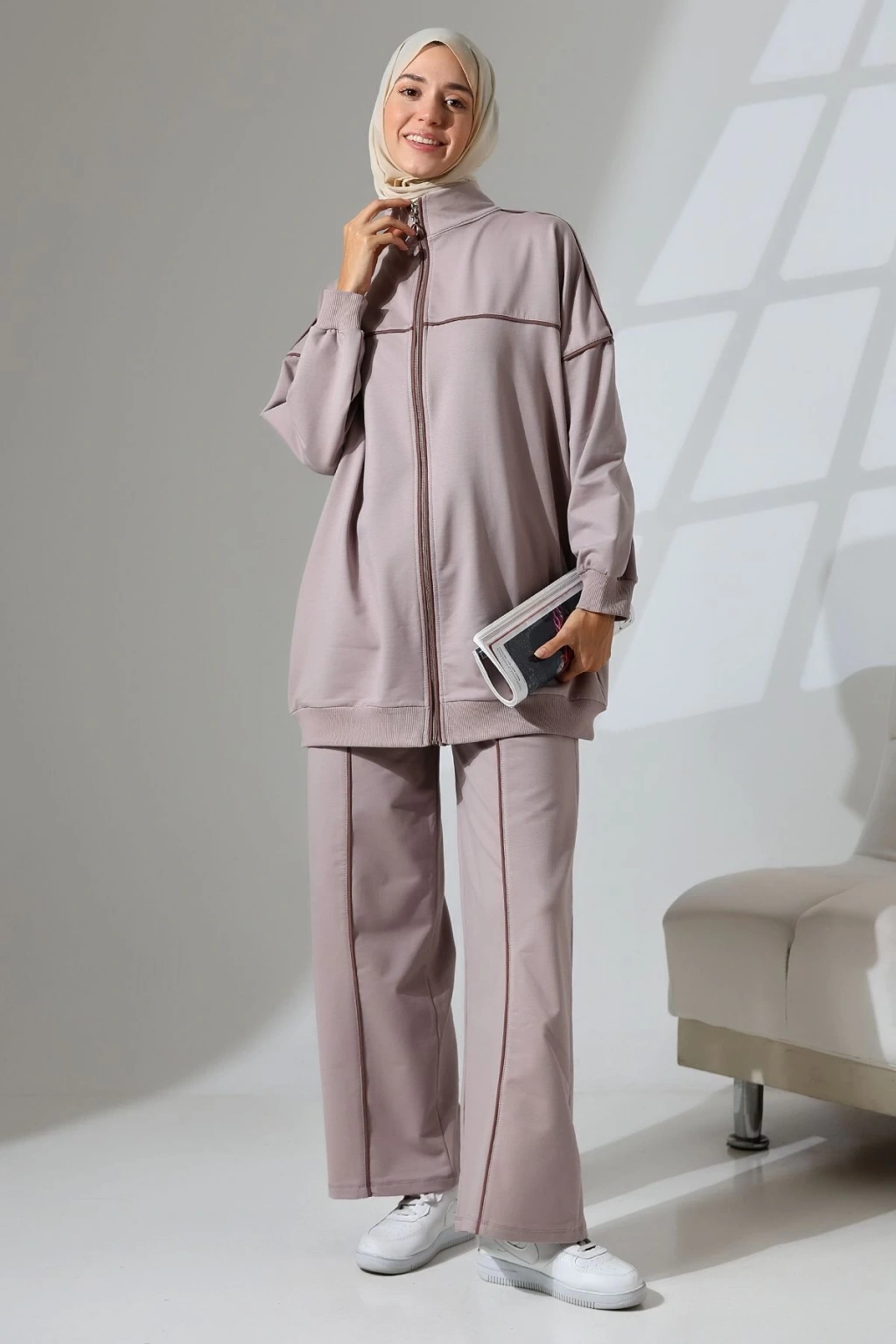 Kadın Gül Kursu Mevsimlik Penye Alt Üst Spor ve Rahat Tesettür Takım