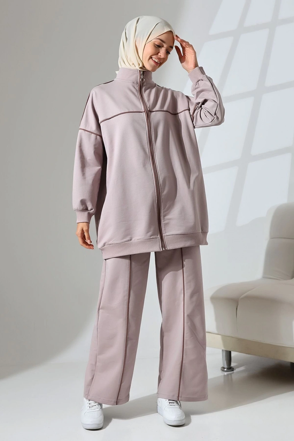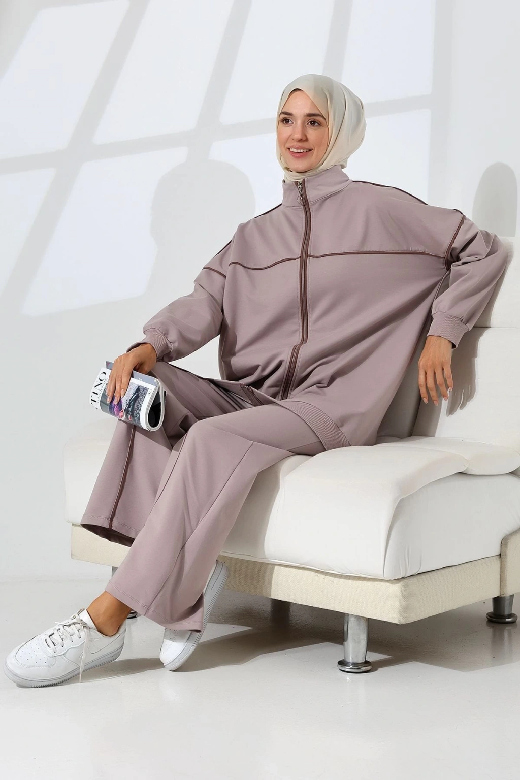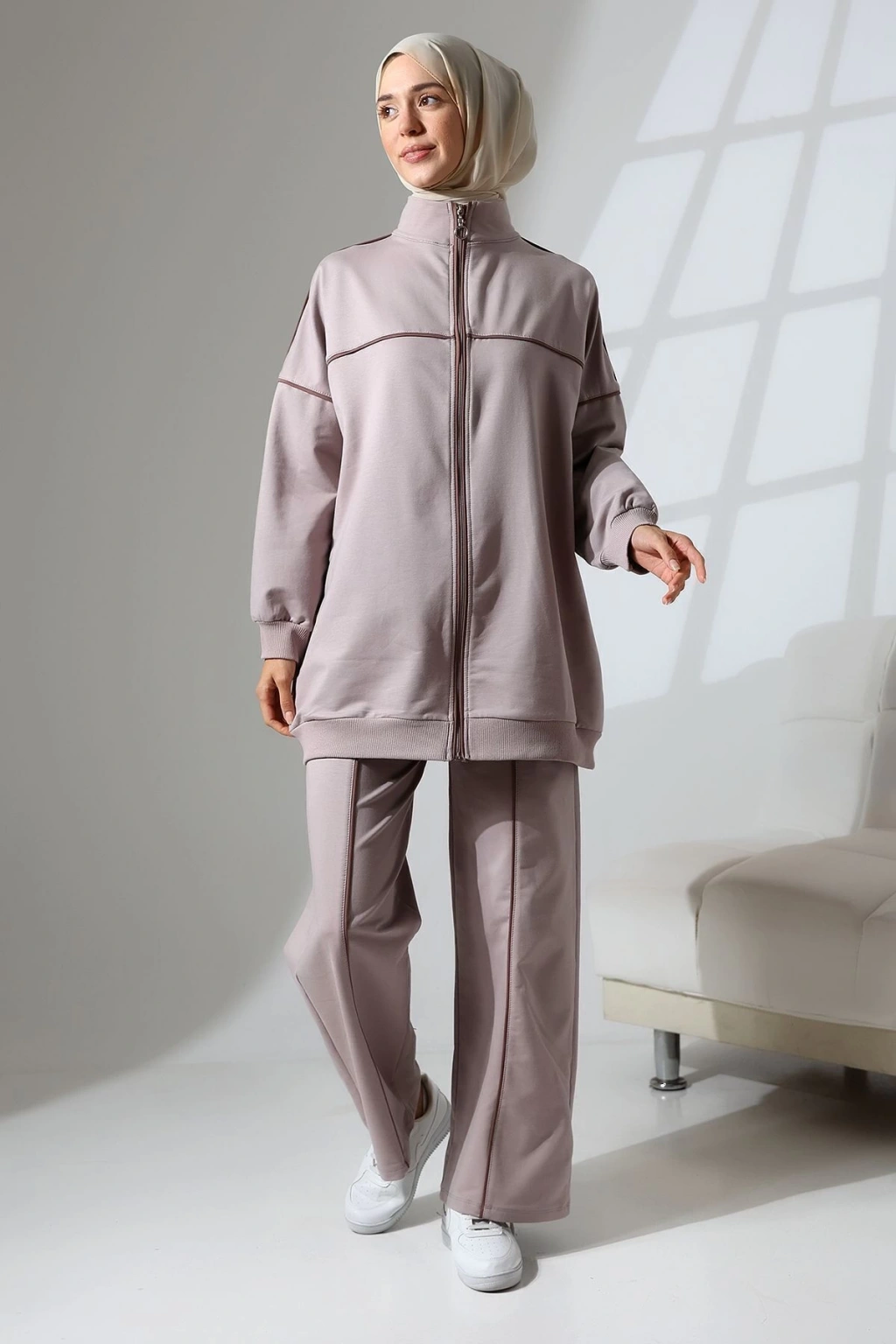 Kadın Gül Kursu Mevsimlik Penye Alt Üst Spor ve Rahat Tesettür Takım