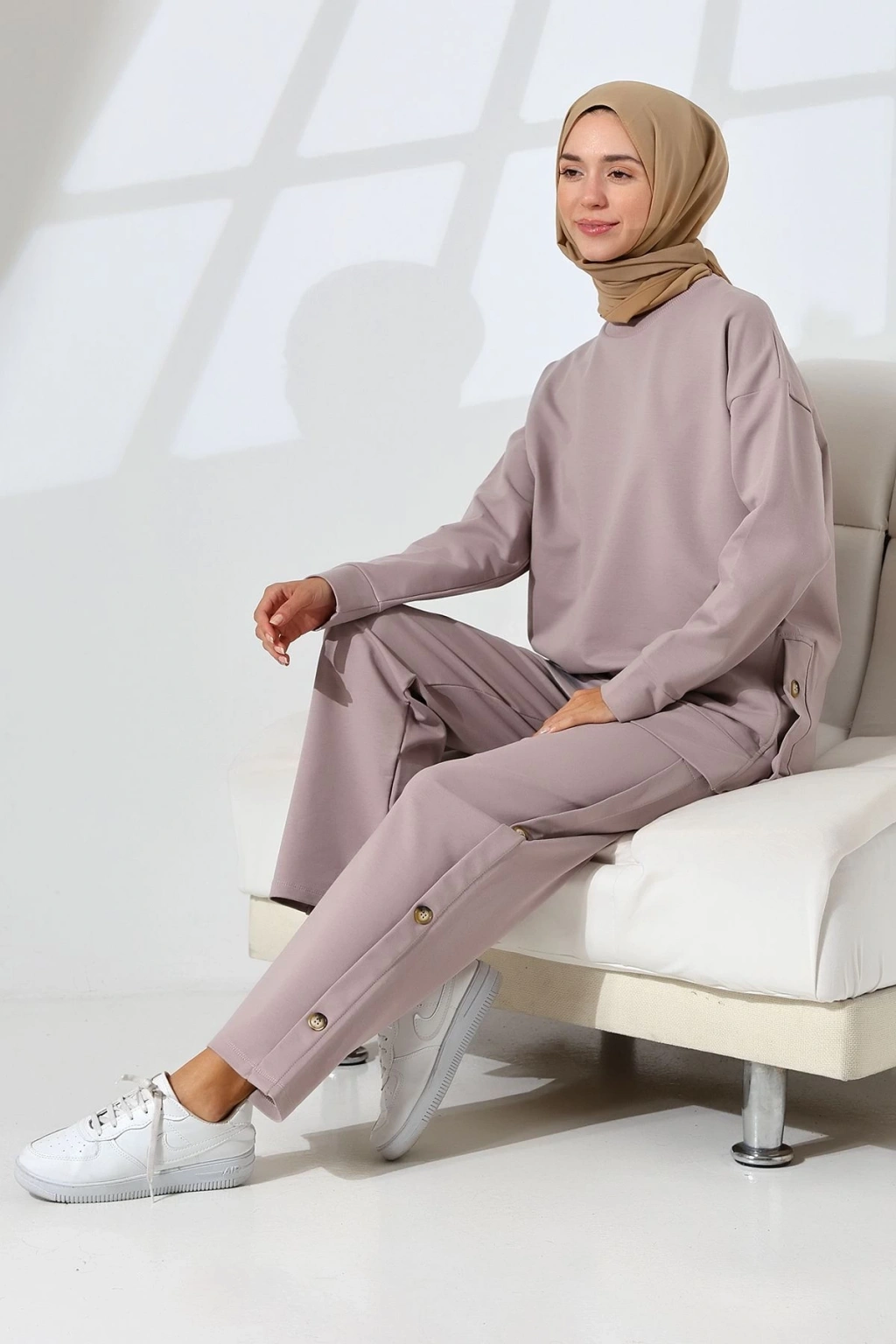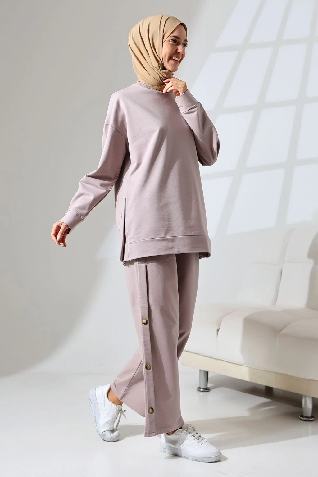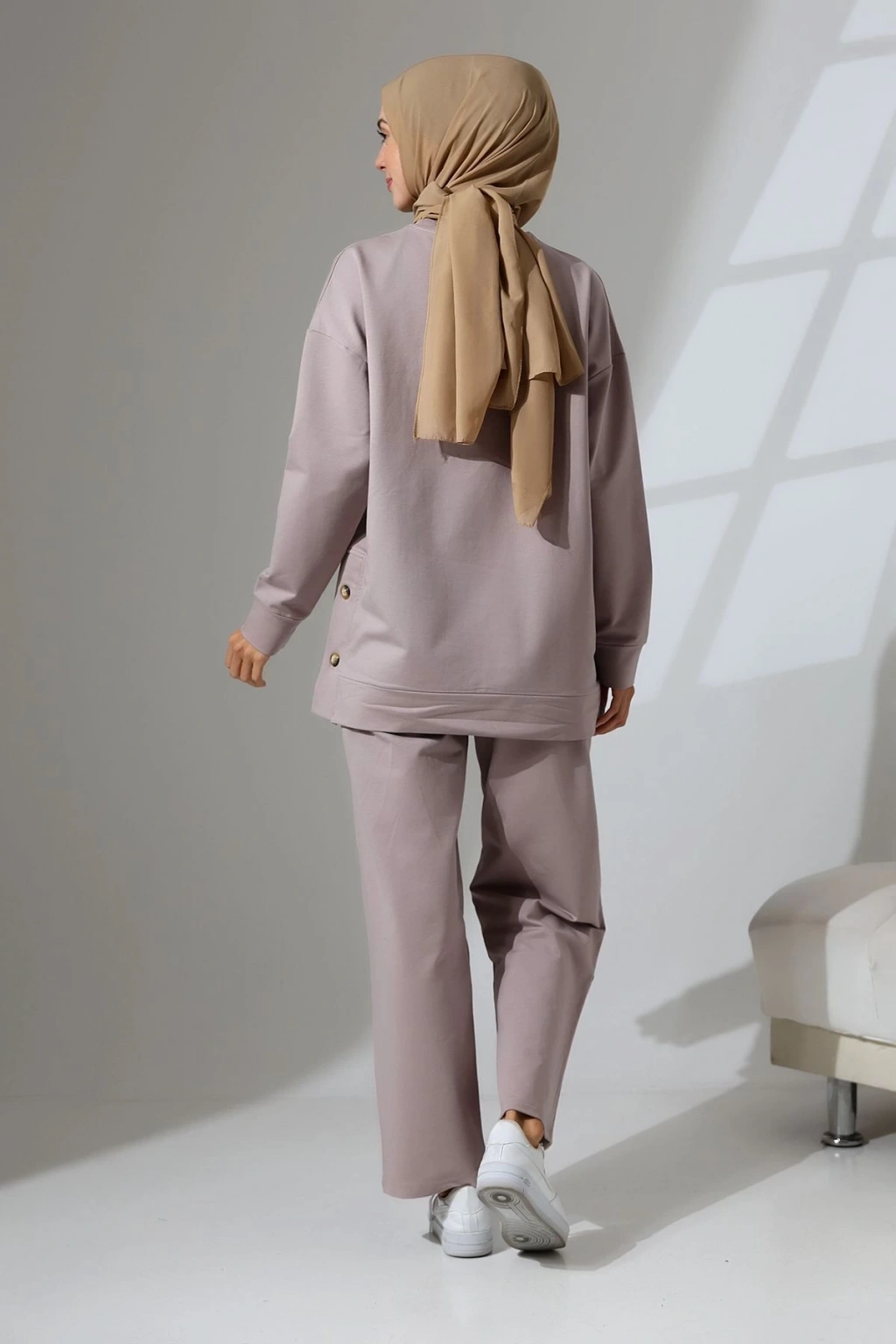 Kadın Gül Kurusu Mevsimlik Penye Alt Üst Spor ve Rahat Tesettür Takım