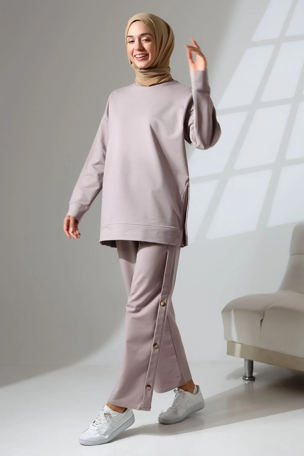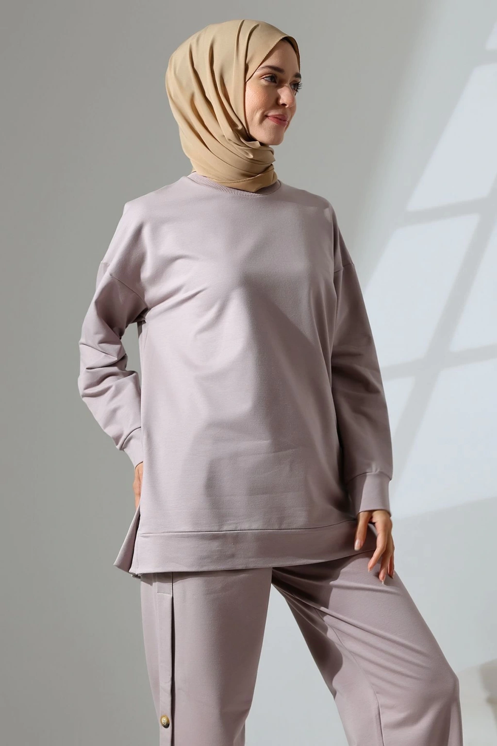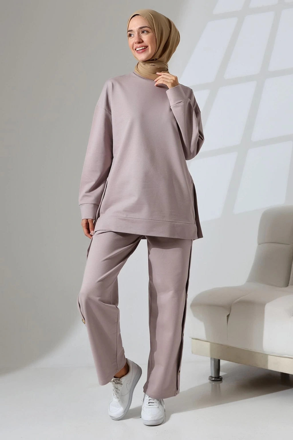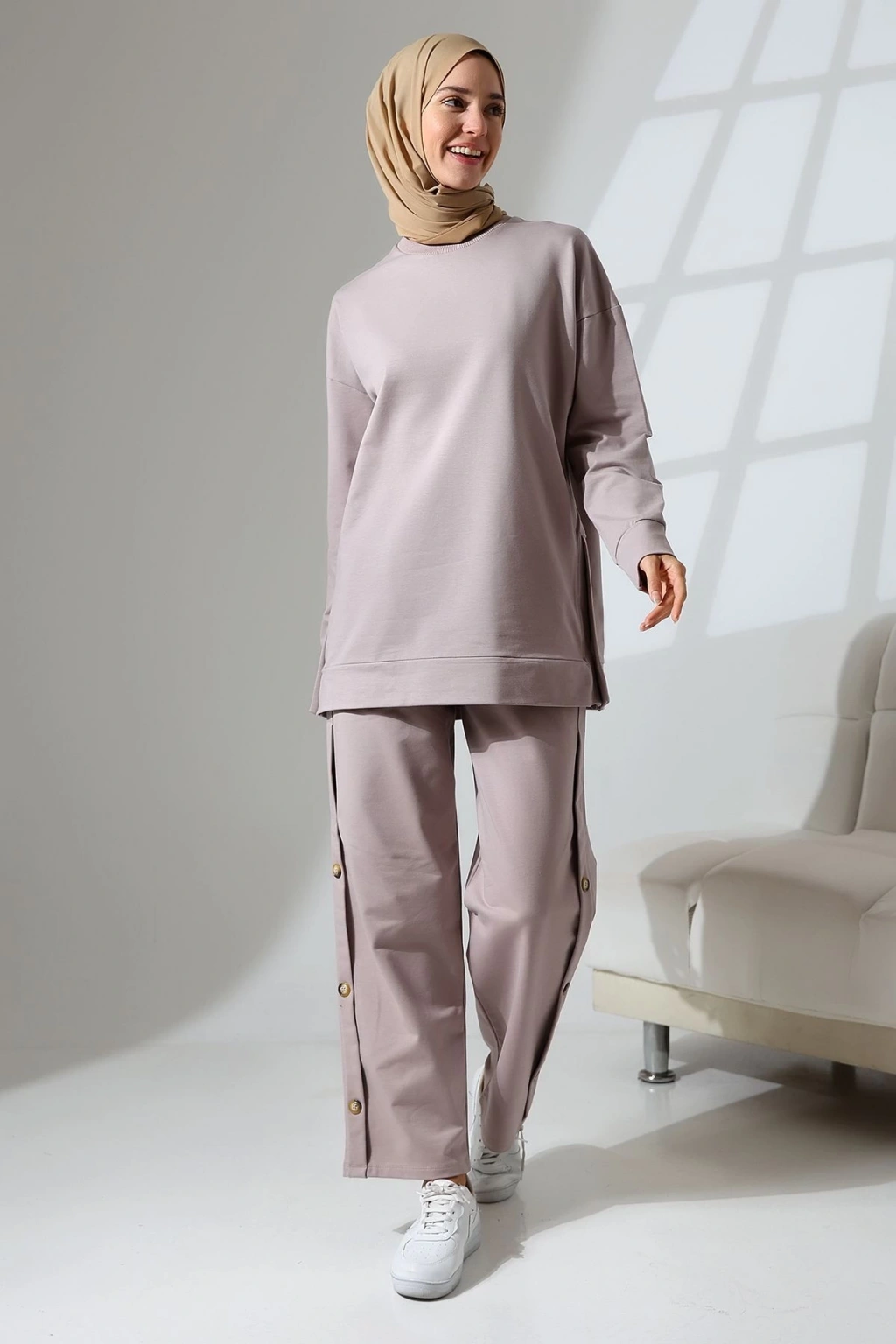 Kadın Gül Kurusu Mevsimlik Penye Alt Üst Spor ve Rahat Tesettür Takım