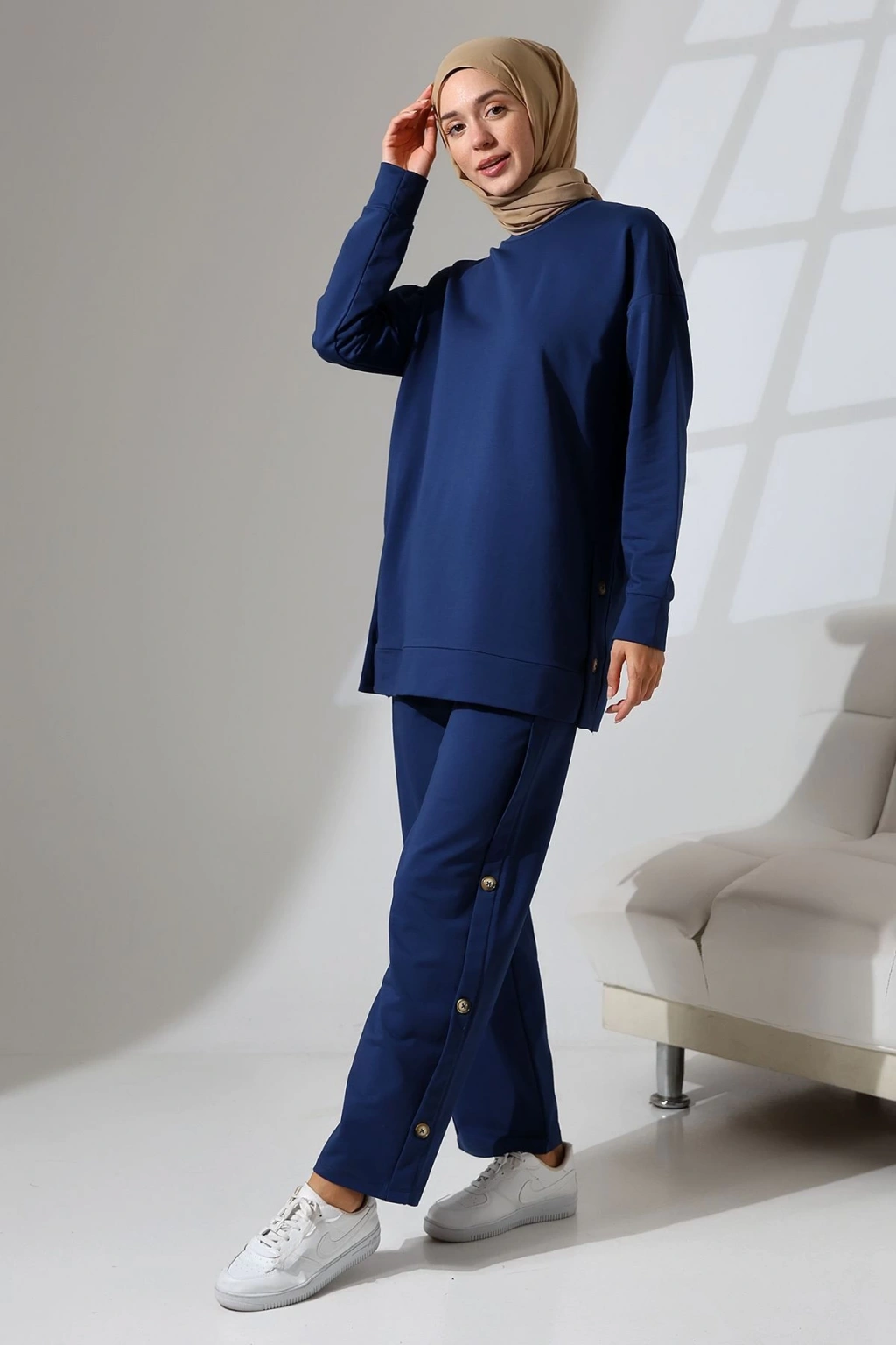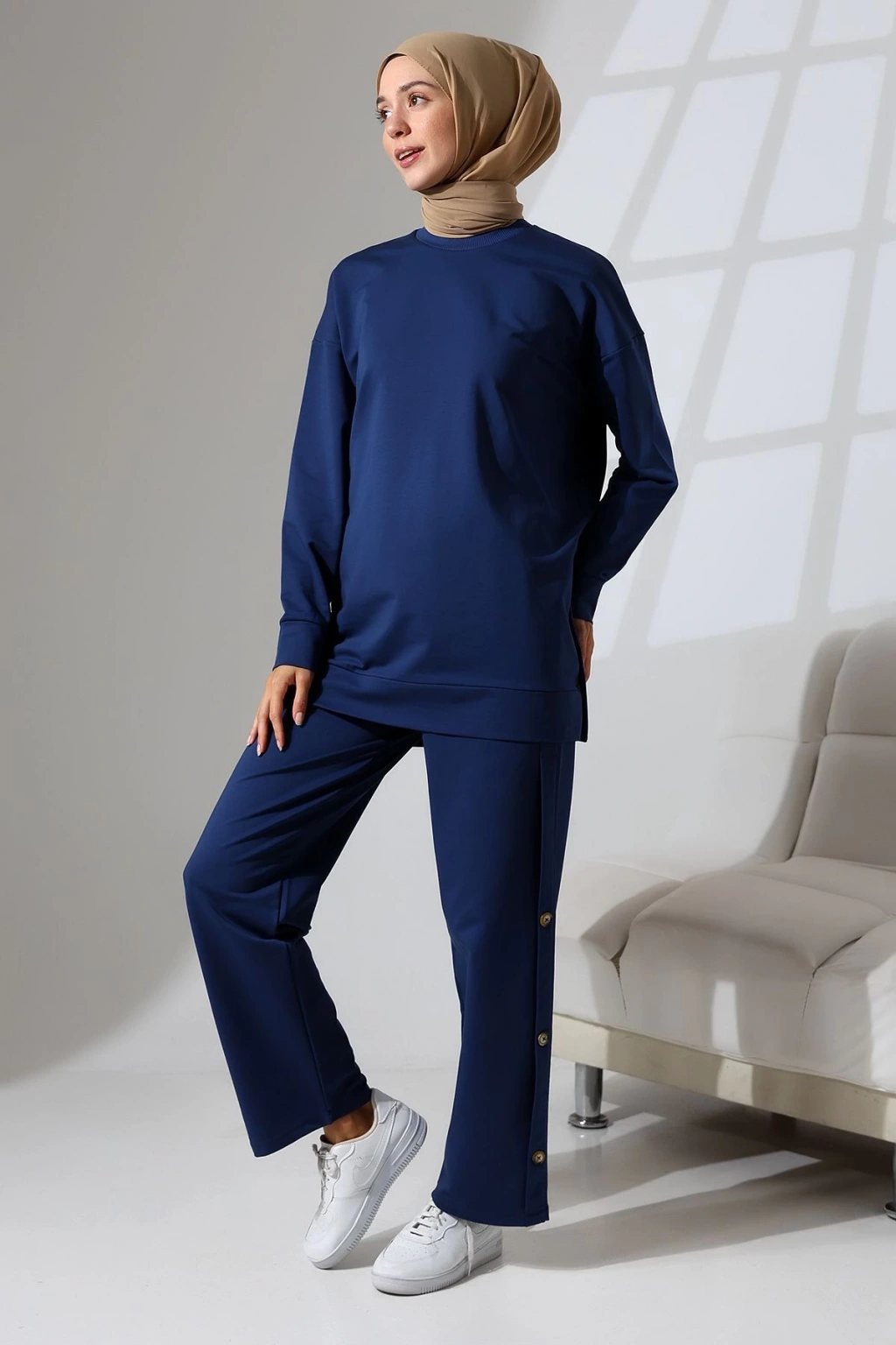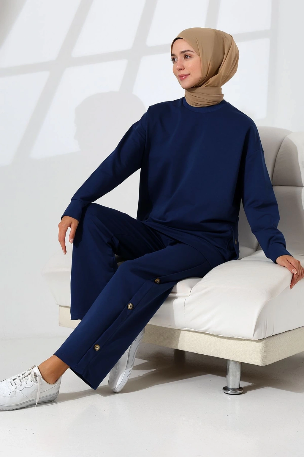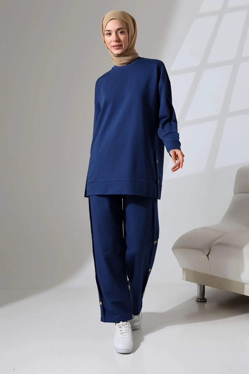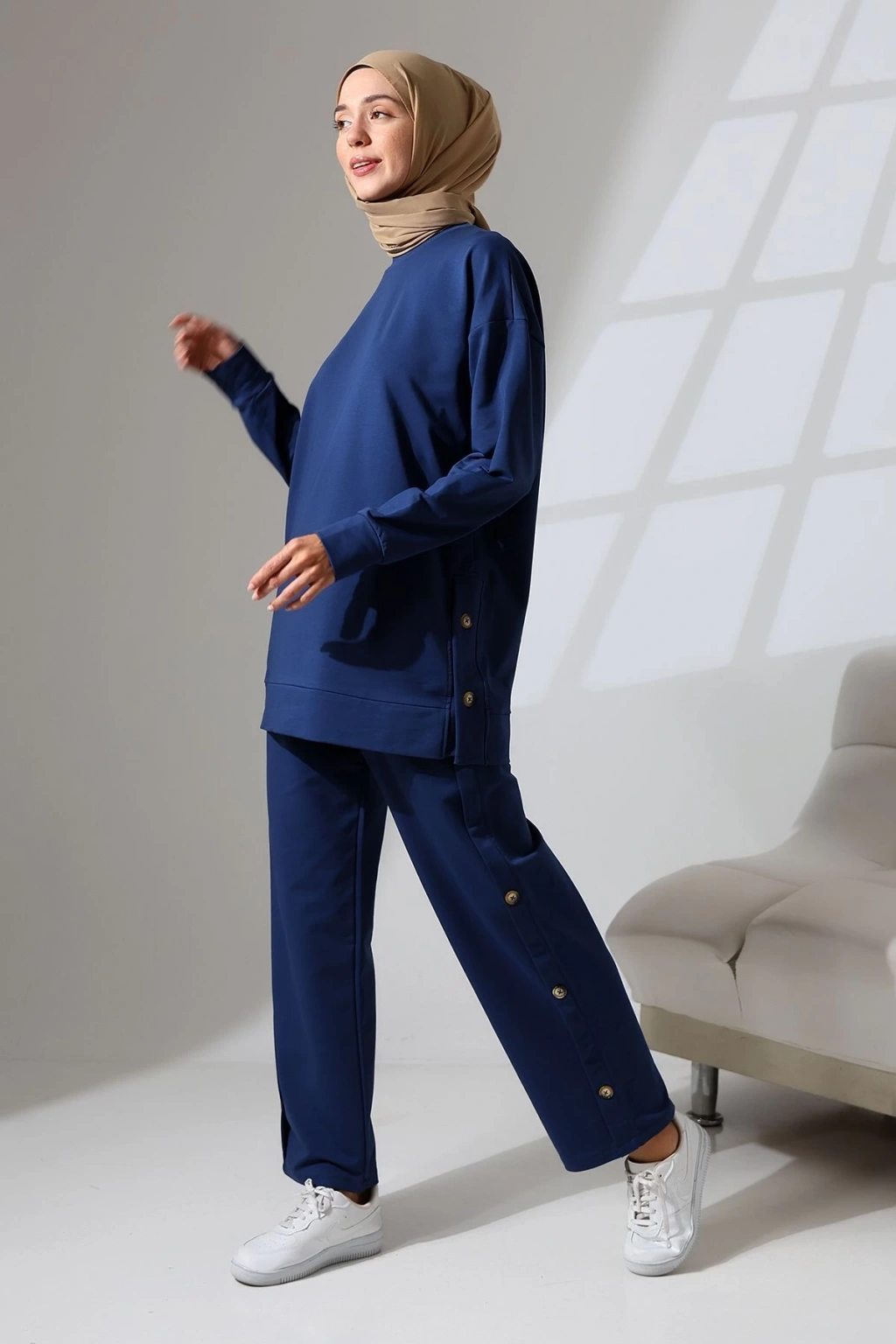 • Kadın Mevsimlik Penye Alt Üst Spor ve Rahat Tesettür Takım • Mihran Butik 'ten stil sahibi kadınlar için özel olarak tasarlanmış 2 İplik Penye Kumaş Üst Spor ve Rahat Tesettür Takım ile her mevsim şıklığı yakalayın! %80 pamuk, %15 polyester ve %5 likra içeriğiyle rahatlık ve esneklik sunan bu takım, dört mevsim giyilebilir özelliğiyle dolabınızın vazgeçilmezi olacak. ; • Üst ve pantolon yandan düğmelidir. ; • Beden Önerisi: 55-62 kg S Beden, 63-70 kg M Beden, 71-80 kg L Beden, 81-90 kg XL Beden • Ürün Özellikleri: Kumaş Türü: Yumuşak ve dayanıklı 2 iplik penye, Kumaş İçeriği: %80 pamuk, %15 polyester, %5 likra, Beden Seçenekleri: S, M, L, XL, Mevsim: 4 mevsim giyilebilir, Rahat Kalıp: Gün boyu konfor sağlayan rahat kesim, Parçalar: Pantolon ve üst olmak üzere iki parçalı takım, Pantolon: Cepli, beli lastikli ve geniş paça tasarımı, Üst: Bisiklet yaka, çiçek nakış detayları ve yan yırtmaç • Model Bilgileri: Boy: 175 cm, Göğüs: 84 cm, Bel: 63 cm, Basen: 90 cm, Modelin Giydiği Beden: M • Teknik Bilgileri: S Beden: Göğüs: 56cm, Bel: 57cm, Boy 78cm, M Beden: Göğüs: 58cm, Bel: 58cm, Boy: 79cm, L Beden: Göğüs: 60cm, Bel: 60cm, Boy: 80cm, XL Beden: Göğüs: 62cm, Bel: 62cm, Boy: 81cm • Renk Seçenekleri: Lacivert, Siyah, Kahverengi, Gül Kurusu, Camel • Mihran Butik Kalitesi: Mihran Butik kalitesiyle hazırlanan bu takım hem şıklığı hem de rahatlığı bir arada sunar. ; Günlük kullanımda olduğu kadar özel günlerde de rahatlıkla tercih edebilirsiniz. ; • Neden Mihran Butik 2 İplik Penye Mevsimlik Penye Alt Üst Spor Tesettür Takım? %80 pamuk içeriğiyle cildinize dost, Esnek yapısıyla hareket özgürlüğü sağlar, Çeşitli beden ve renk seçenekleriyle her tarza hitap eder, Detaylı işçiliğiyle fark yaratır. ; • Ürününüzü daha uzun kullanabilmeniz ve ürününüze uygun bakım yapabilmeniz için lütfen ürün içerisindeki yıkama talimatlarına uyunuz. ; • Stüdyo çekimlerinde renkler ışık farklılığından dolayı değişiklik gösterebilir.;