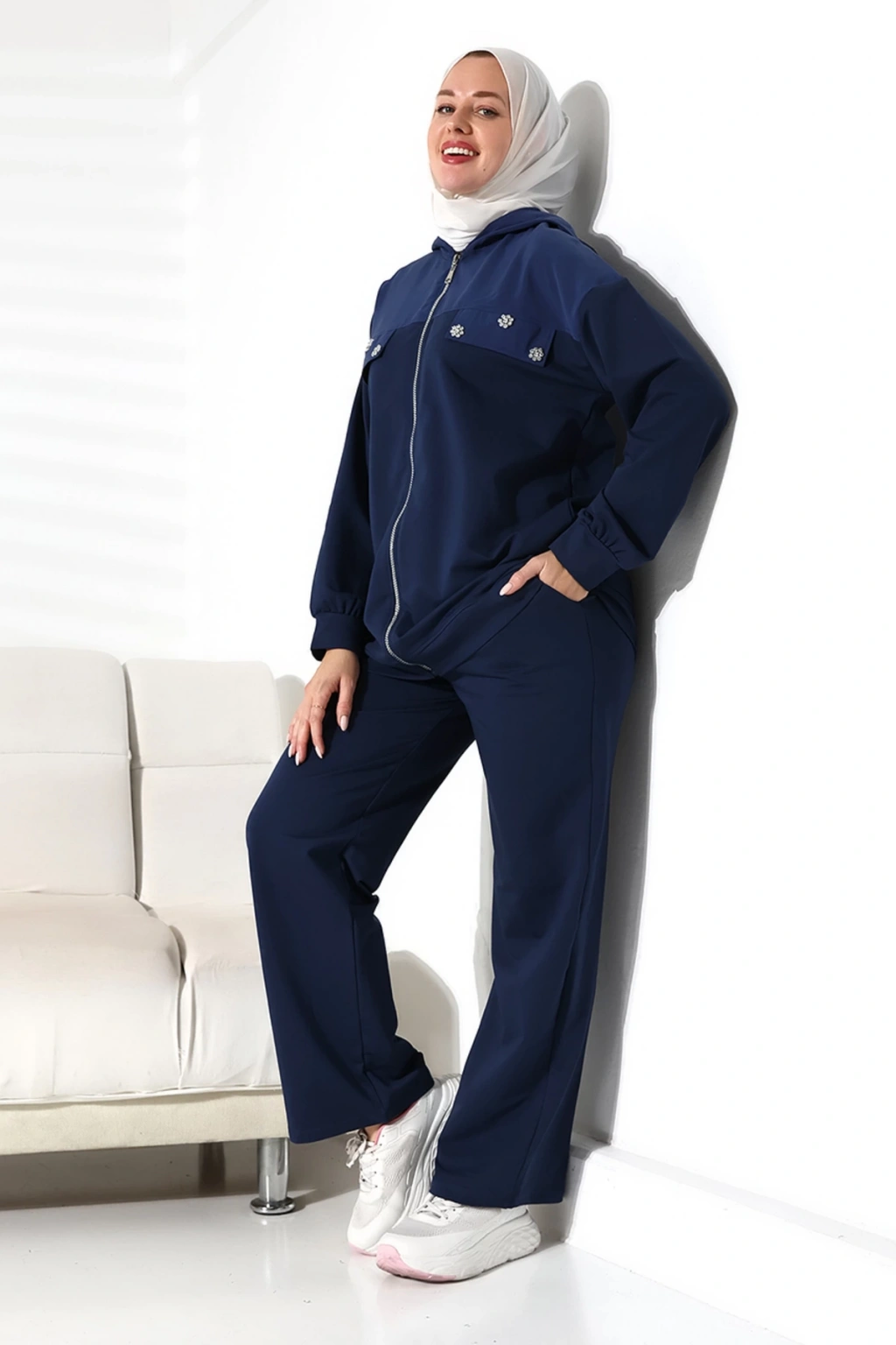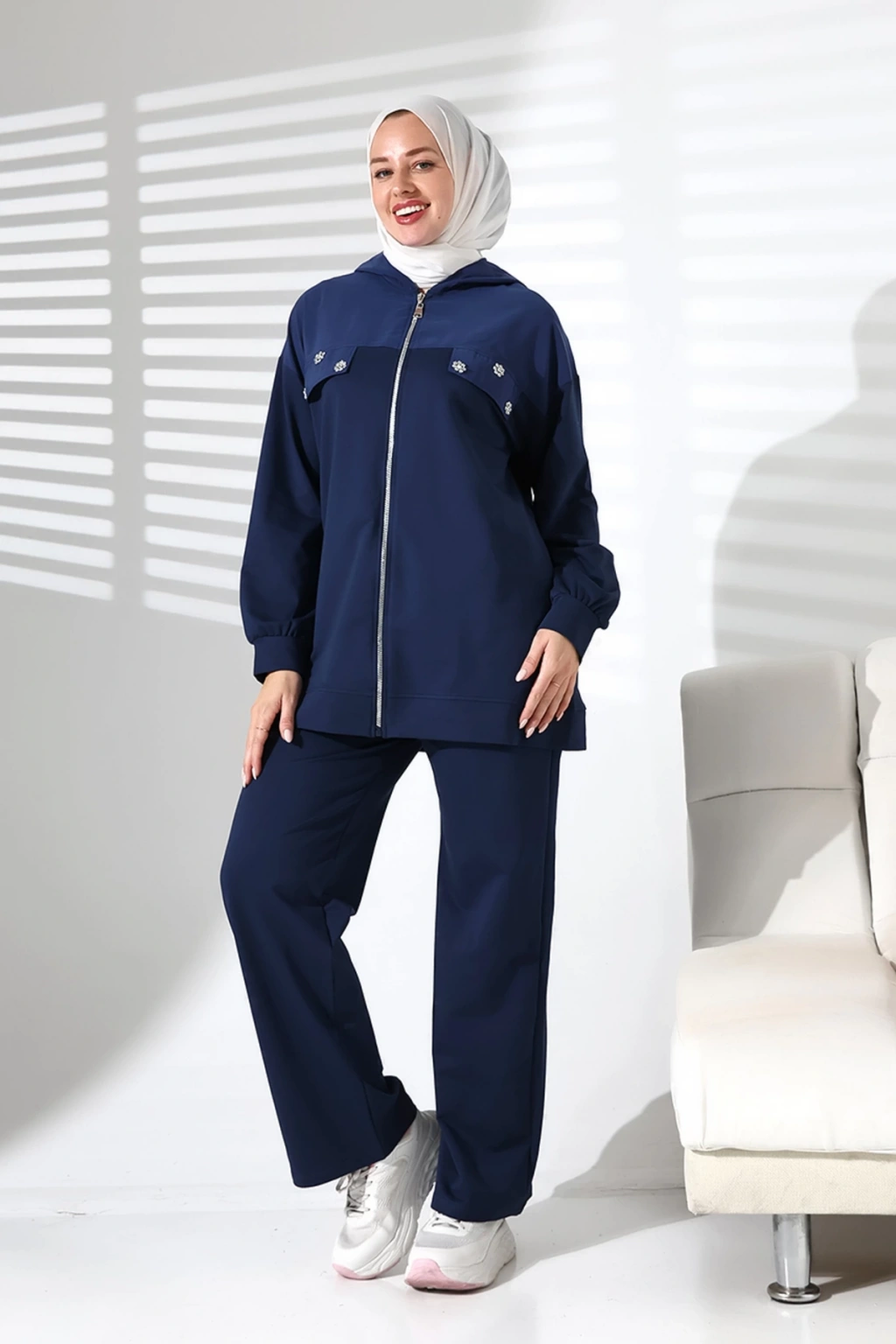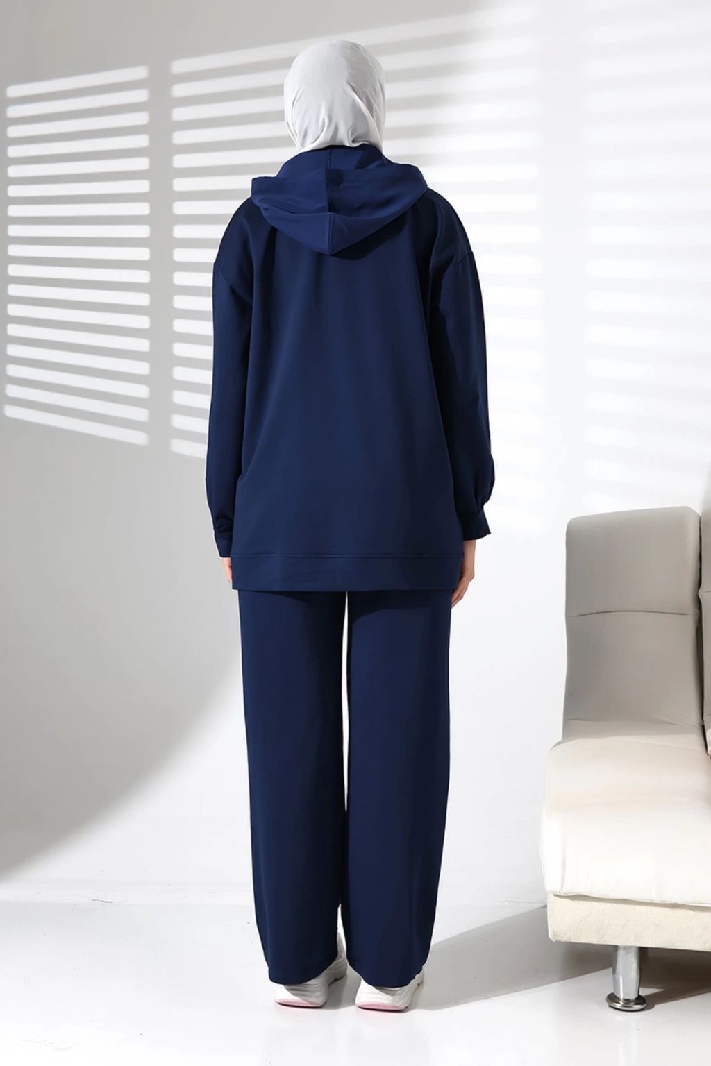 Kadın Mevsimlik Alt ve Üst Rahat Lacivert Spor Tesettür Takım