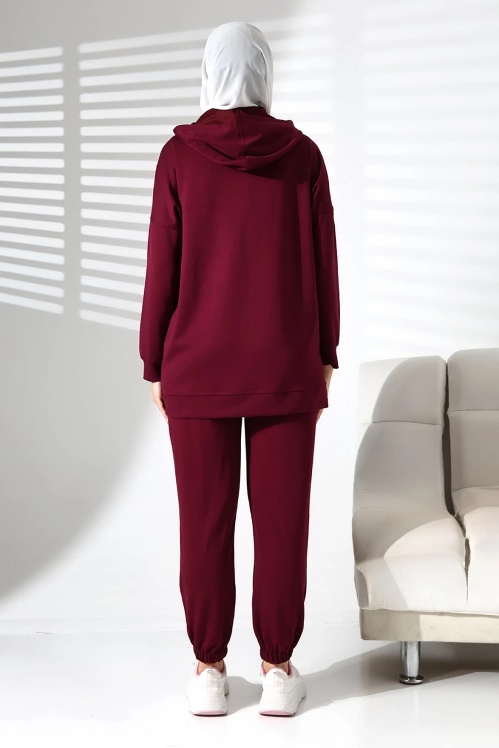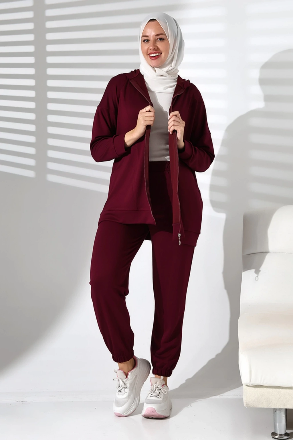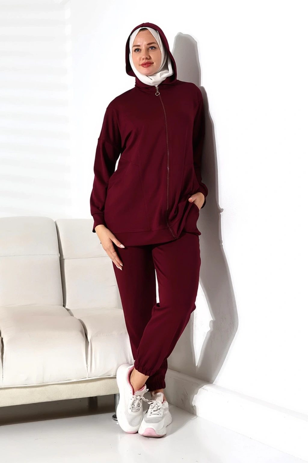 • Mihran Butik'in rahat ve şık alt ve üst spor tesettür takımı, modal penye kumaşıyla dört mevsim boyunca konforlu bir kullanım sunuyor.; Üst parçanın fermuar kapamalı kapüşonlu tasarımı ve cepleri, pratik bir şıklık sağlarken; alt parça ise bel ve paça lastikleriyle günlük hareketlerinize uyum sağlıyor.; Cepli tasarımı sayesinde kullanışlı olan bu takım, sportif ve rahat bir stil arayanlar için mükemmel bir tercih.; • Ürün Özellikleri: Modal penye rahat kumaş, Üst: Fermuar kapamalı, kapüşonlu, Cepli, Alt: Bel ve paça lastikli, cepli, Regular fit, rahat kalıp • Renk Seçenekleri: Mürdüm, Lacivert, Siyah, Haki, Füme • Beden Seçenekleri: S, M, L, XL • Fotoğraftaki model 174 cm boyunda, 85 cm göğüs, 67 cm bel ve 97 cm basen ölçülerine sahip olup, M beden giymektedir.; • Mihran Butik spor tesettür takımı, günlük kombinlerde konfor ve şıklığı bir arada sunar.; Dört mevsim tercih edilebilecek bu takım ile spor tarzınızı kusursuz şekilde tamamlayın.; Şimdi sipariş verin, gardırobunuza sportif bir dokunuş katın! • Ürününüzü daha uzun kullanabilmeniz ve ürününüze uygun bakım yapabilmeniz için lütfen ürün içerisindeki yıkama talimatlarına uyunuz.; • Stüdyo çekimlerinde renkler ışık farklılığından dolayı değişiklik gösterebilir.