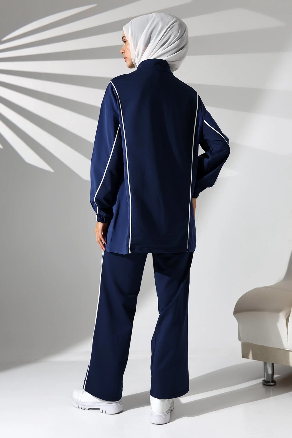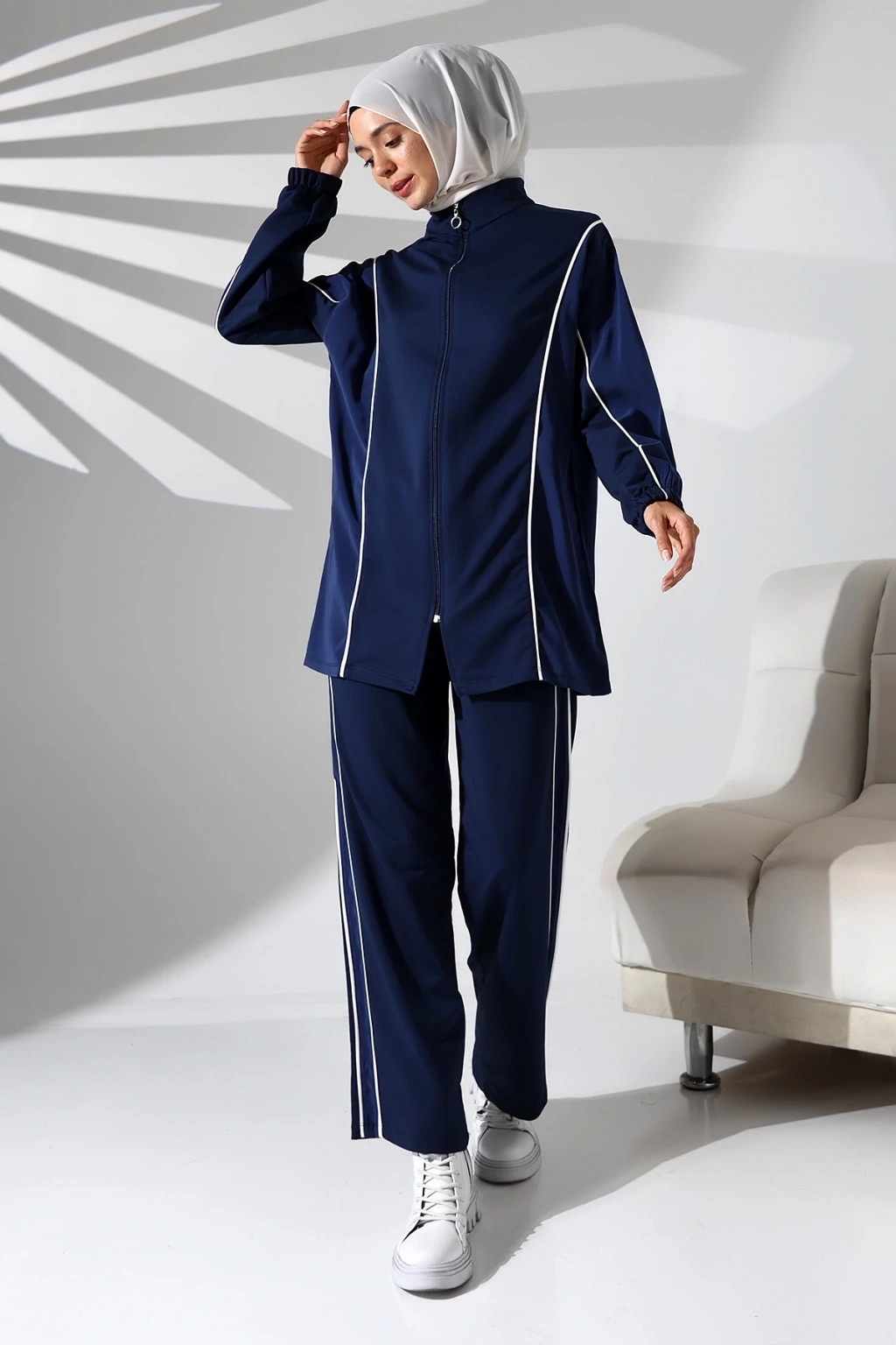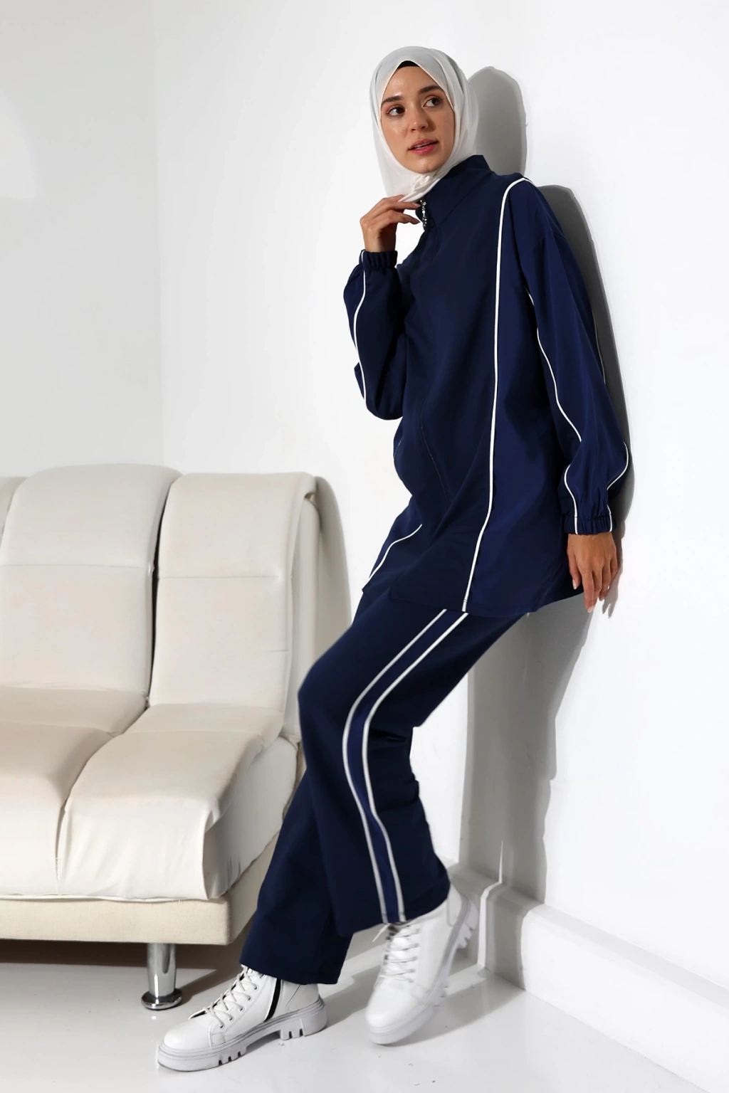 Kadın Mevsimlik Penye Alt Üst Spor Ve Rahat Lacivert Ikili Tunik Pantolon Şık Tesettür Takım