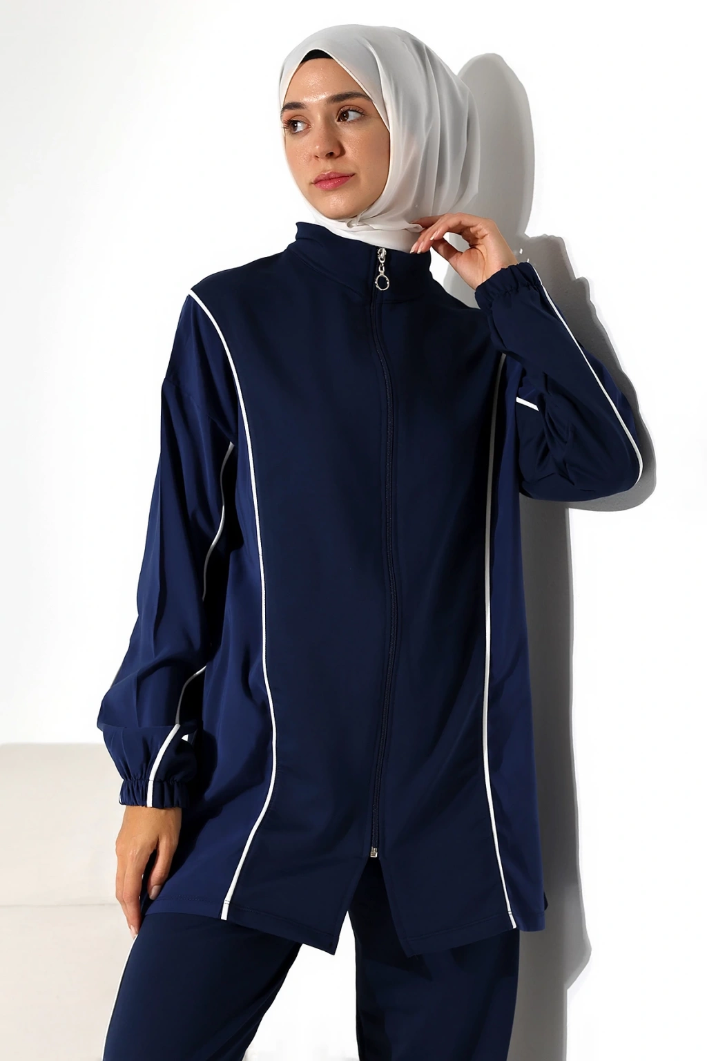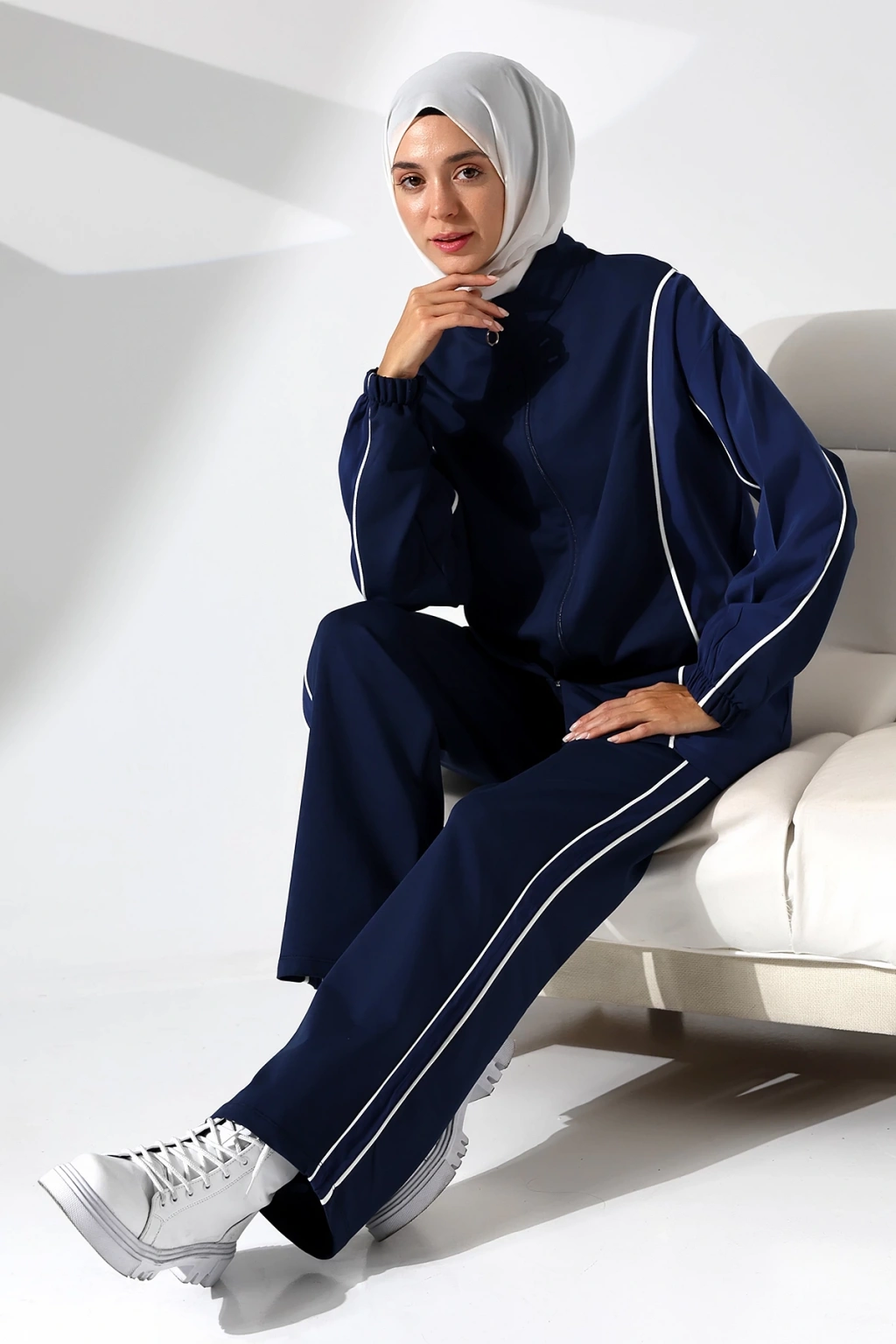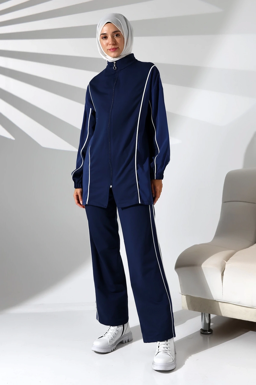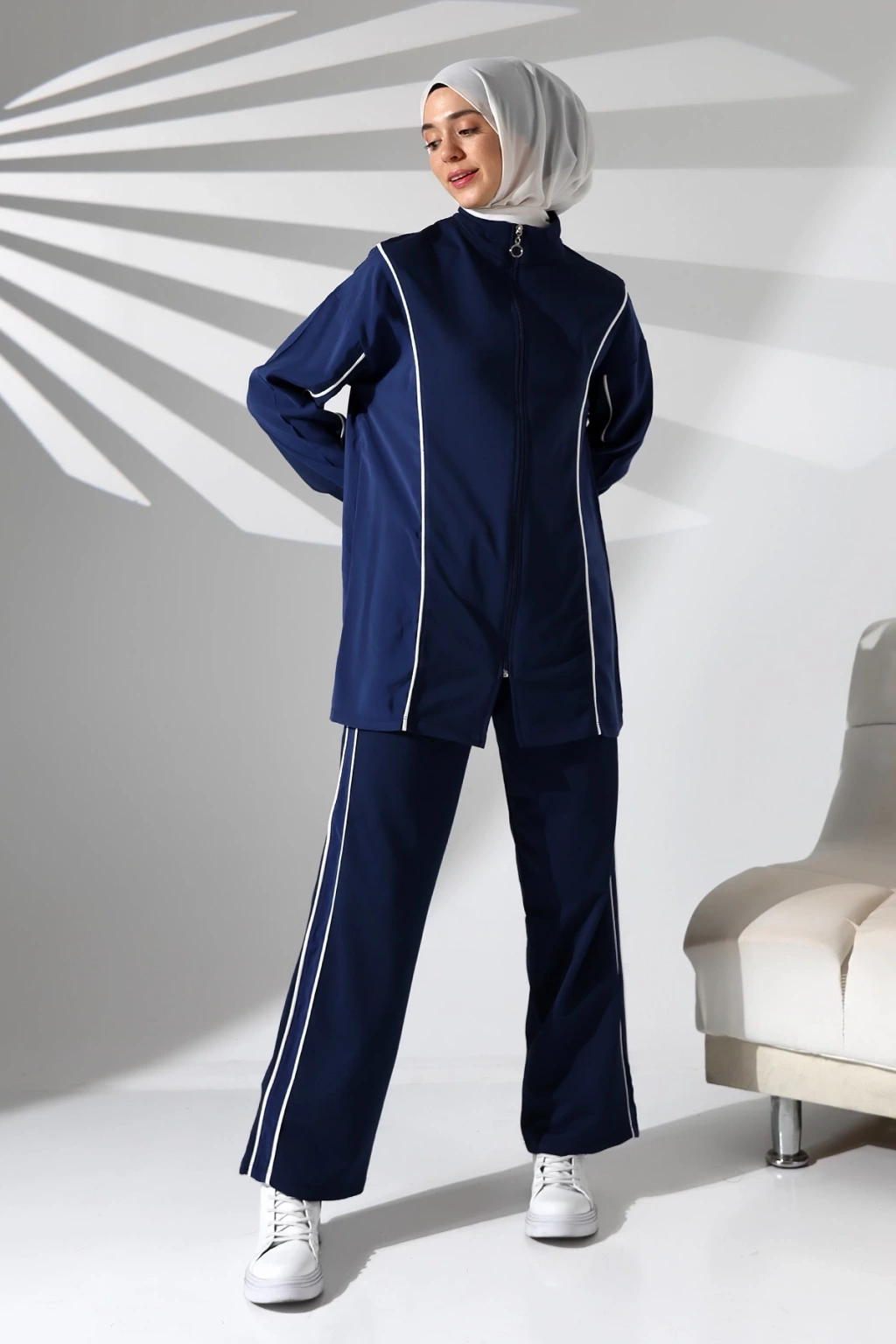 Kadın Mevsimlik Penye Alt Üst Spor Ve Rahat Lacivert Ikili Tunik Pantolon Şık Tesettür Takım