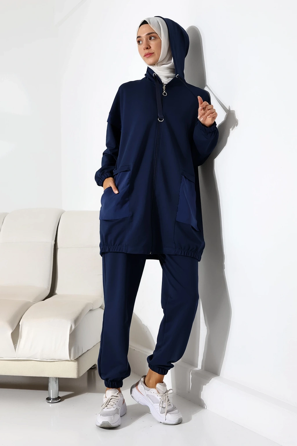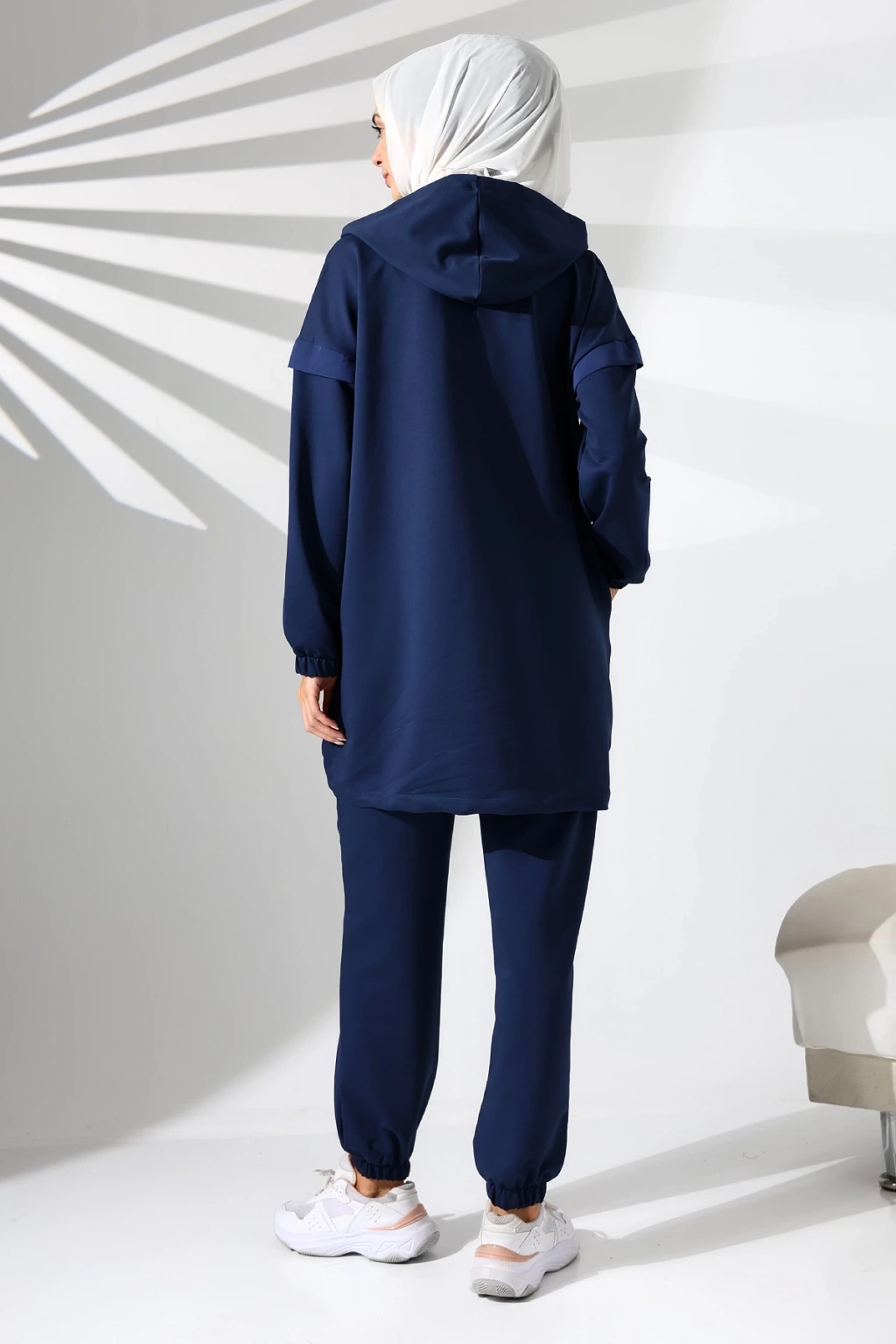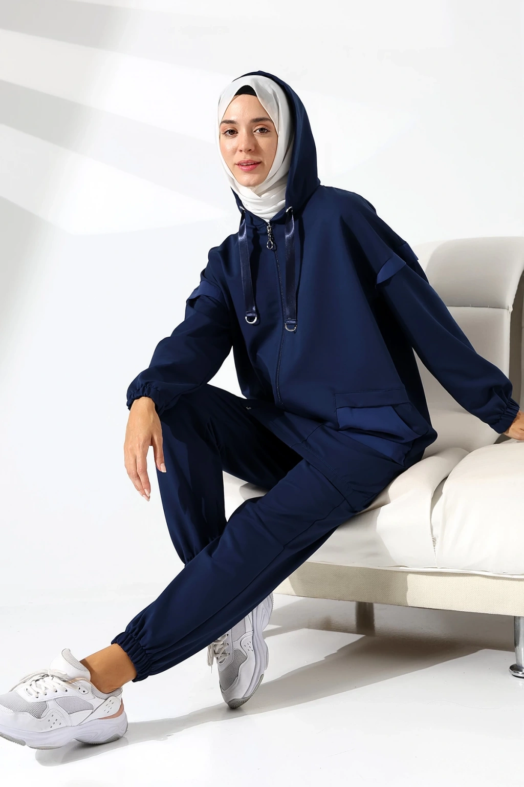Kadın Mevsimlik Penye Alt Üst Spor ve Rahat Lacivert Tesettür Takım