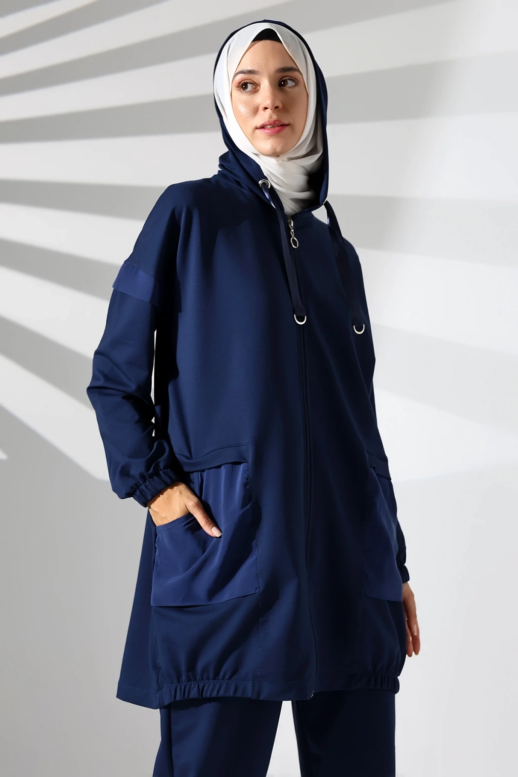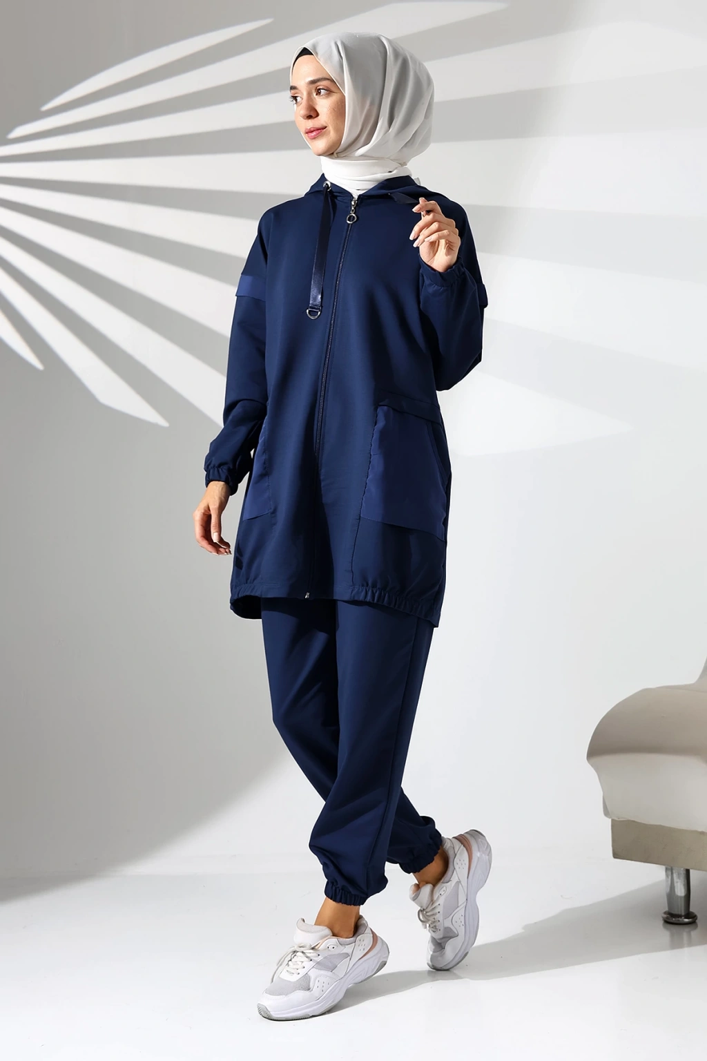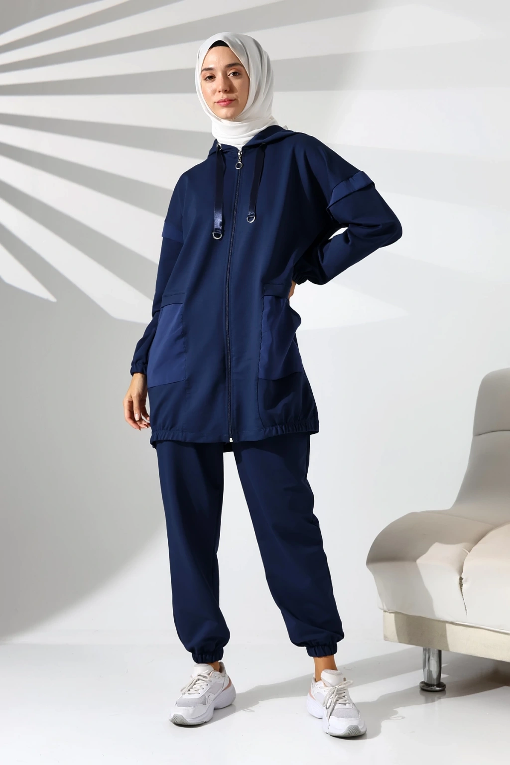 Kadın Mevsimlik Penye Alt Üst Spor ve Rahat Lacivert Tesettür Takım