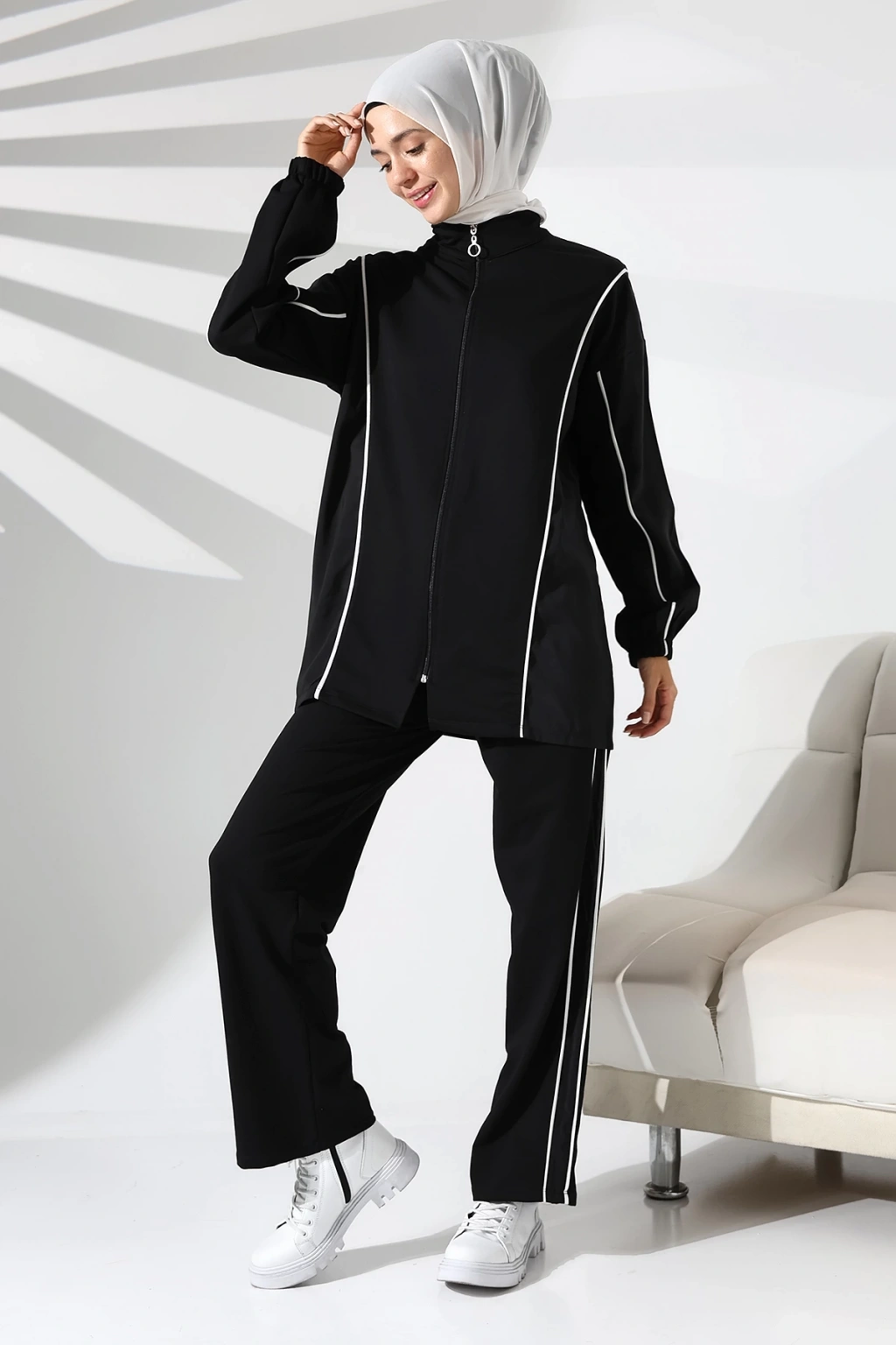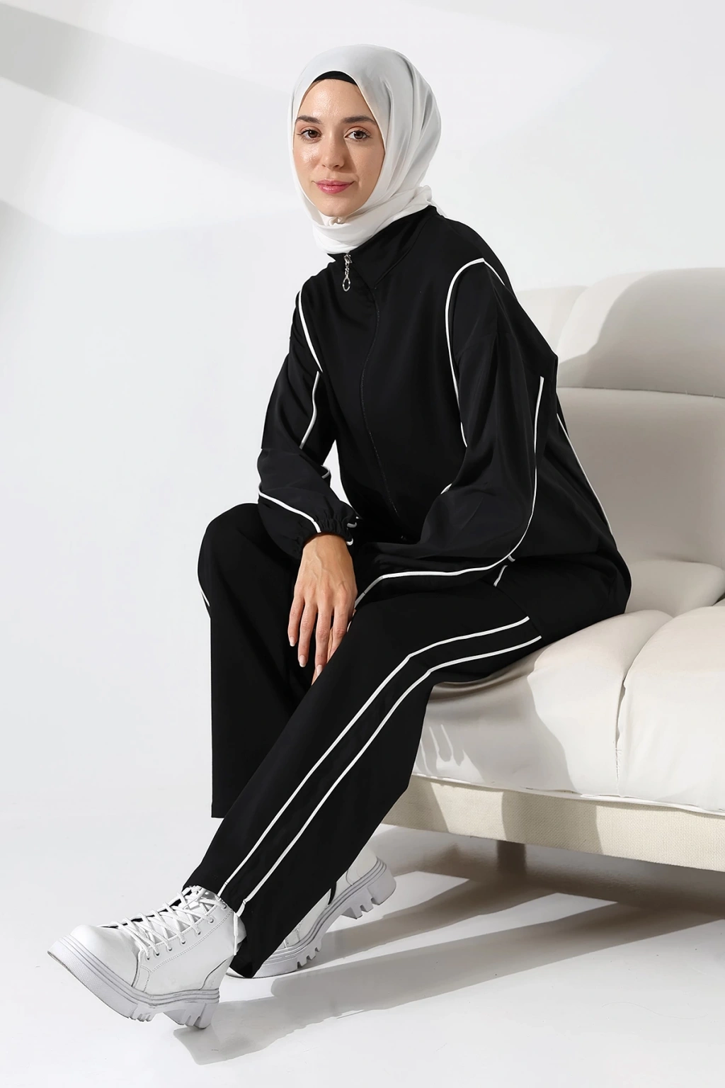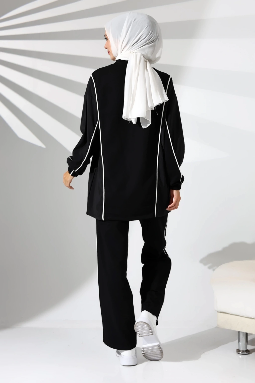 Kadın Mevsimlik Penye Alt Üst Spor ve Rahat Siyah Tesettür Takım