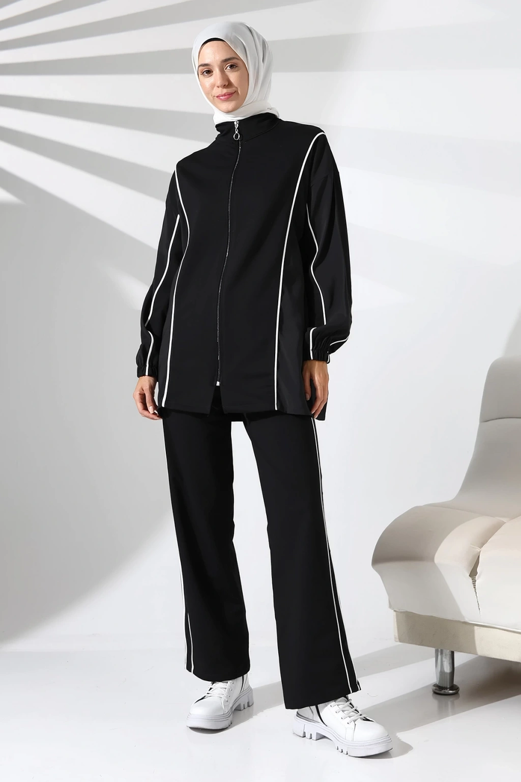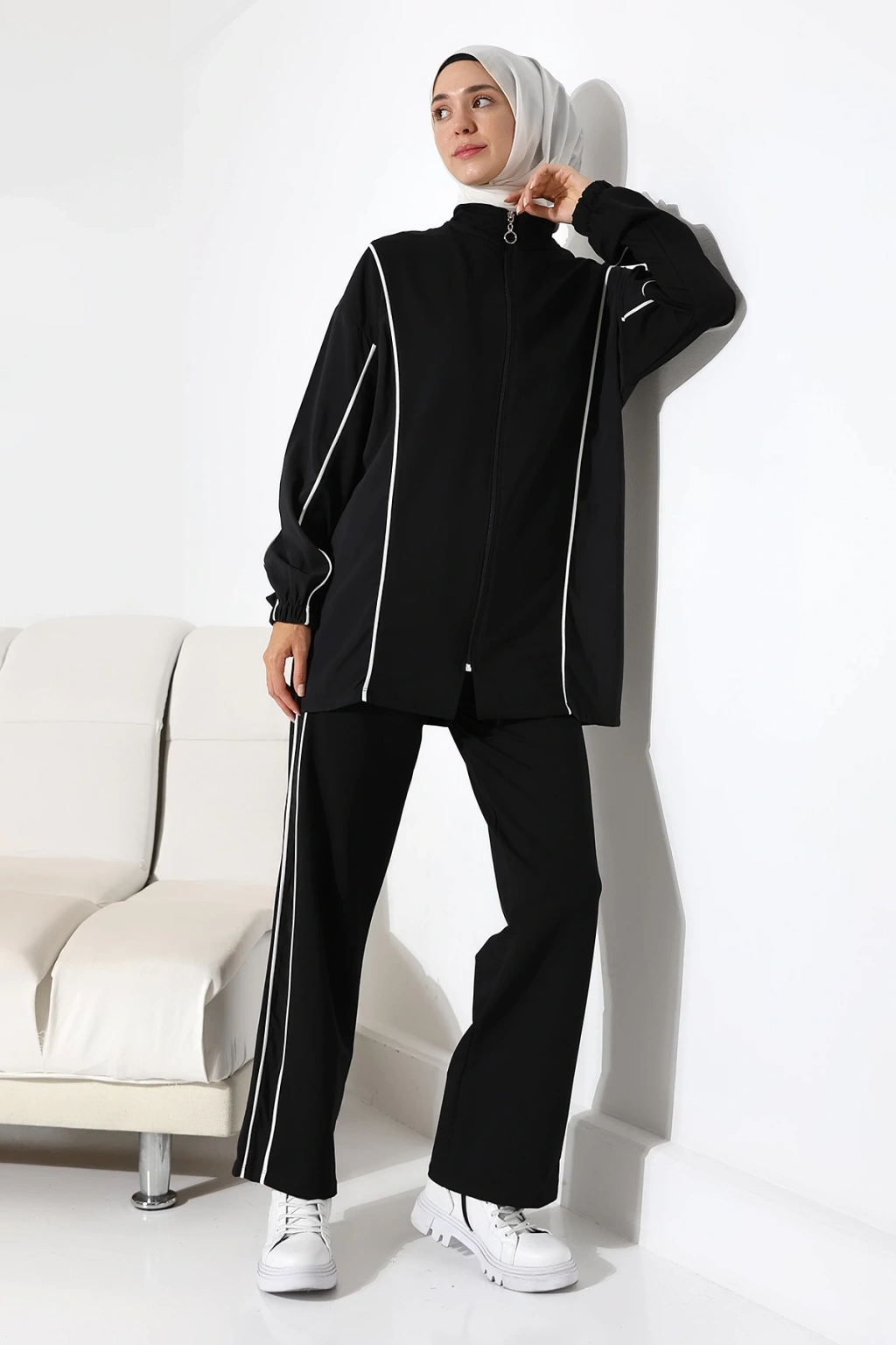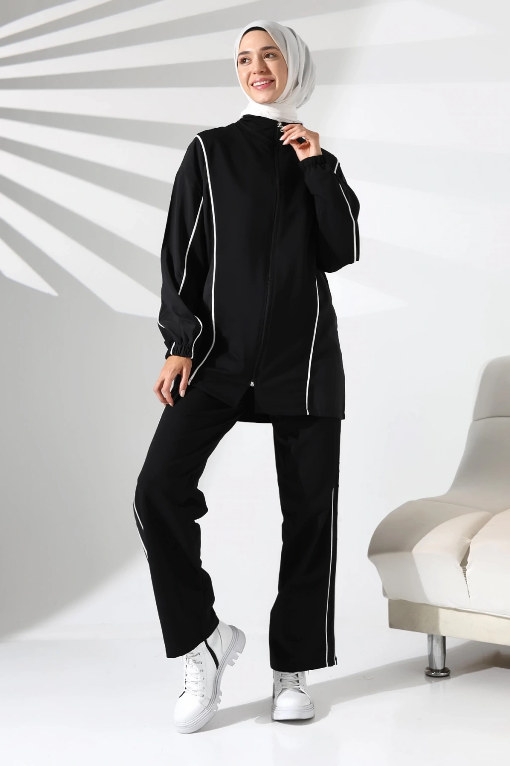 Kadın Mevsimlik Penye Alt Üst Spor ve Rahat Siyah Tesettür Takım