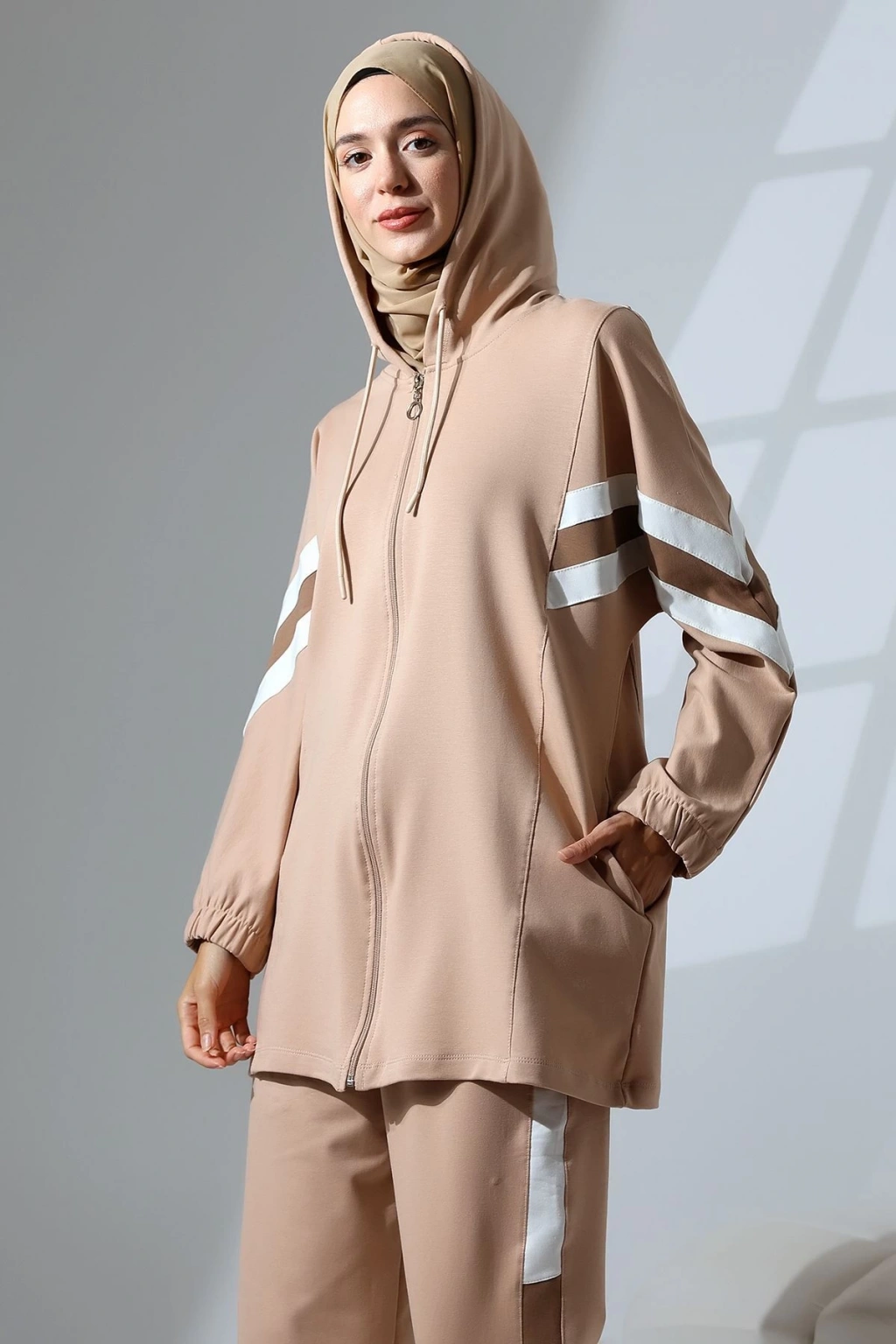Paça detayı ile modern ve şık bir görünüm sunar; Beli lastikli tasarımı sayesinde rahat bir kullanım sağlar; Pamuklu materyali ile gün boyu konforlu bir deneyim yaşatır; 30 derecede yıkama talimatına uygun şekilde kolayca temizlenebilir; Regular silueti ile her vücut tipine uyum sağlar ve rahat hareket etme olanağı tanır; Günlük stilinizi tamamlayacak şekilde tasarlanmıştır; hem spor hem de rahatlığı bir arada sunar; Orta kalınlıkta kumaşı mevsim geçişlerinde ideal sıcaklık dengesi sağlar; Standart kol tipi ile klasik ve zamansız bir tarz yaratır; 2 iplik dokuma tipi, dayanıklılığı artırarak uzun süreli kullanım imkanı verir; Örme kumaş tipi esneklik kazandırarak hareket özgürlüğünüzü arttırır; Tesettür giyim koleksiyonuna özel olarak tasarlanmıştır; şıklığı ve tesettür prensiplerini bir arada sunar; Tüm yaş gruplarına hitap eden geniş kullanıcı yelpazesi ile;