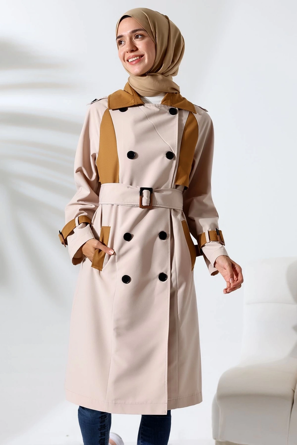 Pamuk ve polyester karışımı kumaş yapısı ile konforlu bir kullanım sunar ve uzun süreli giyimde rahatlık sağlar; Düz deseni sayesinde sade ve şık bir görünüm elde edilir, her türlü kombinle uyum sağlar; Tüm yaş gruplarına hitap eden tasarımıyla geniş bir kullanıcı yelpazesine sahiptir; Kruvaze kapama şekli ile modern ve zarif bir stil yaratırken, aynı zamanda pratik kullanım imkanı sunar; Uzun boy tasarımı ile hem şıklığı hem de koruyuculuğu bir arada sunarak mevsim geçişlerinde ideal bir tercih olur; Dokuma kumaş tipi, dayanıklılığı artırarak ürünün uzun ömürlü olmasına katkıda bulunur; 30 derecede yıkama talimatına uygun şekilde kolayca temizlenebilir; böylece hijyenik kalması kolaylaşır; Regular kalıp ile vücut hatlarını saran ancak sıkmayan rahat bir oturuş sağlar; Standart kol tipi, hareket özgürlüğünüzü kısıtlamadan konforlu bir kullanım sunar; Günlük ortamlarda rahatlıkla tercih edilebilecek tarzda tasar;