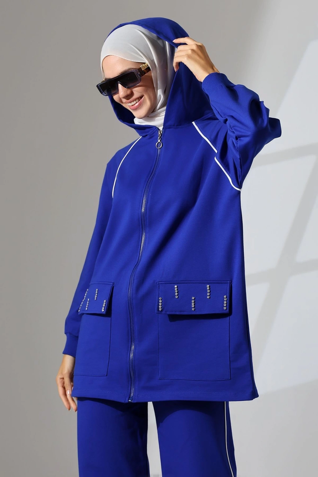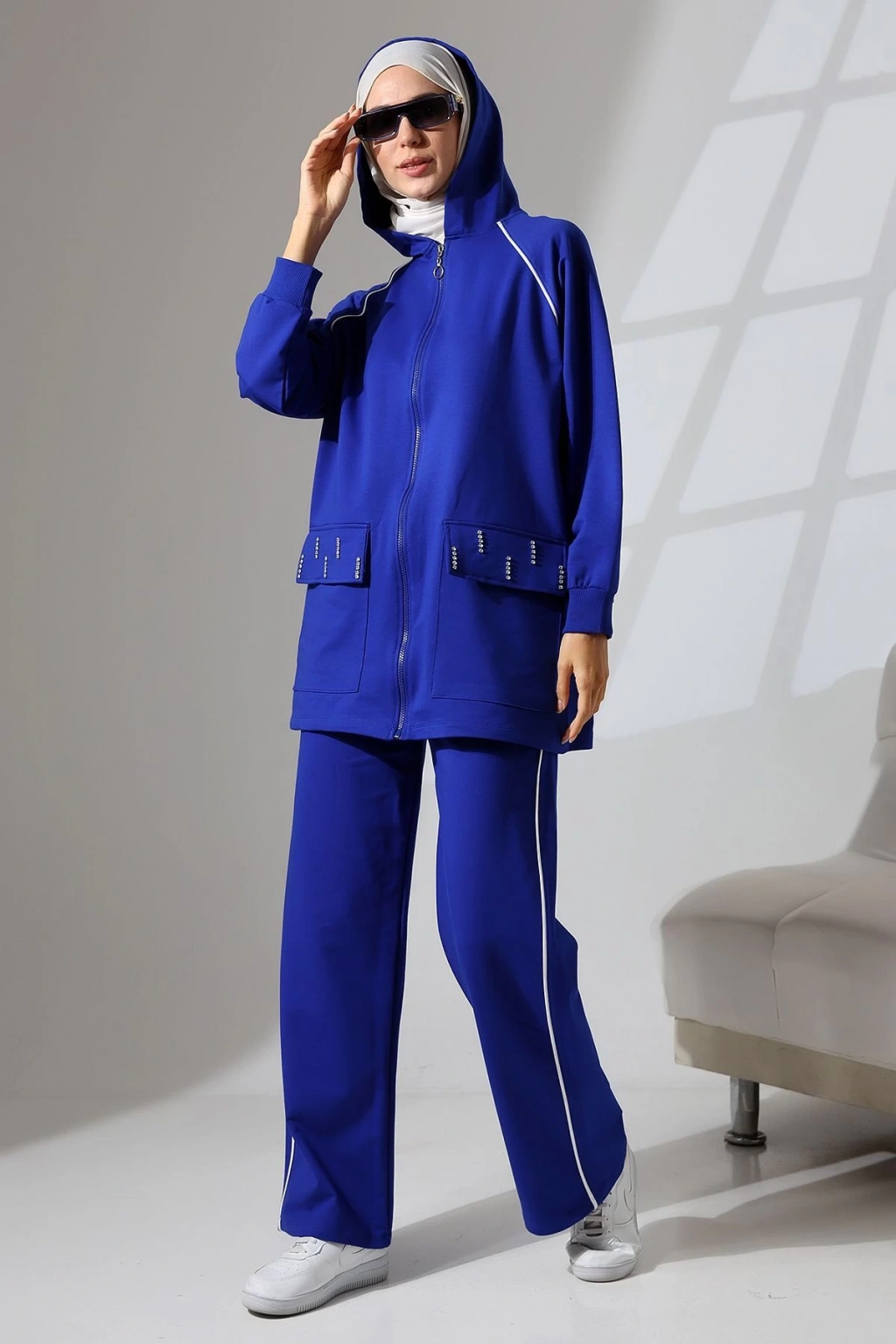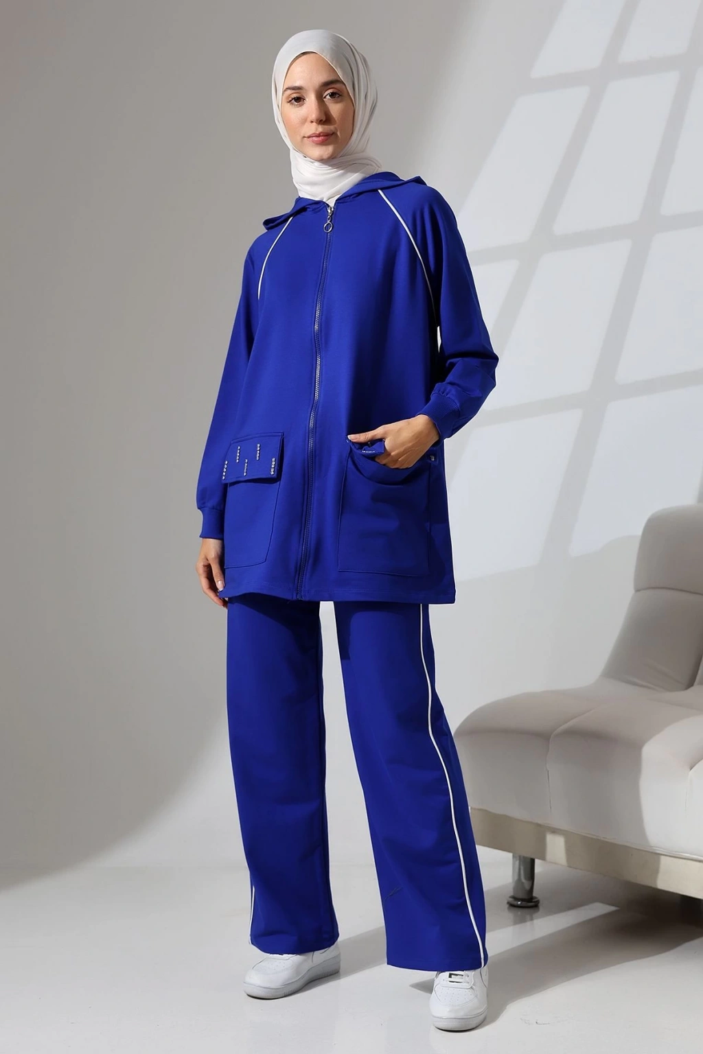 • Kadın Mevsimlik Penye Alt Üst Spor ve Rahat Tesettür Takım • Mihran Butik'in yeni 2 İplik Penye Kumaş Takımı ile şıklığı ve konforu bir arada yaşayın! Bu harika takım, %80 pamuk, %15 polyester ve %5 likra karışımı ile dört mevsim boyunca giyilebilir ve her bedene uyum sağlar. ; S, M, L ve XL beden seçenekleriyle herkes için ideal bir seçimdir. ; • Beden Önerisi: 55-62 kg S Beden, 63-70 kg M Beden, 71-80 kg L Beden, 81-90 kg XL Beden • Pantolon Detayları: Cepli, beli lastikli ve geniş paça tasarımıyla rahat bir kullanım sunar. ; • Üst Ürün Detayları: Kapüşonlu, nakışlı ve kanguru cepli. ; Fermuarlı tasarımı ile hem şık hem de pratik. ; • Renk Seçenekleri: Kahverengi, Beyaz, Lacivert, Siyah, Haki, Camel, Taş rengi • Bu takım, her kombininize mükemmel uyum sağlar ve tarzınızı tamamlar. ; Fotoğraftaki modelin ölçüleri: Boy: 175cm, Göğüs: 84cm, Bel: 63cm, Basen: 90cm olup, M bedeni giymektedir. ; • Teknik Bilgileri: S Beden: Göğüs: 57cm, Bel: 57cm, Boy 77cm, M Beden: Göğüs: 59cm, Bel: 60cm, Boy: 78cm, L Beden: Göğüs: 61cm, Bel: 62cm, Boy: 79cm, XL Beden: Göğüs: 63cm, Bel: 64cm, Boy: 80cm • Mihran Butik'in benzersiz tasarımları ile stilinize sofistike bir dokunuş katın. ; Hemen sipariş verin ve modayı yakalayın! • Neden Mihran Butik? Kaliteli Malzeme: %80 pamuk, %15 polyester, %5 likra karışımı ile konforlu ve dayanıklı. ; Geniş Renk Seçenekleri: Her zevke hitap eden 7 farklı renk seçeneği. ; Rahat ve Şık Tasarım: Hem günlük kullanım hem de özel günler için ideal. ; Her Bedene Uygun: S, M, L ve XL beden seçenekleri. ; Şimdi alışveriş yapın ve Mihran Butik'in zarif dünyasına adım atın! • Ürününüzü daha uzun kullanabilmeniz ve ürününüze uygun bakım yapabilmeniz için lütfen ürün içerisindeki yıkama talimatlarına uyunuz. ; • Stüdyo çekimlerinde renkler ışık farklılığından dolayı değişiklik gösterebilir.;