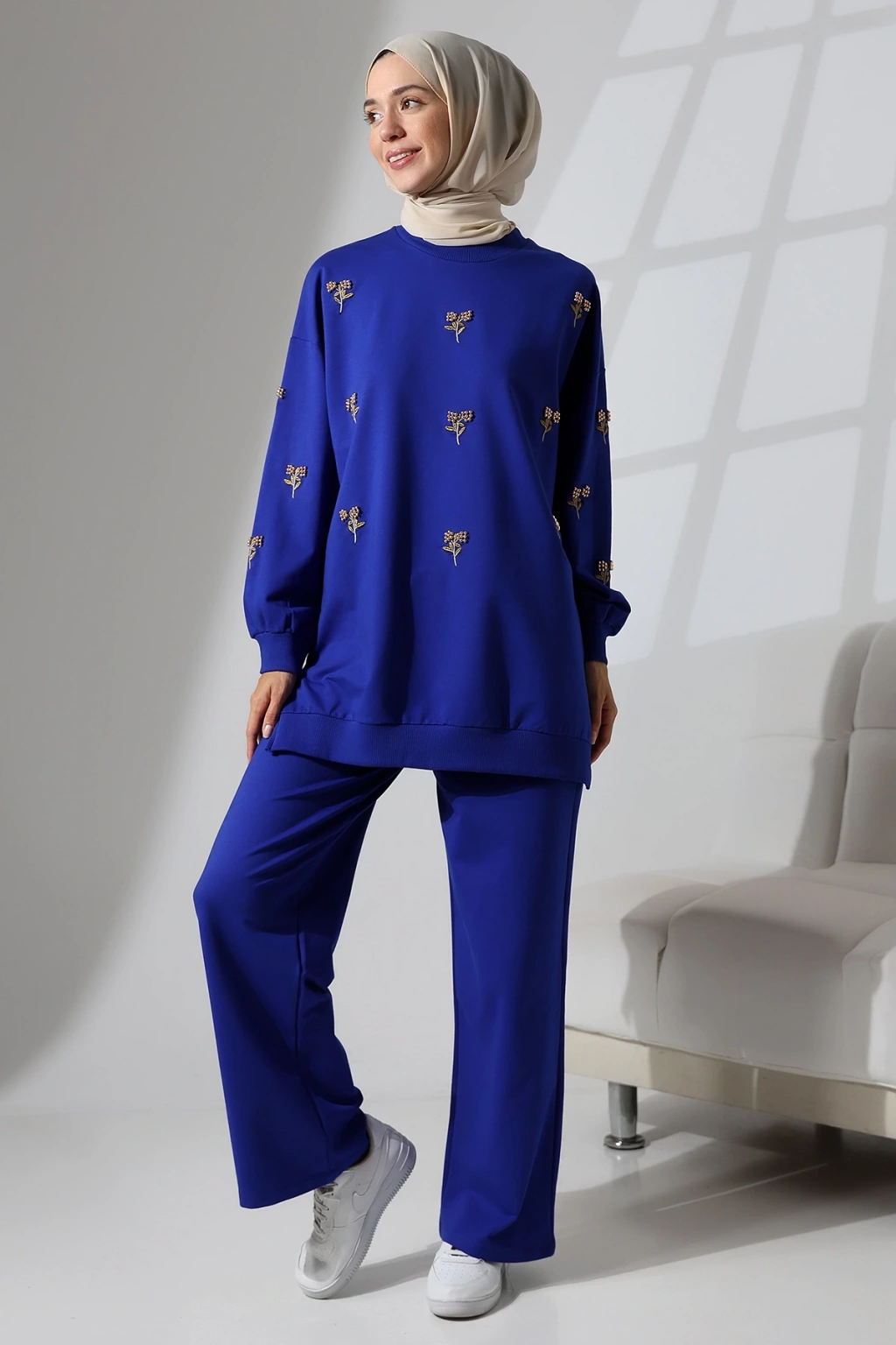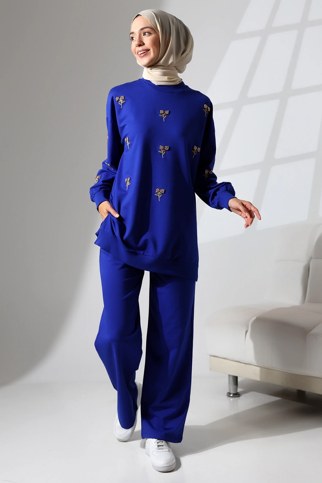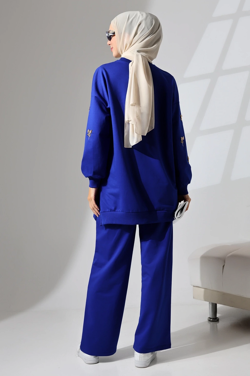 Kadın Saks Mavisi Mevsimlik Penye Alt Üst Spor ve Rahat Tesettür Takım