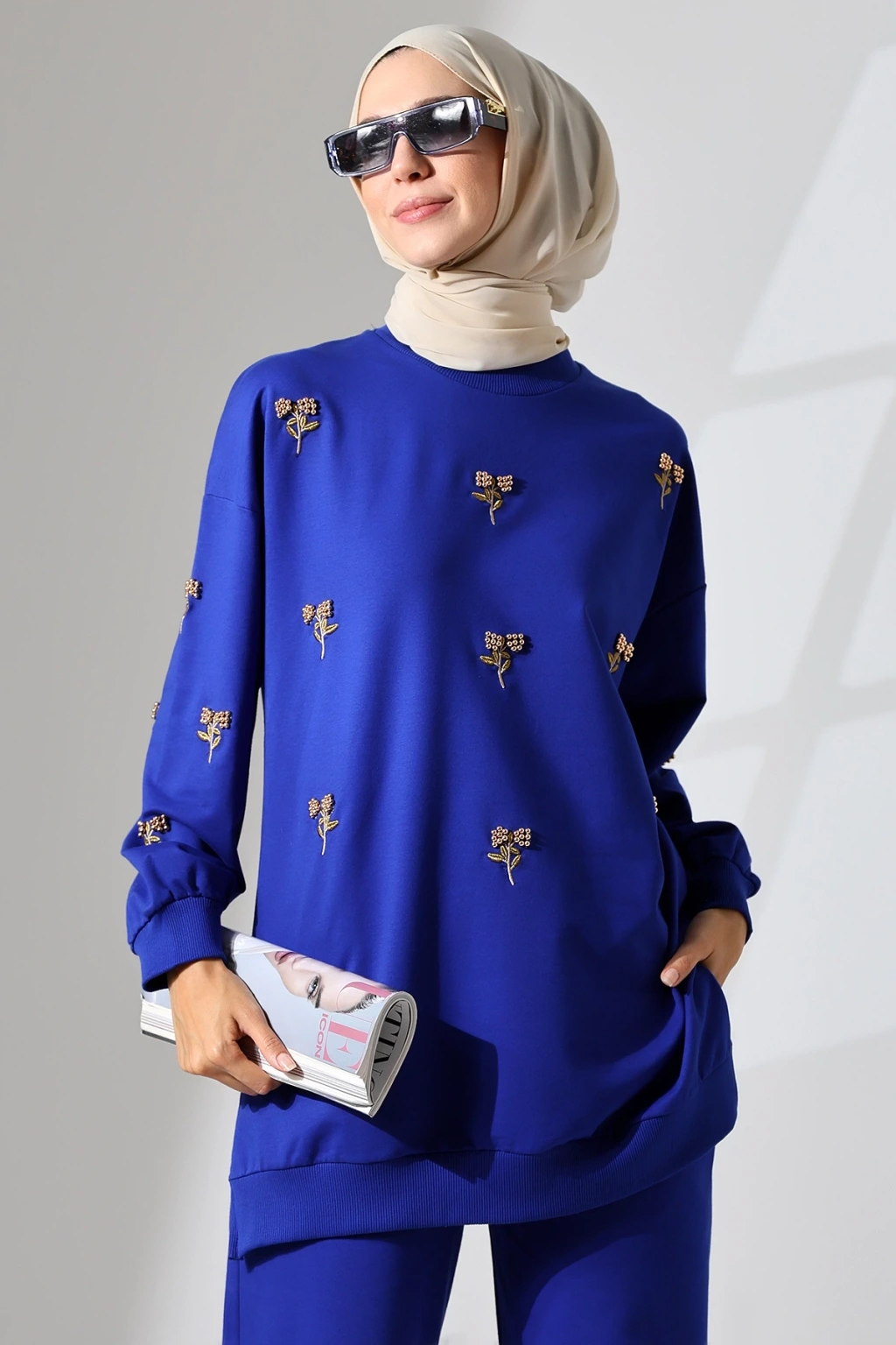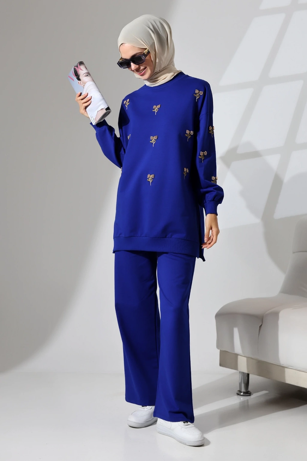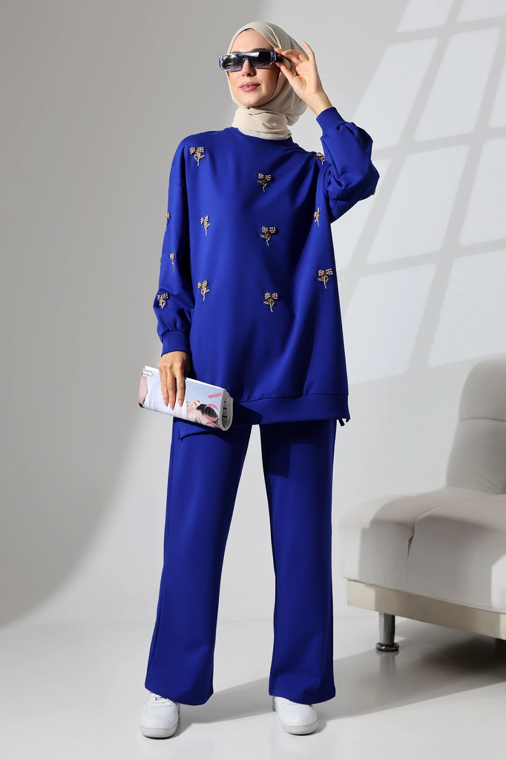 Kadın Saks Mavisi Mevsimlik Penye Alt Üst Spor ve Rahat Tesettür Takım