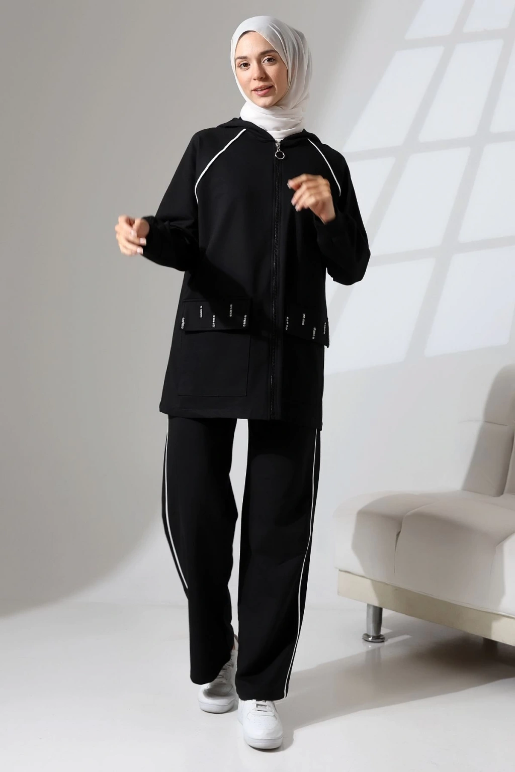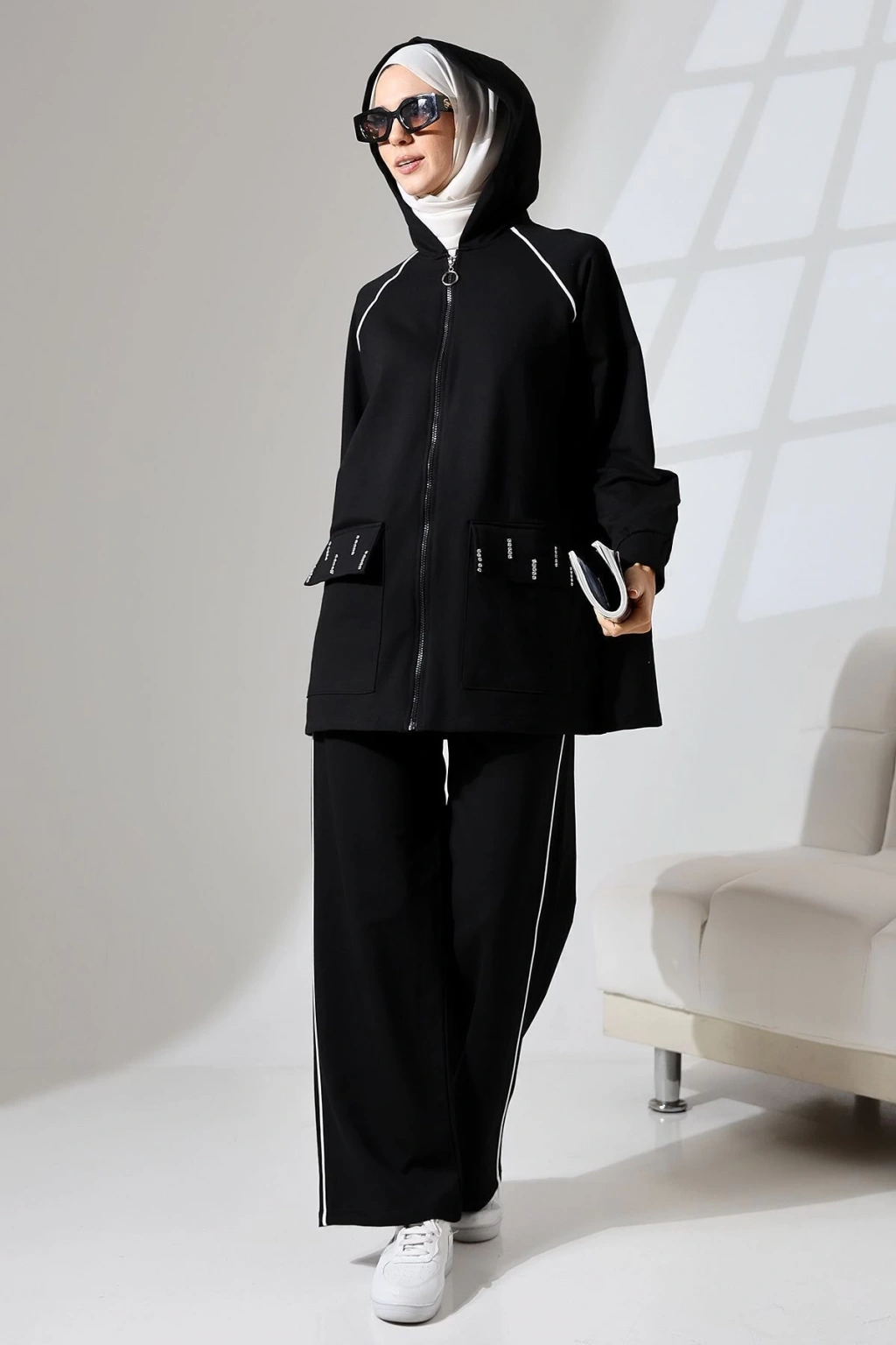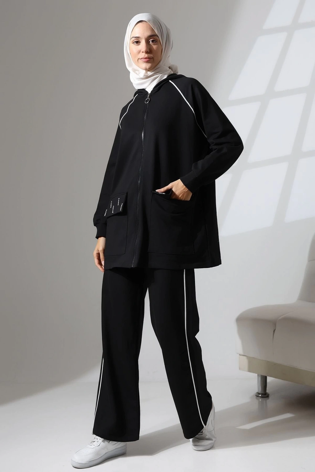 • Kadın Mevsimlik Penye Alt Üst Spor ve Rahat Tesettür Takım • Mihran Butik'in yeni 2 İplik Penye Kumaş Takımı ile şıklığı ve konforu bir arada yaşayın! Bu harika takım, %80 pamuk, %15 polyester ve %5 likra karışımı ile dört mevsim boyunca giyilebilir ve her bedene uyum sağlar. ; S, M, L ve XL beden seçenekleriyle herkes için ideal bir seçimdir. ; • Beden Önerisi: 55-62 kg S Beden, 63-70 kg M Beden, 71-80 kg L Beden, 81-90 kg XL Beden • Pantolon Detayları: Cepli, beli lastikli ve geniş paça tasarımıyla rahat bir kullanım sunar. ; • Üst Ürün Detayları: Kapüşonlu, nakışlı ve kanguru cepli. ; Fermuarlı tasarımı ile hem şık hem de pratik. ; • Renk Seçenekleri: Kahverengi, Beyaz, Lacivert, Siyah, Haki, Camel, Taş rengi • Bu takım, her kombininize mükemmel uyum sağlar ve tarzınızı tamamlar. ; Fotoğraftaki modelin ölçüleri: Boy: 175cm, Göğüs: 84cm, Bel: 63cm, Basen: 90cm olup, M bedeni giymektedir. ; • Teknik Bilgileri: S Beden: Göğüs: 57cm, Bel: 57cm, Boy 77cm, M Beden: Göğüs: 59cm, Bel: 60cm, Boy: 78cm, L Beden: Göğüs: 61cm, Bel: 62cm, Boy: 79cm, XL Beden: Göğüs: 63cm, Bel: 64cm, Boy: 80cm • Mihran Butik'in benzersiz tasarımları ile stilinize sofistike bir dokunuş katın. ; Hemen sipariş verin ve modayı yakalayın! • Neden Mihran Butik? Kaliteli Malzeme: %80 pamuk, %15 polyester, %5 likra karışımı ile konforlu ve dayanıklı. ; Geniş Renk Seçenekleri: Her zevke hitap eden 7 farklı renk seçeneği. ; Rahat ve Şık Tasarım: Hem günlük kullanım hem de özel günler için ideal. ; Her Bedene Uygun: S, M, L ve XL beden seçenekleri. ; Şimdi alışveriş yapın ve Mihran Butik'in zarif dünyasına adım atın! • Ürününüzü daha uzun kullanabilmeniz ve ürününüze uygun bakım yapabilmeniz için lütfen ürün içerisindeki yıkama talimatlarına uyunuz. ; • Stüdyo çekimlerinde renkler ışık farklılığından dolayı değişiklik gösterebilir.;