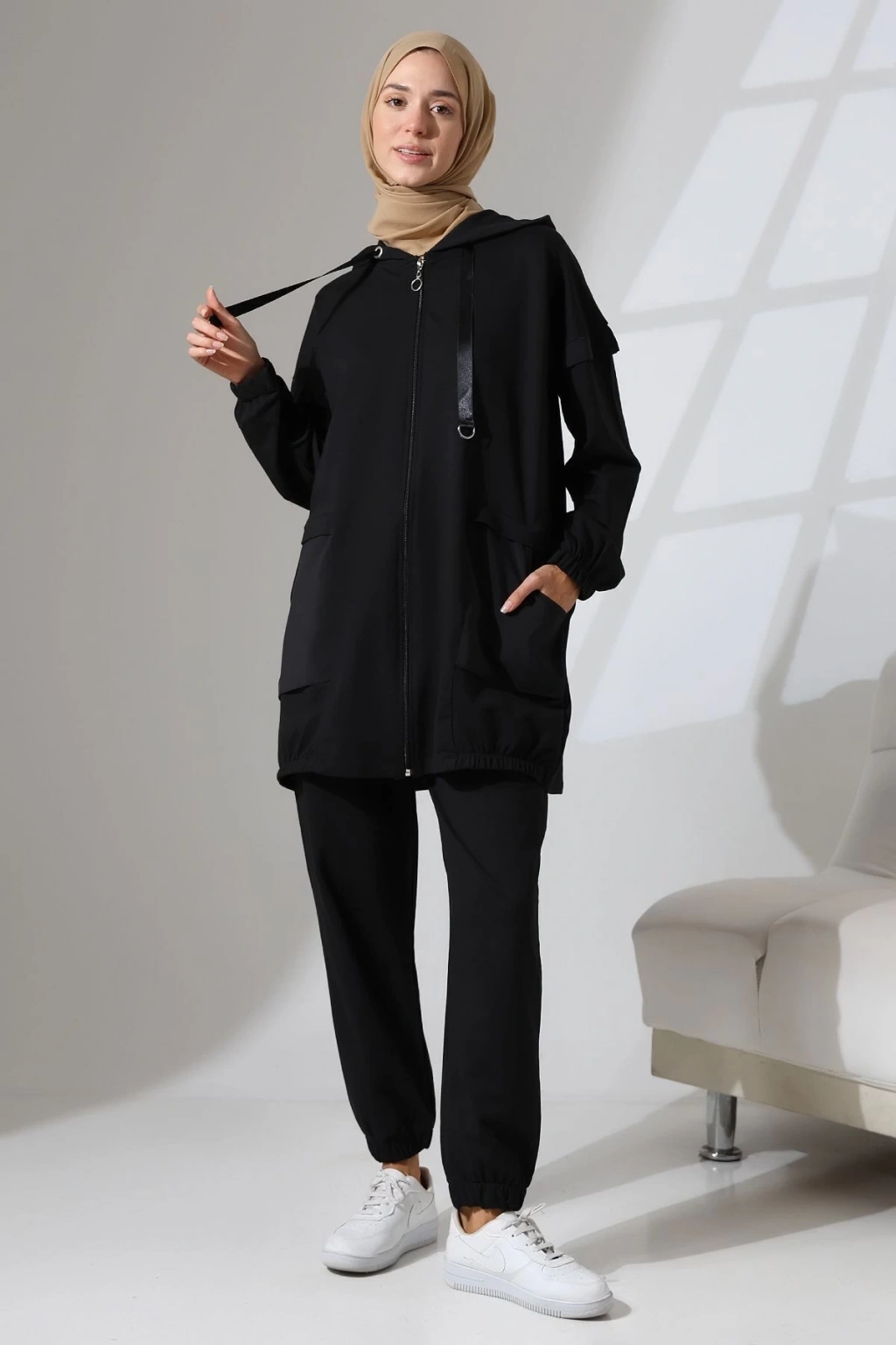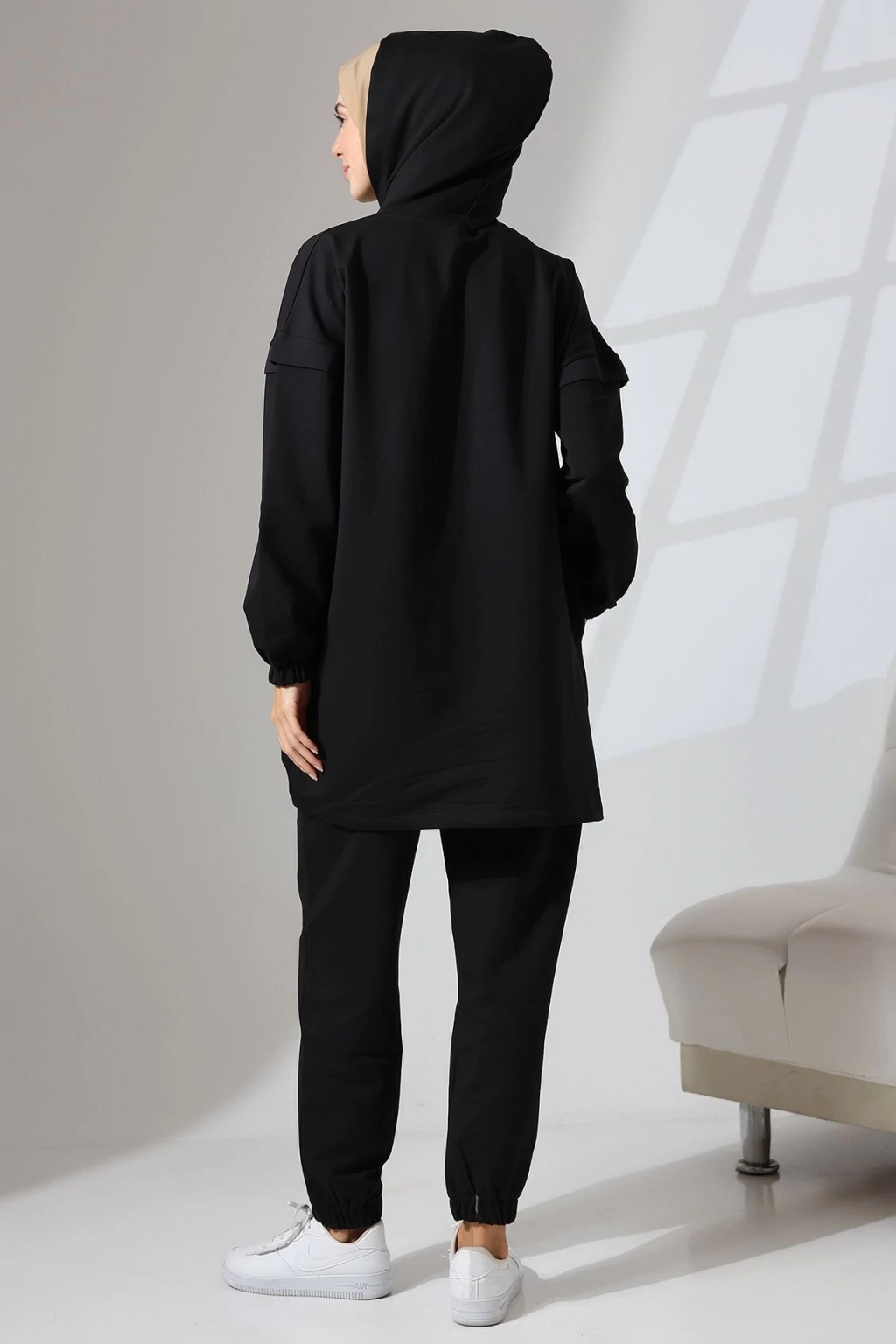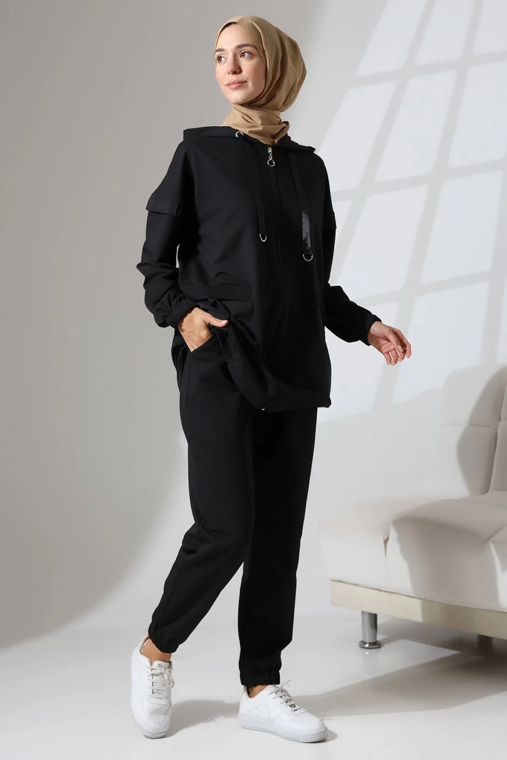 Kadın Siyah Mevsimlik Penye Alt Üst Spor ve Rahat Tesettür Takım