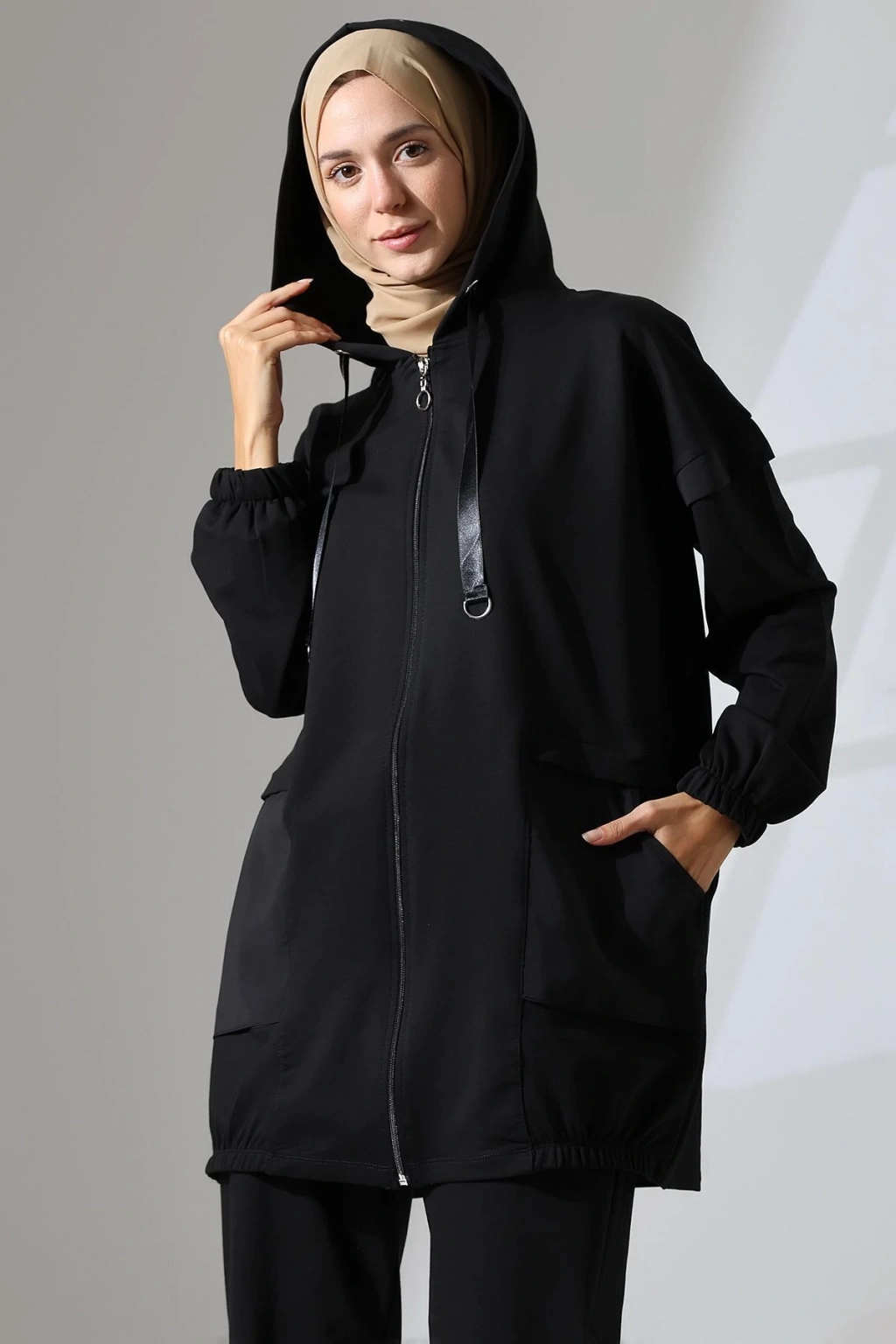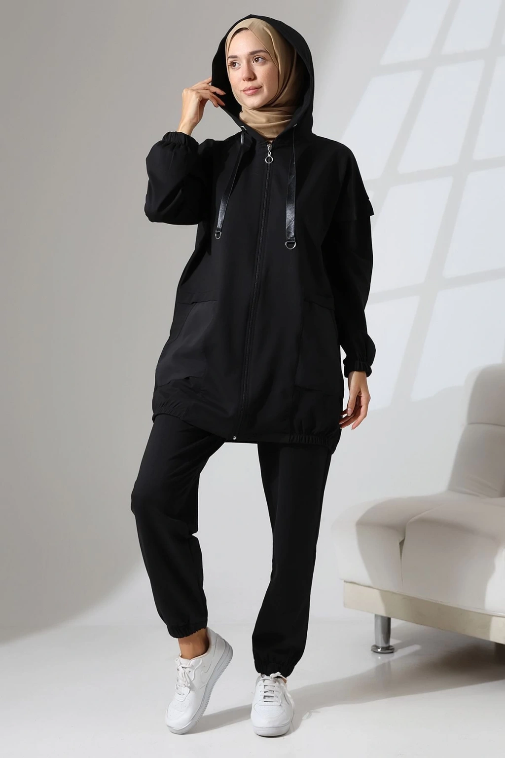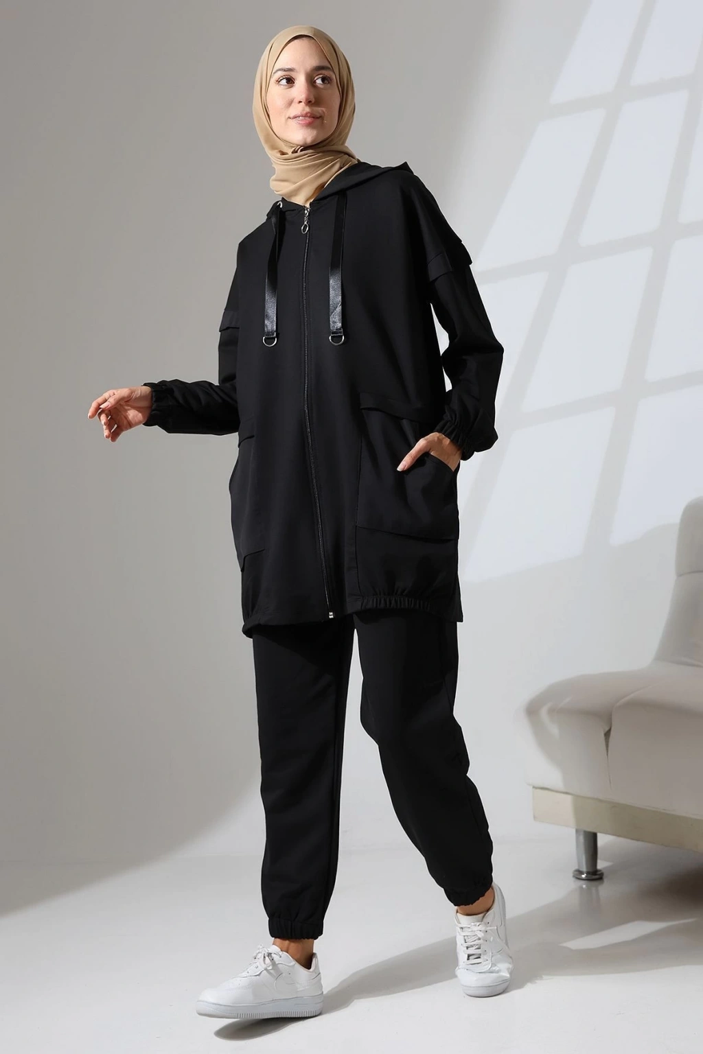 Kadın Siyah Mevsimlik Penye Alt Üst Spor ve Rahat Tesettür Takım