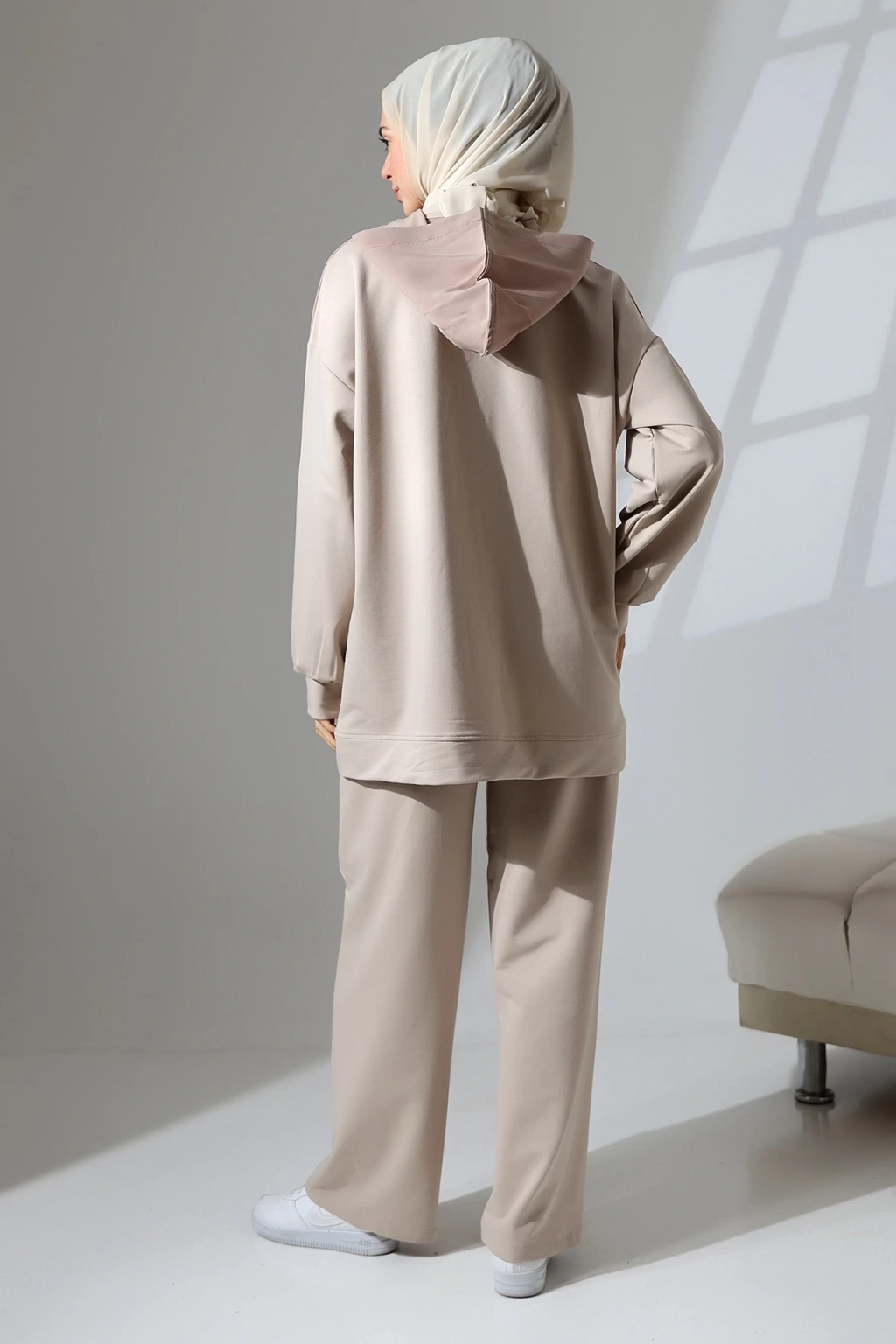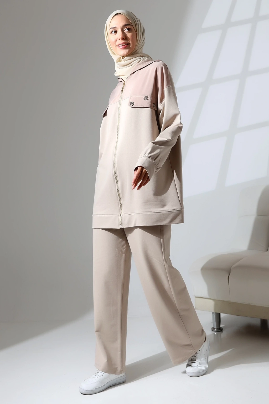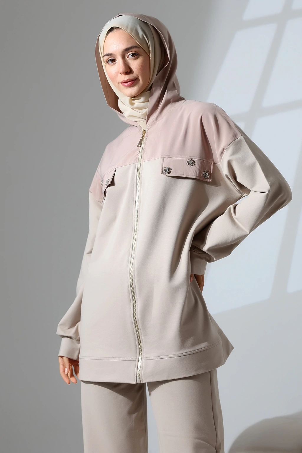 • Kadın Mevsimlik Penye Alt Üst Spor ve Rahat Tesettür Takım • Mihran Butik'in yeni sezon 2 İplik Penye Kumaş Takımı, şıklığı ve rahatlığı bir arada sunar. ; %80 pamuk, %15 polyester ve %5 likra karışımı kumaşı ile dört mevsim boyunca giyilebilir. ; Takım, pantolon ve üst olmak üzere iki parçadan oluşur. ; • Beden Önerisi: 55-62 kg S Beden, 63-70 kg M Beden, 71-80 kg L Beden, 81-90 kg XL Beden • Üst Ürün Detayları: Kapüşonlu ve fermuarlı tasarım, Taş detayları ile şıklık katılmış, İthal kumaş garni detaylı, Pantolon Detayları: Cepli ve beli lastikli rahat kalıp • Manken Bilgileri: Fotoğraftaki mankenin ölçüleri: Boy: 175 cm, Göğüs: 84 cm, Bel: 63 cm, Basen: 90 cm. ; Mankenin giydiği beden: M. ; • Renk Seçenekleri: Haki yeşili, Kahverengi, Camel, Siyah ve Taş rengi • Neden Mihran Butik? Mihran Butik olarak, sizlere en kaliteli kumaşlar ve en şık tasarımları sunmayı hedefliyoruz. ; Rahat kalıpları ve modern tasarımları ile her zevke hitap eden koleksiyonlarımızı keşfetmek için hemen sipariş verin! • Ürününüzü daha uzun kullanabilmeniz ve ürününüze uygun bakım yapabilmeniz için lütfen ürün içerisindeki yıkama talimatlarına uyunuz. ; • Stüdyo çekimlerinde renkler ışık farklılığından dolayı değişiklik gösterebilir.;