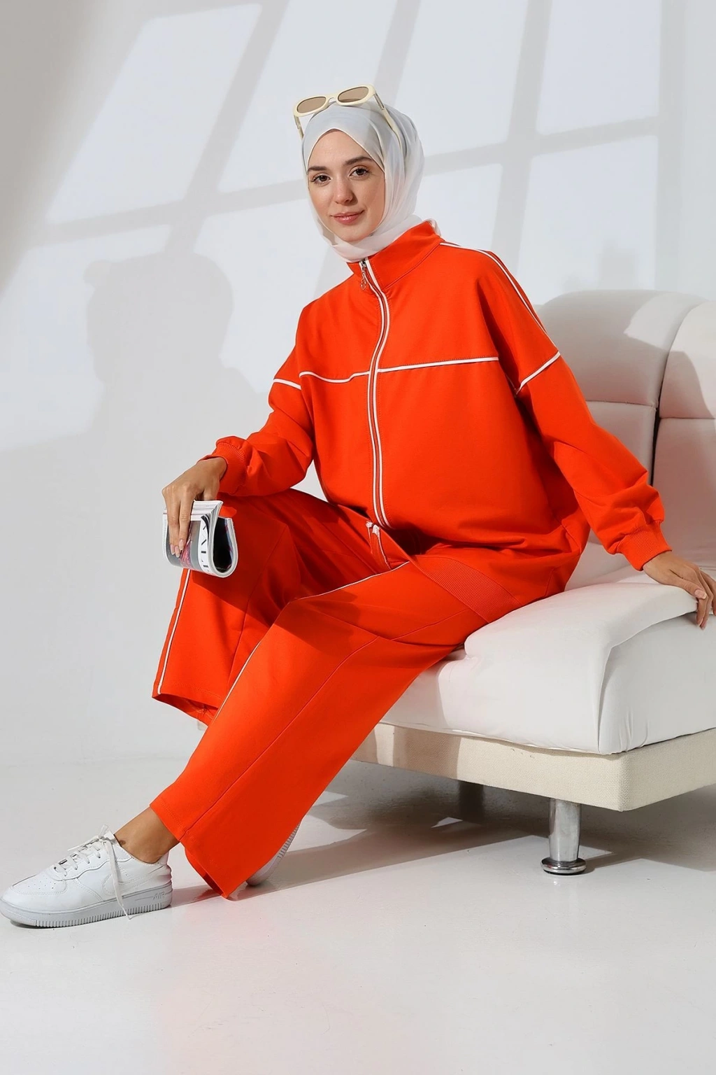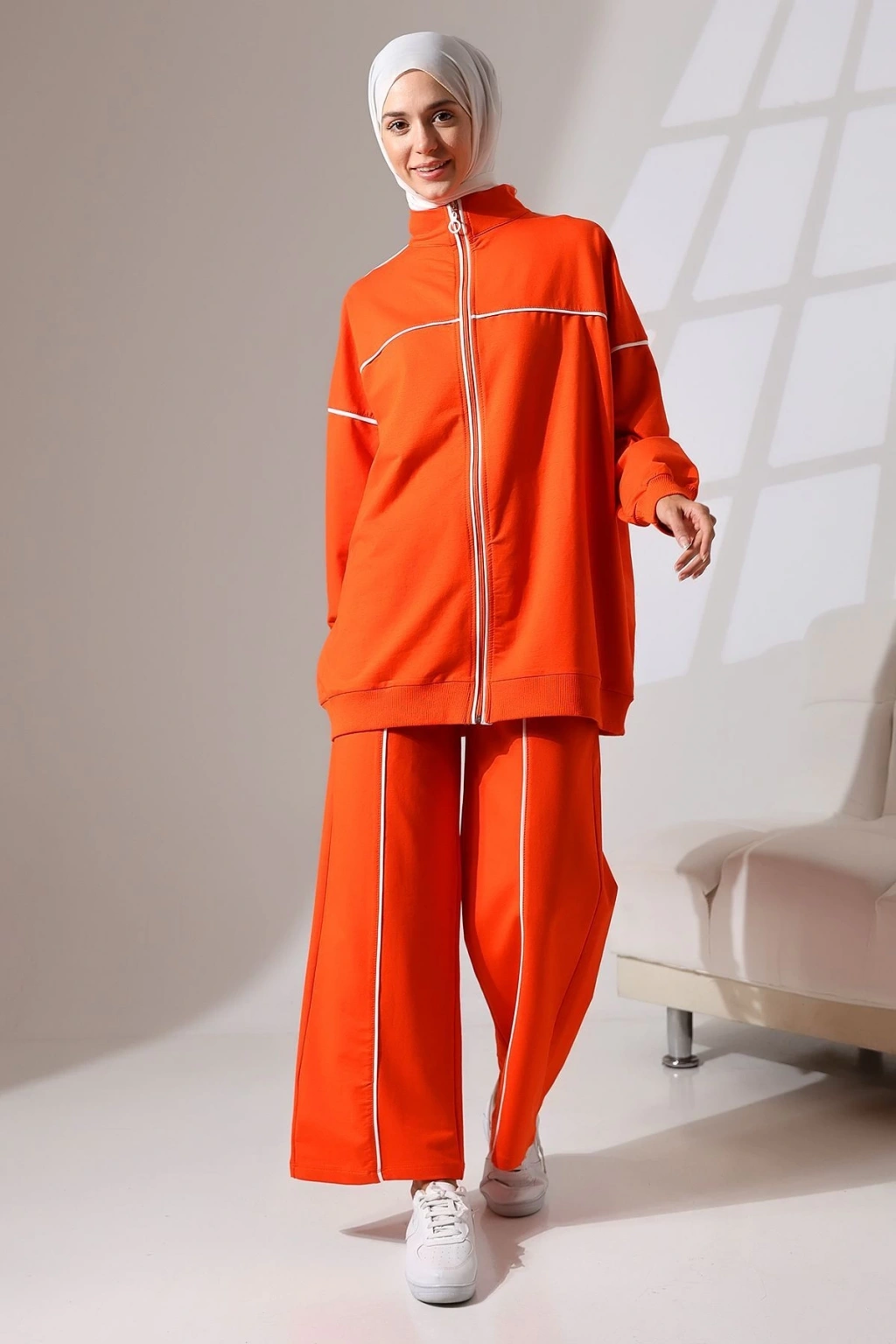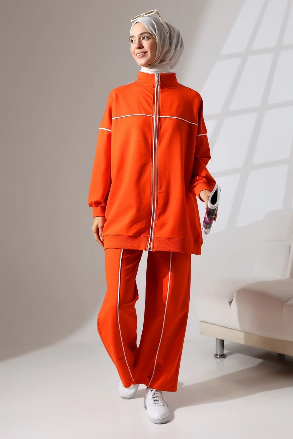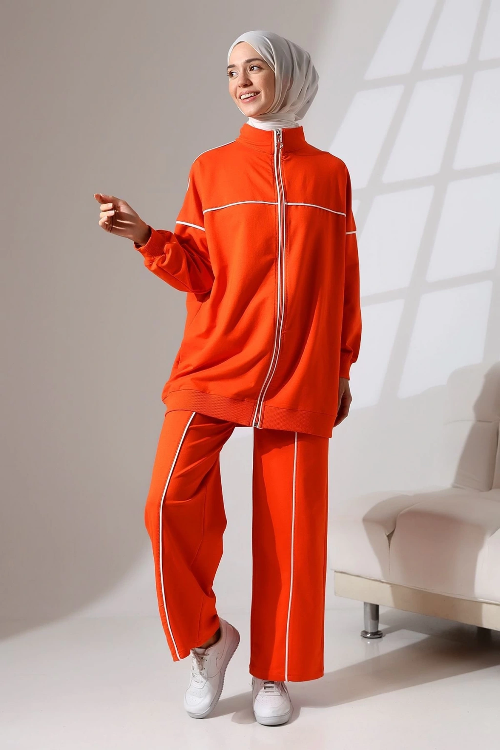 Kadın Turuncu Mevsimlik Penye Alt Üst Spor ve Rahat Tesettür Takım
